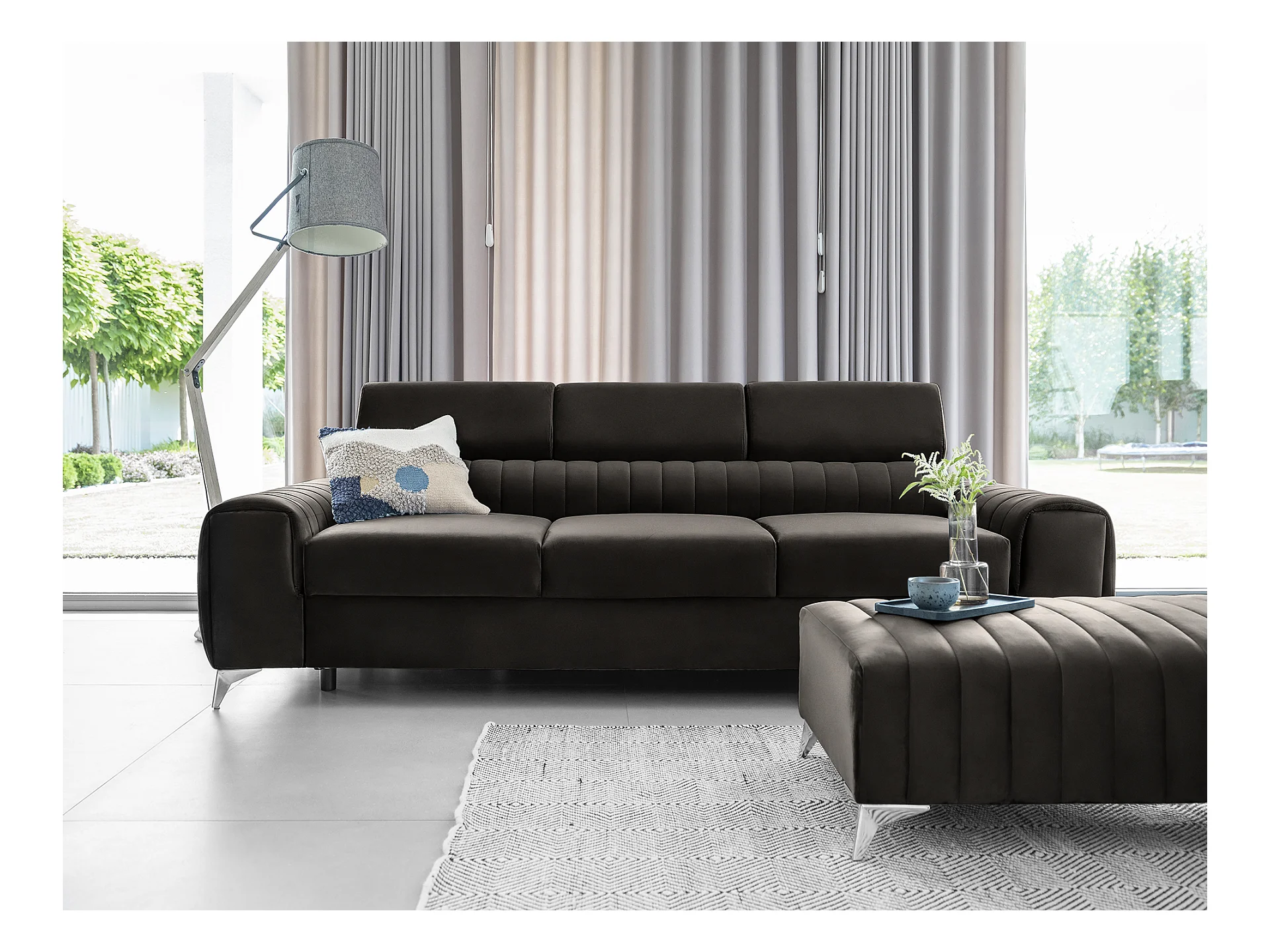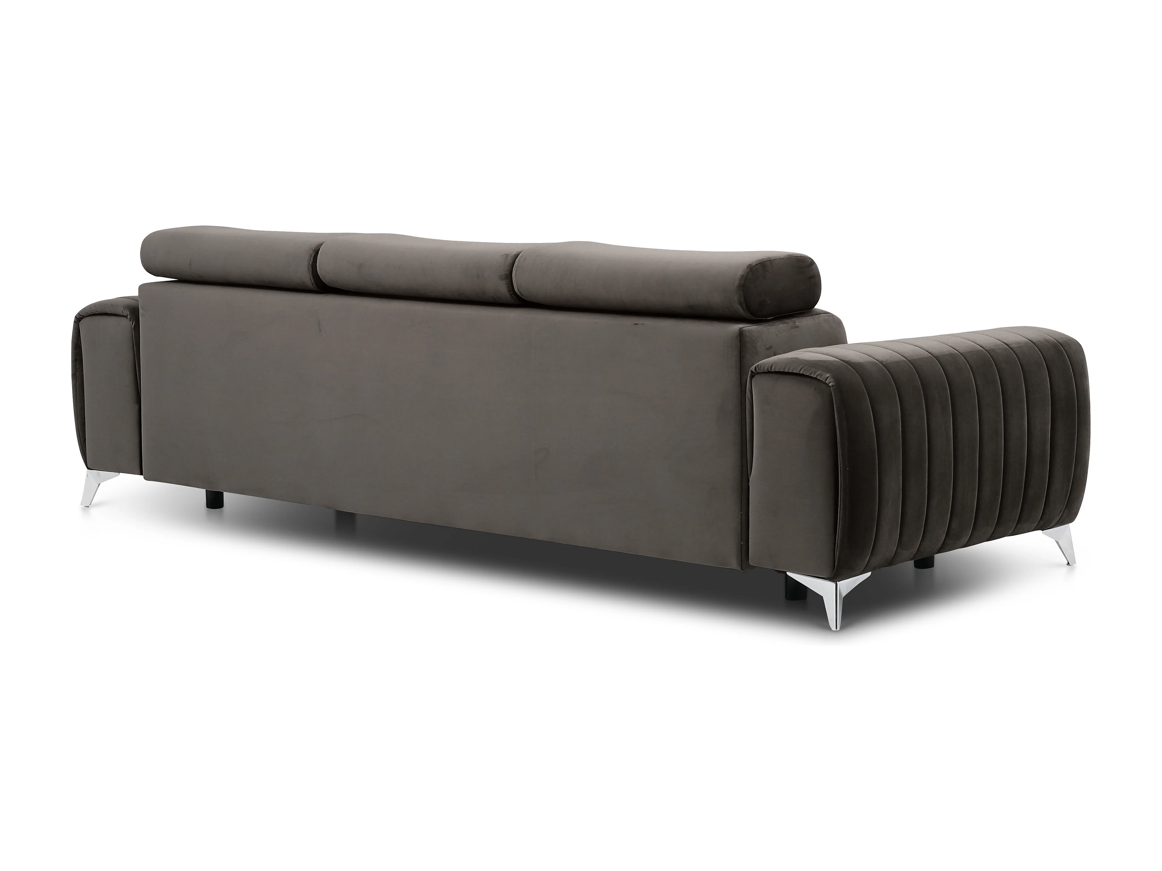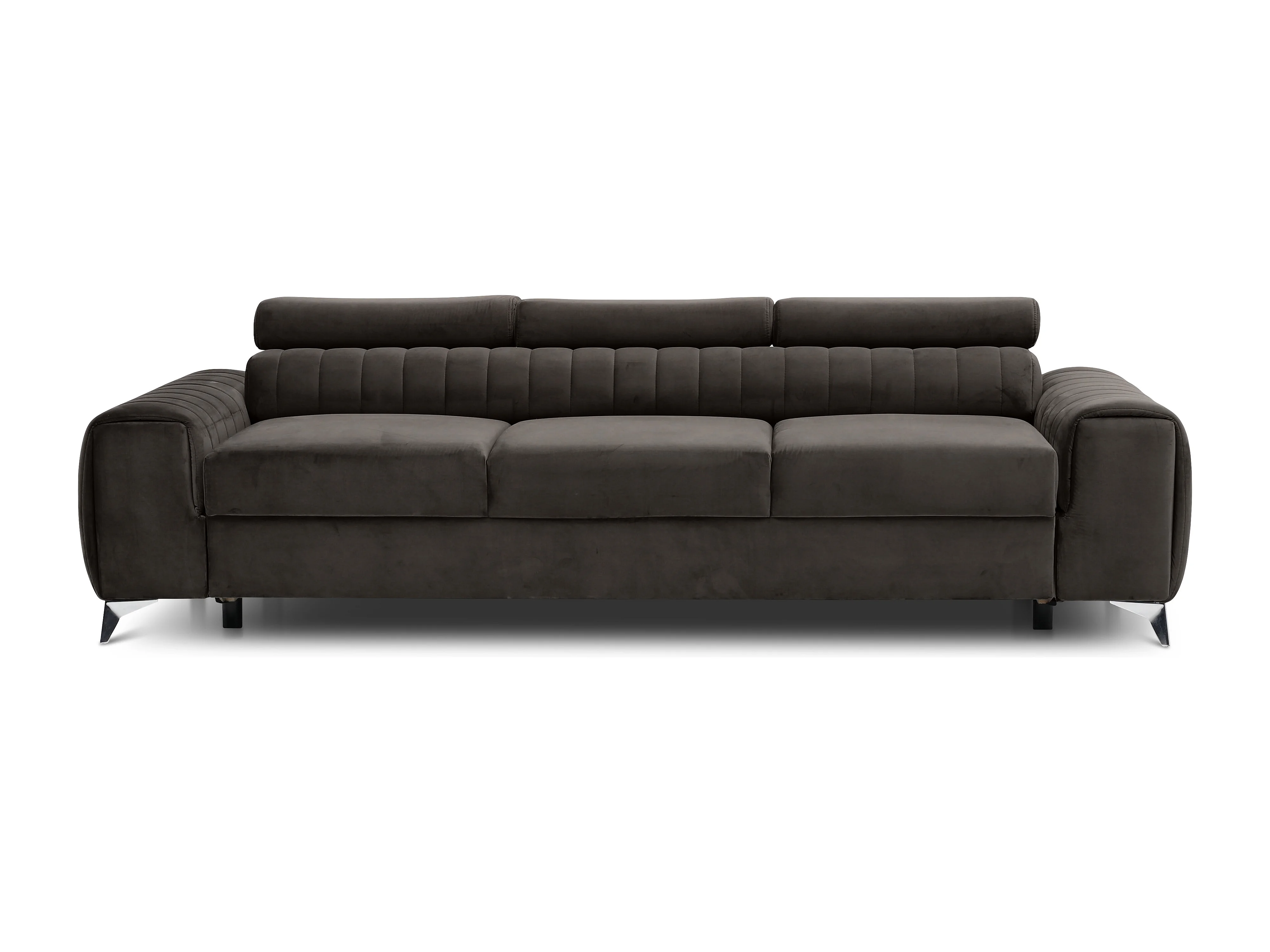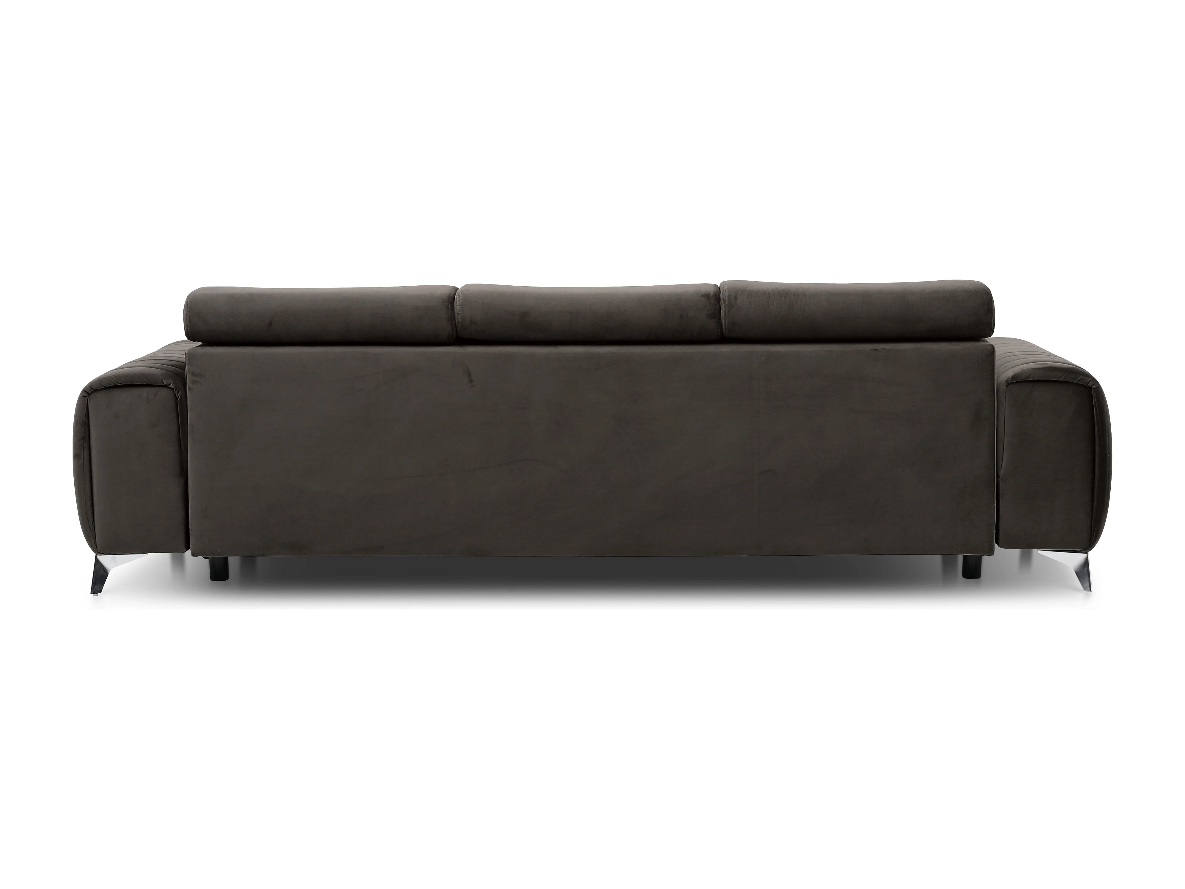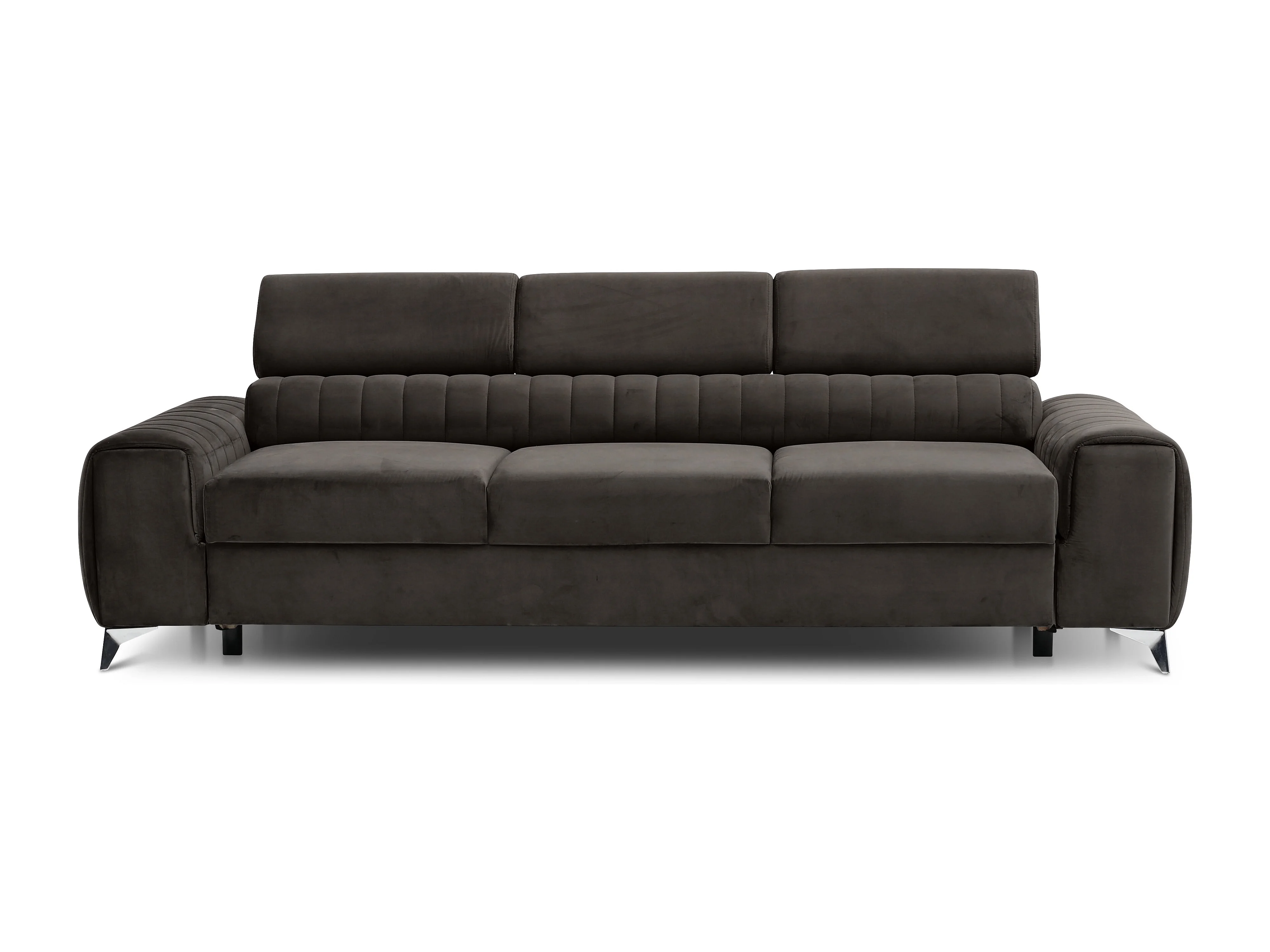 Canapé convertible velours LOZA - Appuis-tête réglables et pieds acier chromé-Marron foncé