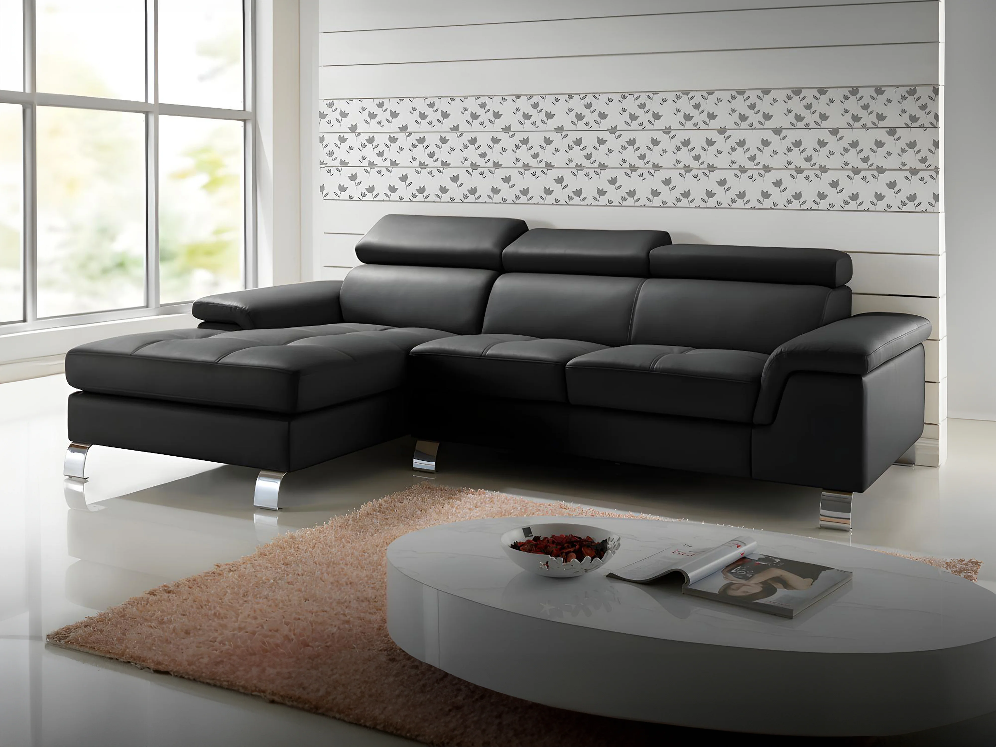 Canapé d'angle cuir MISHIMA - Noir - Angle gauche