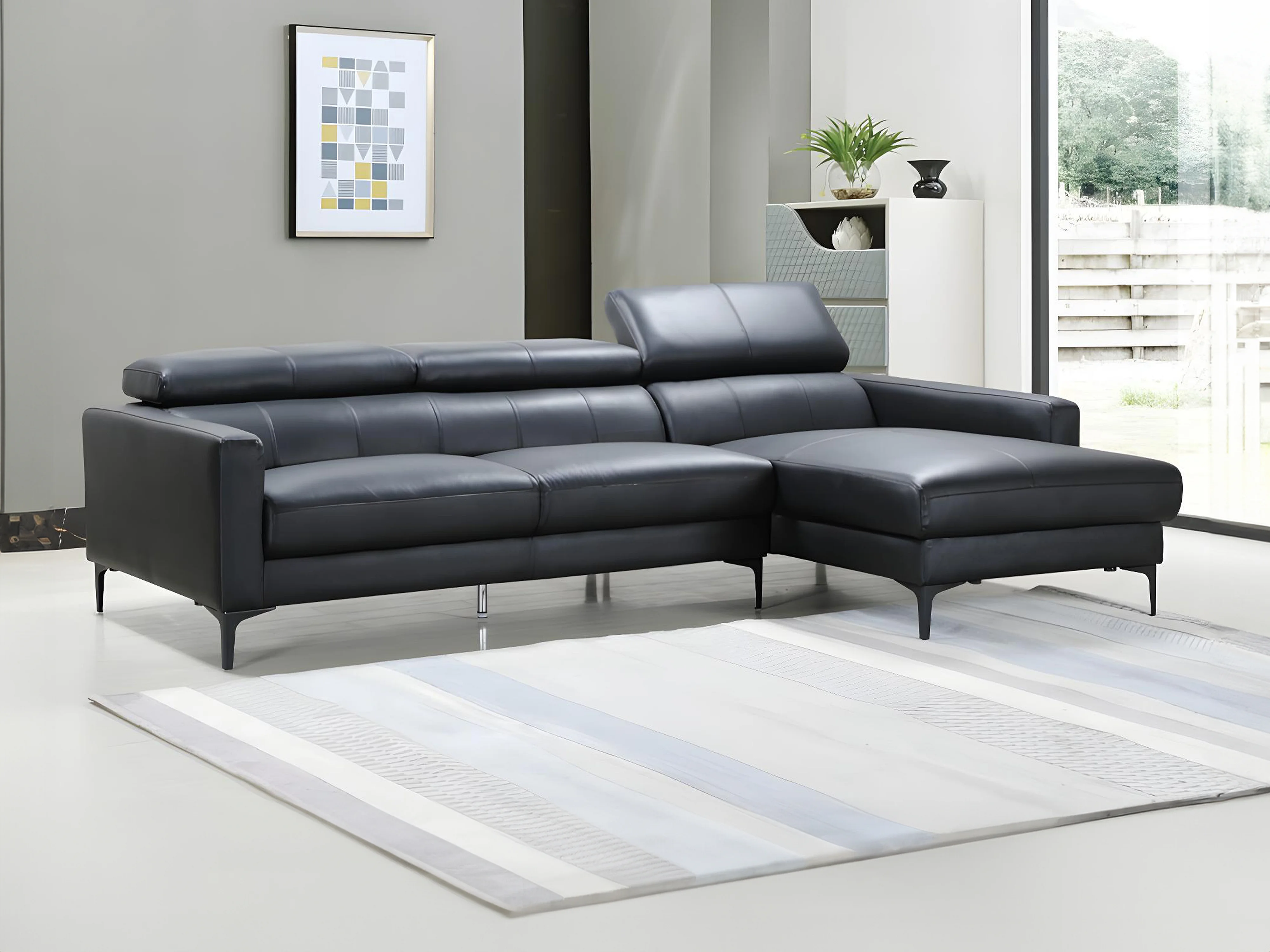 Canapé d'angle en cuir de buffle FLORENCE - Noir - Angle droit