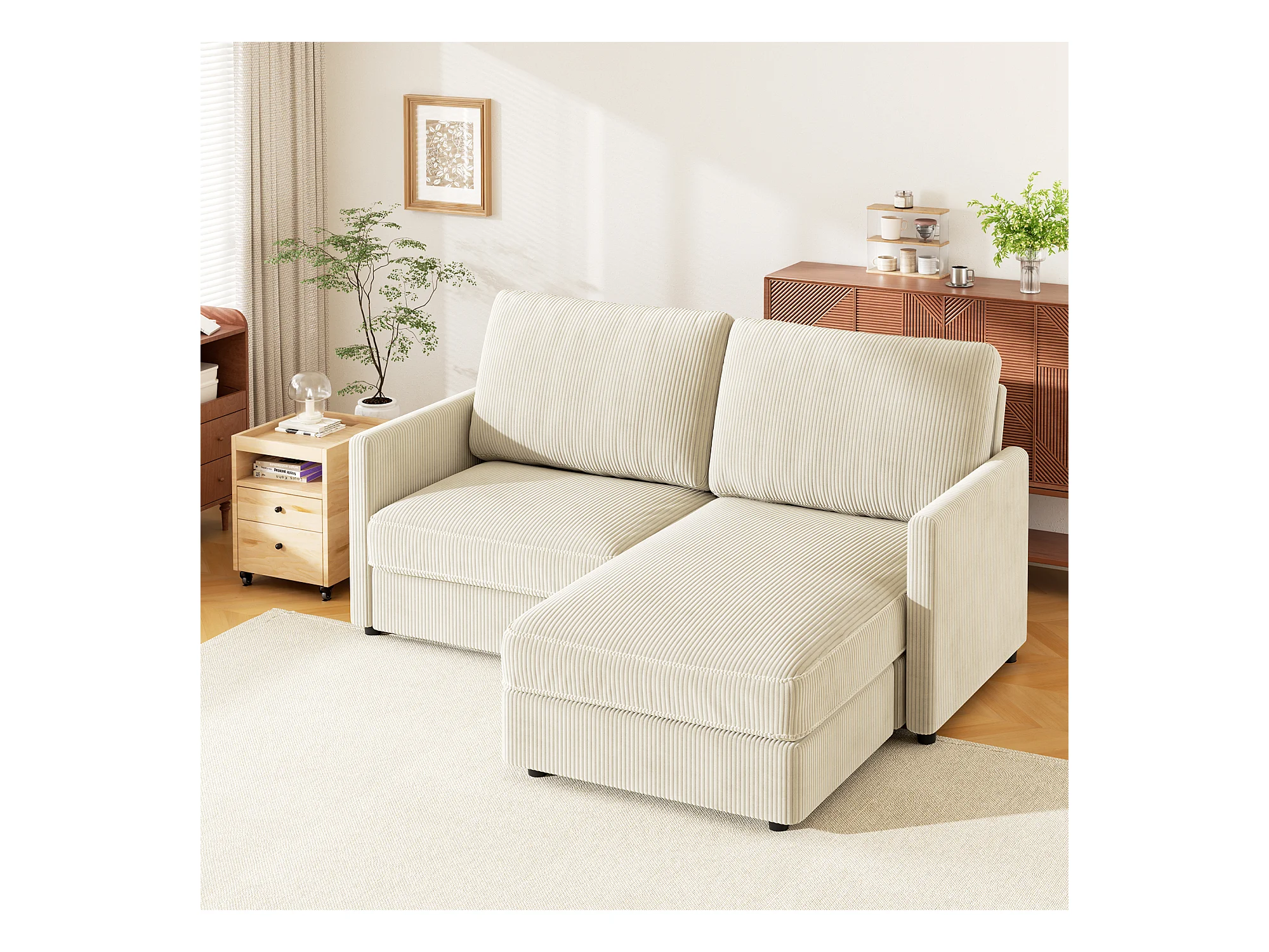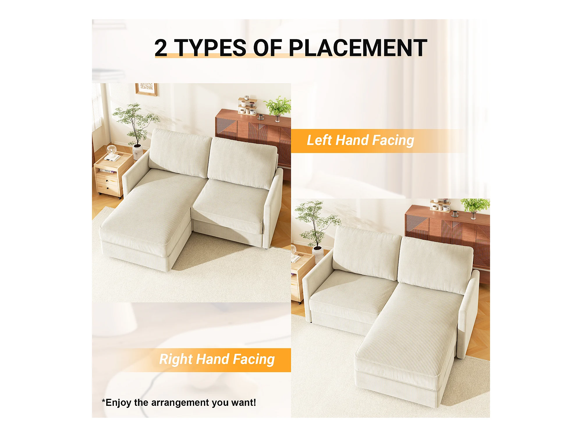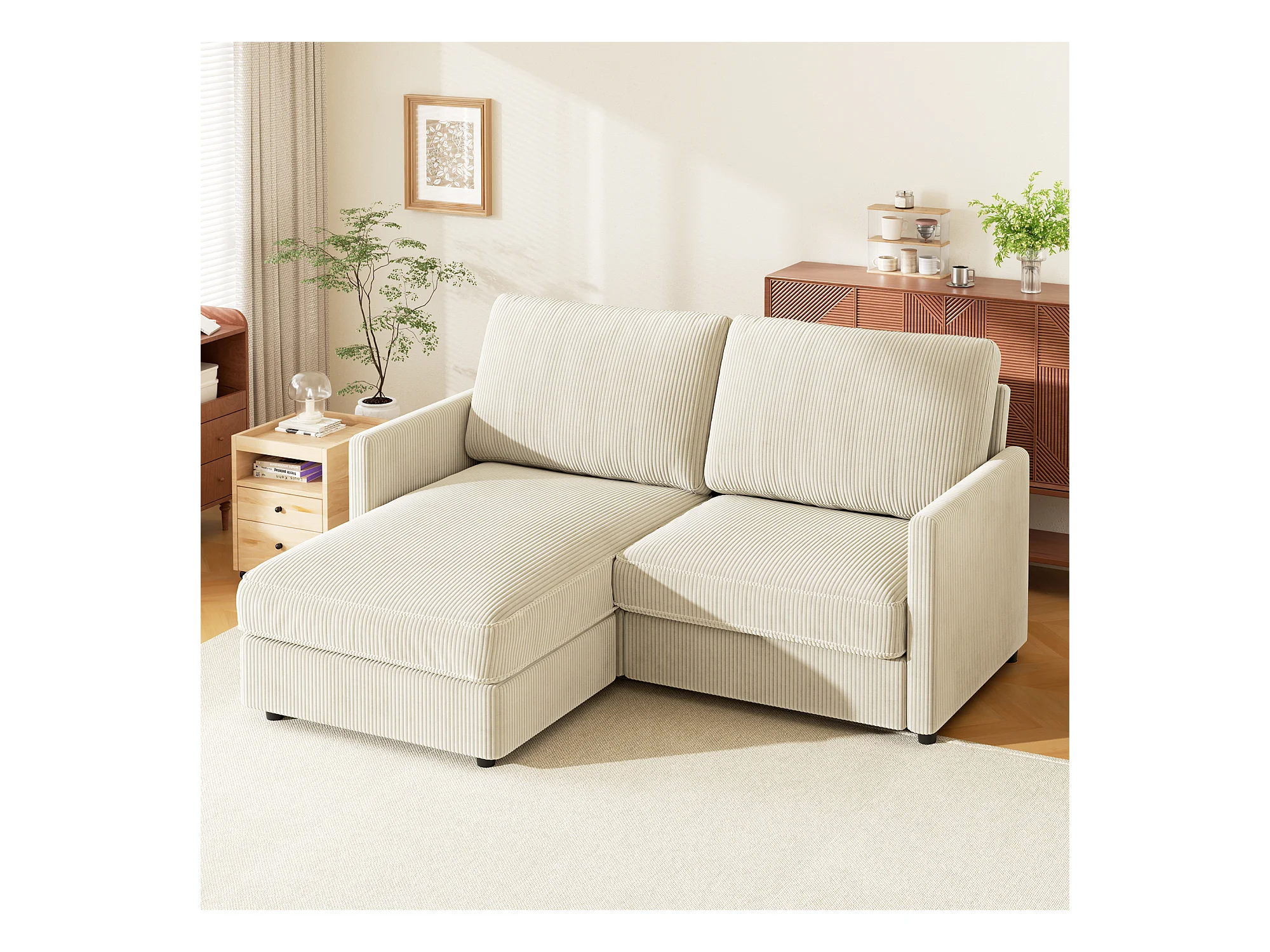 Canapé d'angle 2 places - angle droit / gauche réversible - 180x140x86cm - en Tissu Velours côtelé - Charge max 300kg - Beige