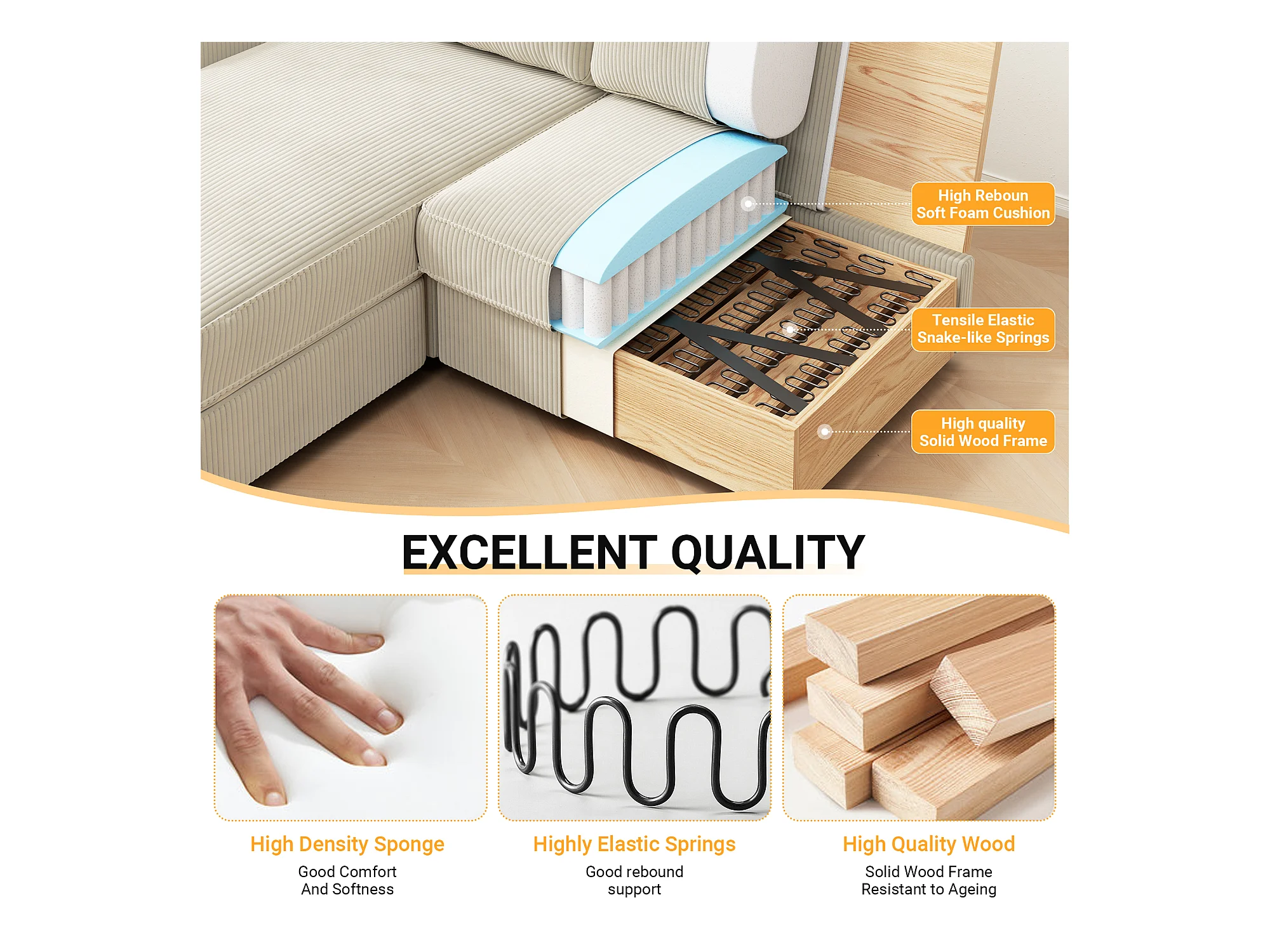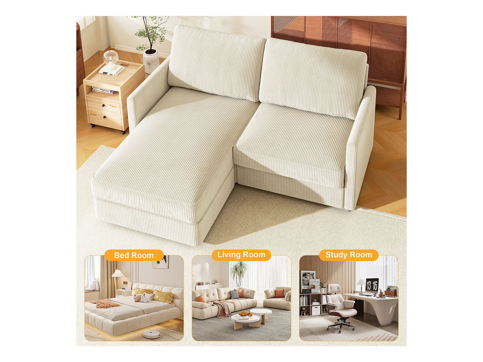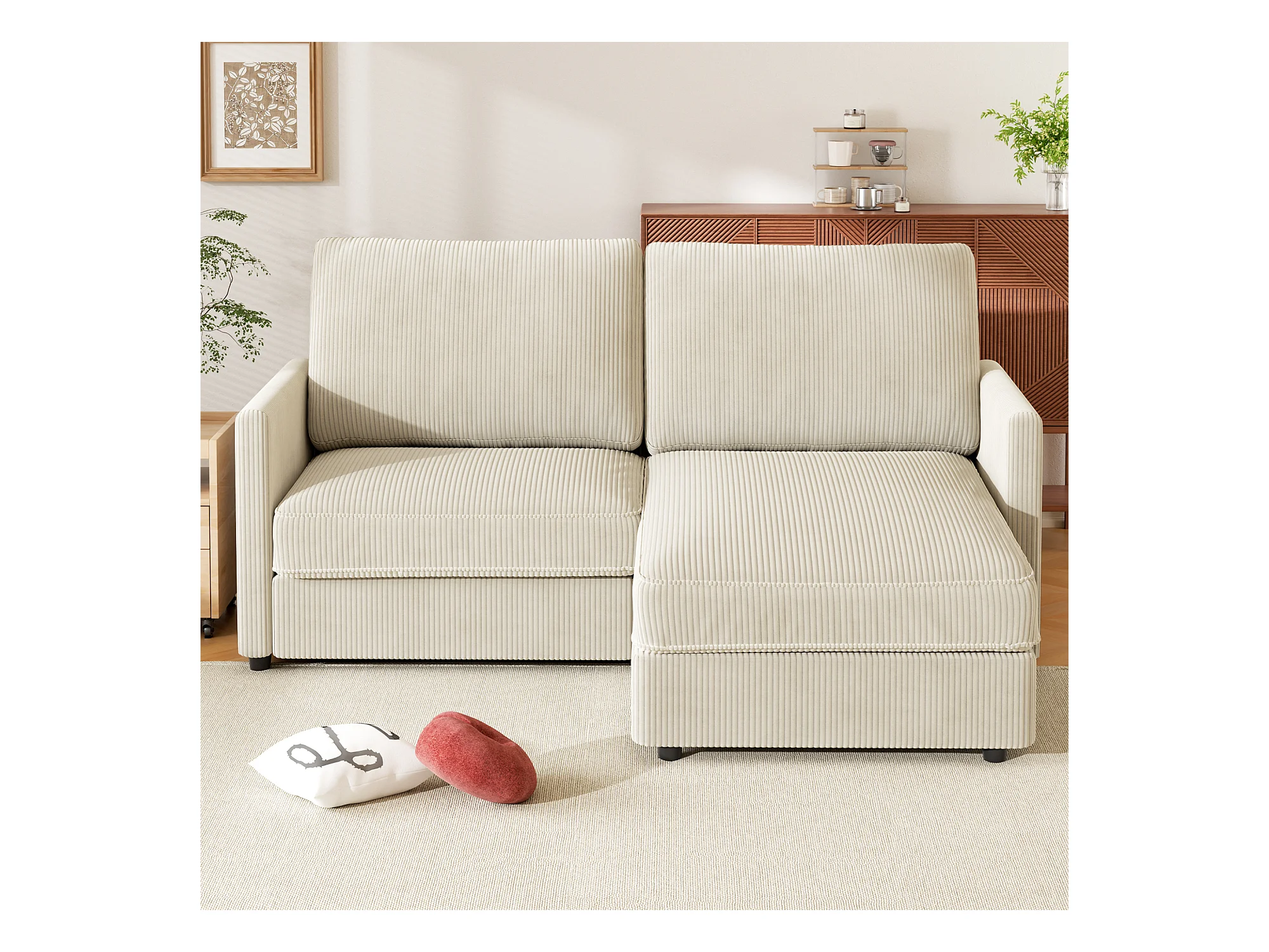 Canapé d'angle 2 places - angle droit / gauche réversible - 180x140x86cm - en Tissu Velours côtelé - Charge max 300kg - Beige