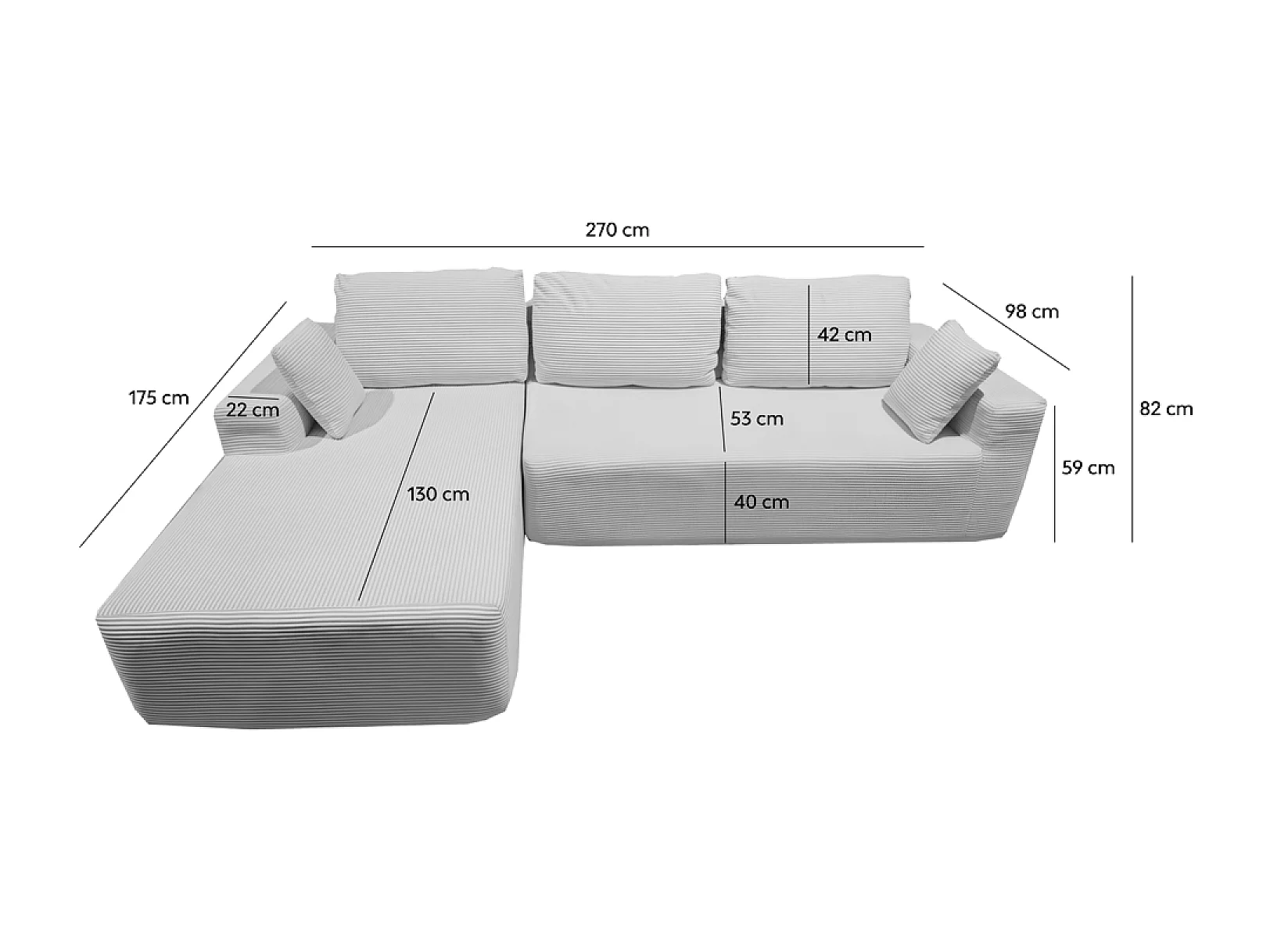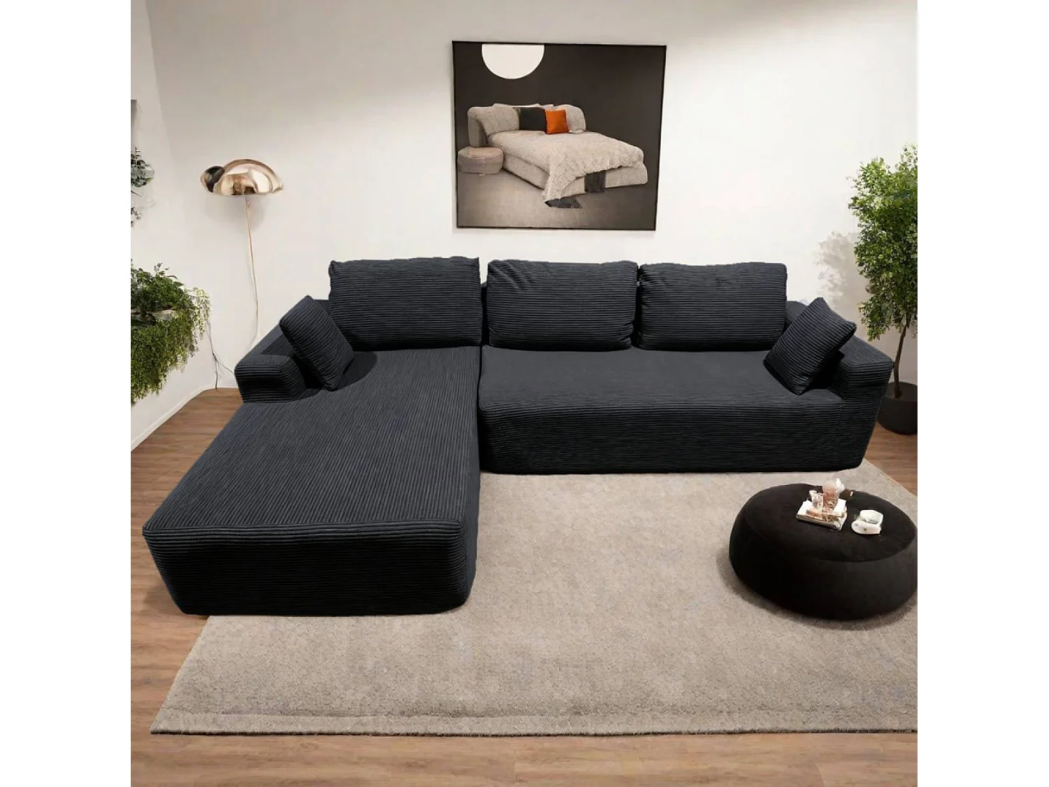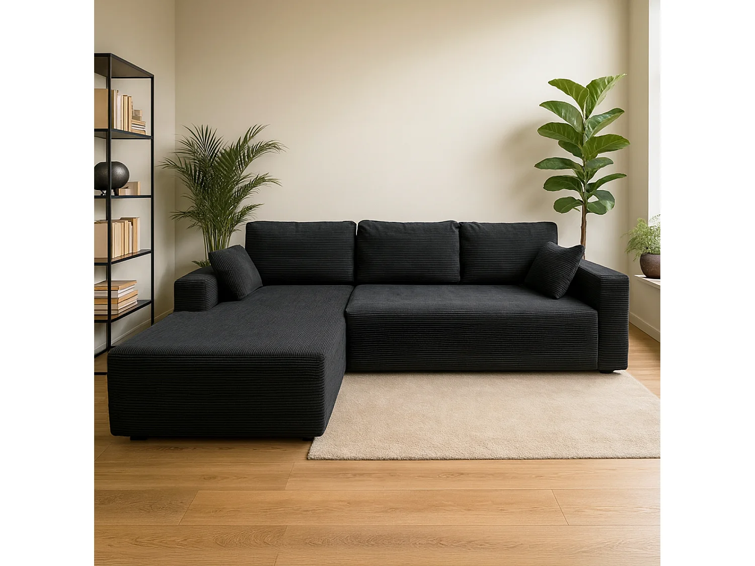 Canapé d'angle 3 places en velours côtelé gris anthracite HOVE
