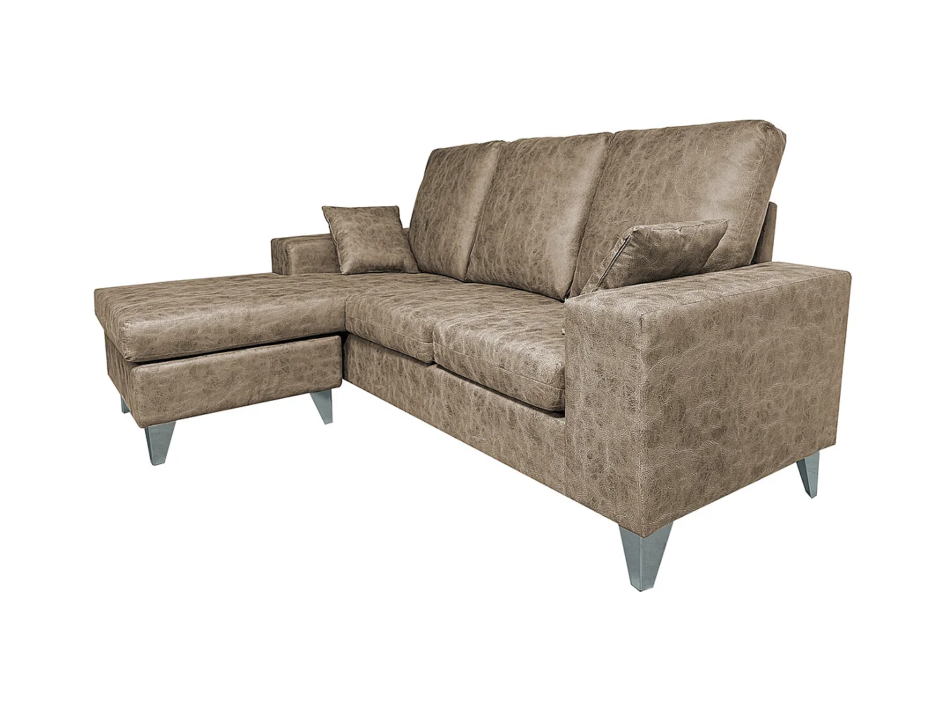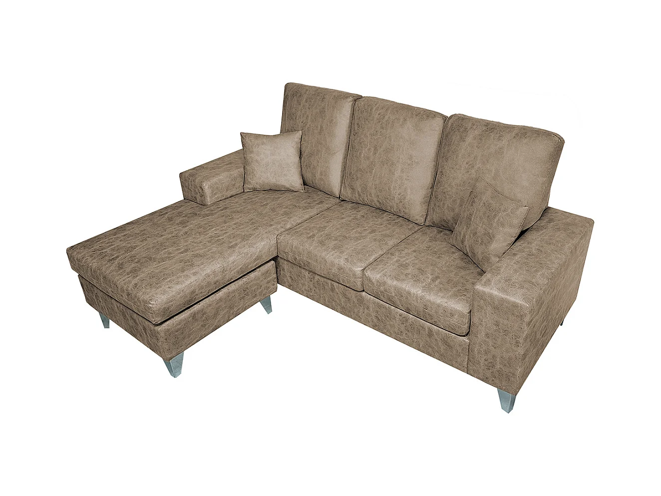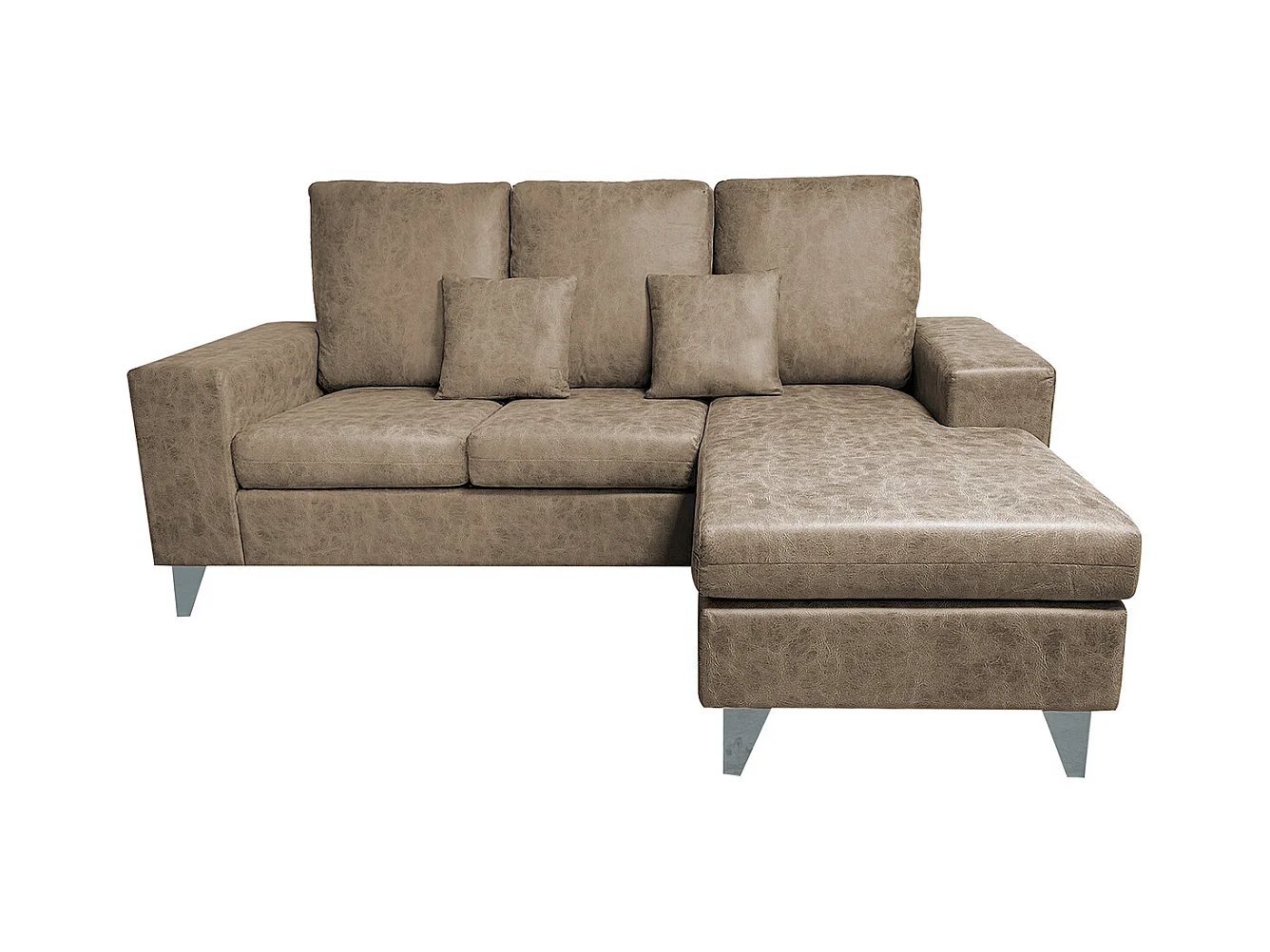 Canapé d'angle 3 places réversible en simili-cuir coloris marron - Longueur 200 x profondeur 144 x hauteur 99 cm