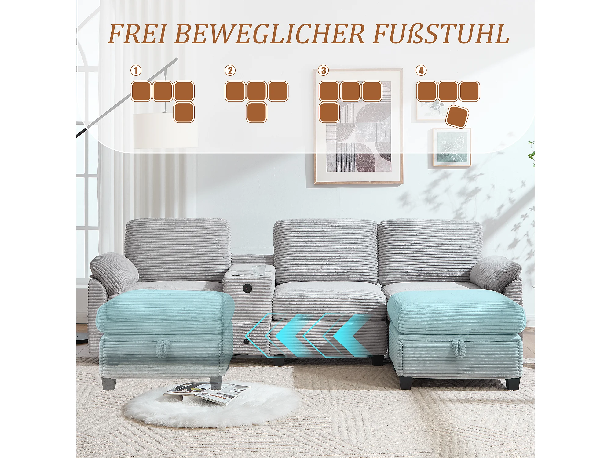Canapé d'Angle 4 Places - Canapé modulable - Console Centrale Double Port USB (USB + Type-C) - Repose-Pieds Rangement - Pour Salon, Bureau
