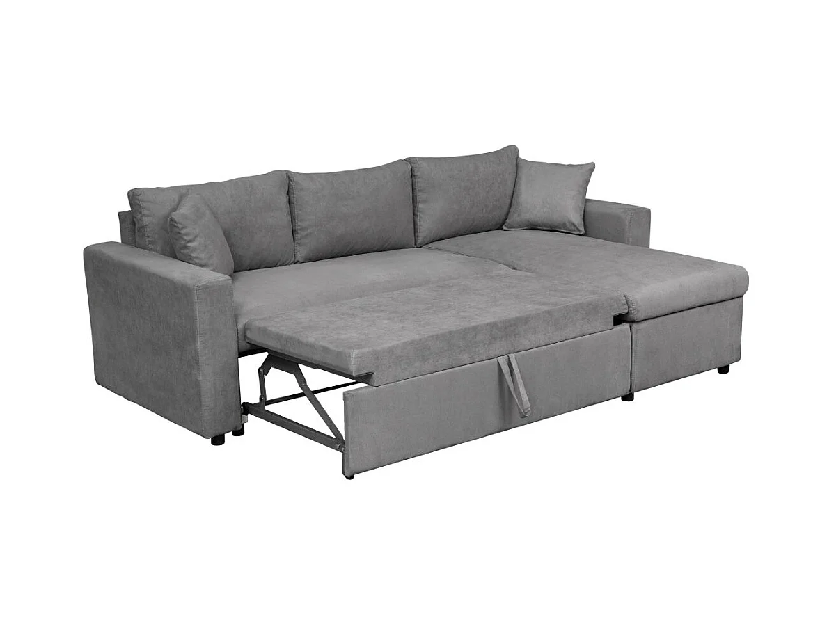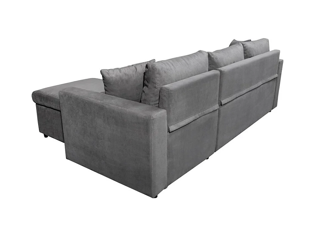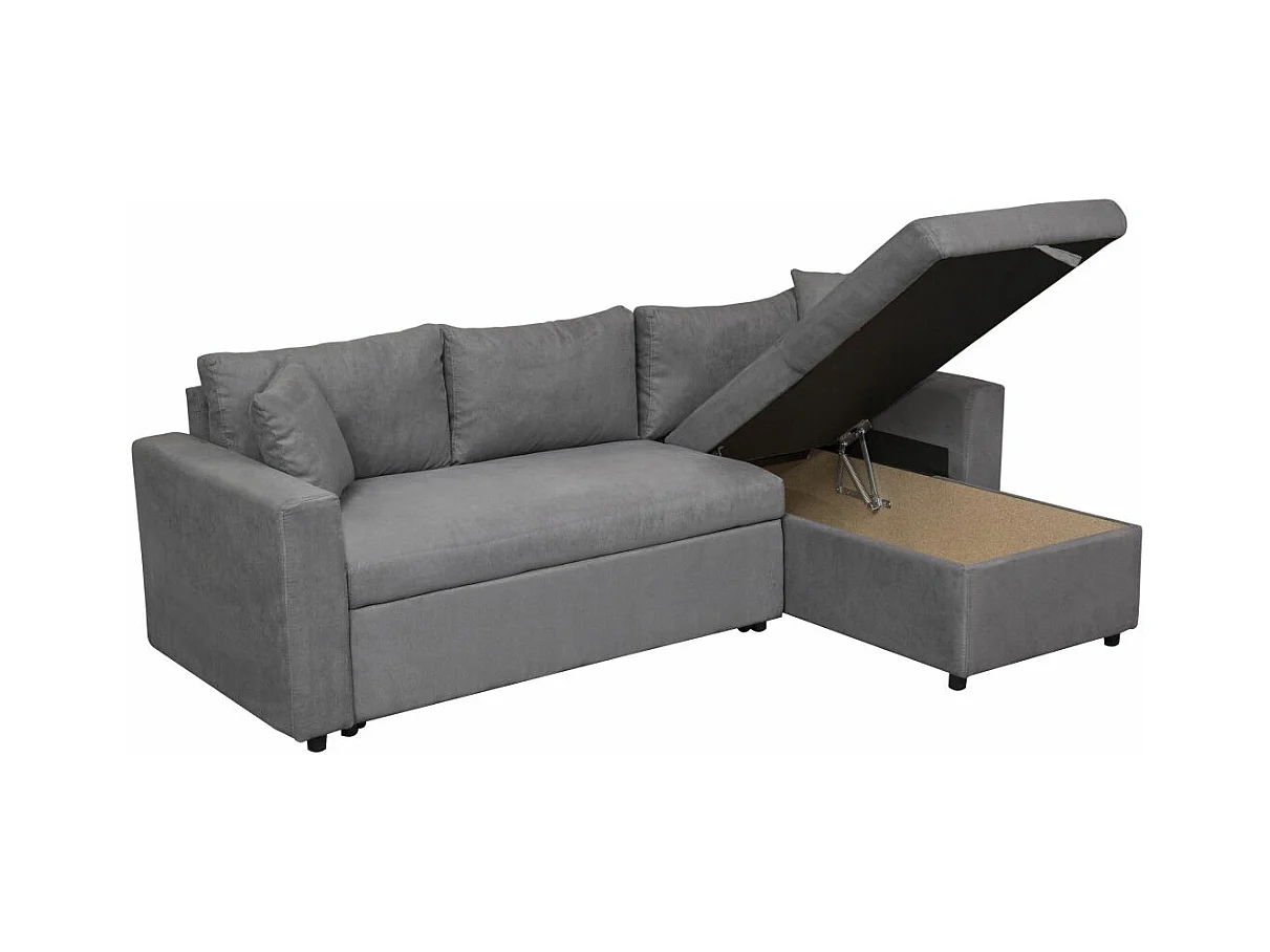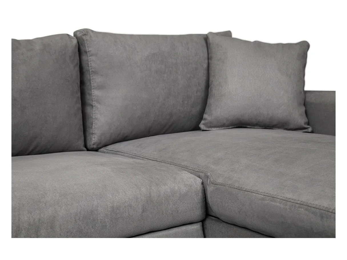 Canapé d'angle 4 places Convertible et Réversible Maria avec Coffre en microfibre - Gris - L227 x P146 x H81cm - Loungitude