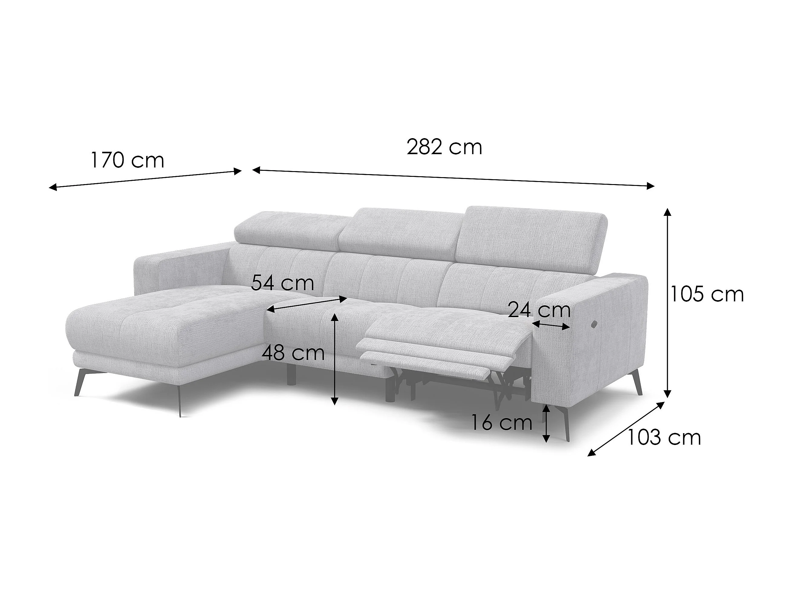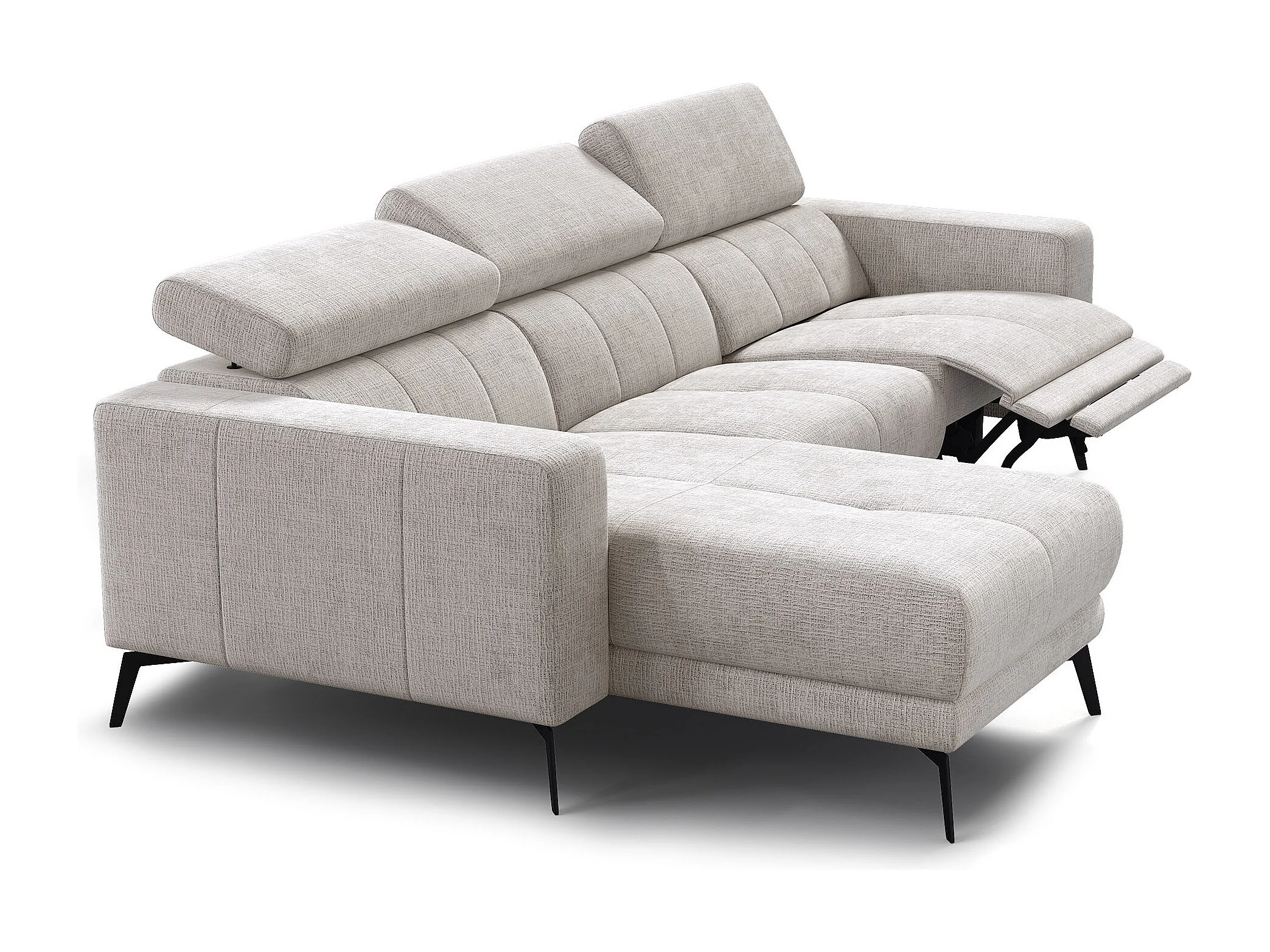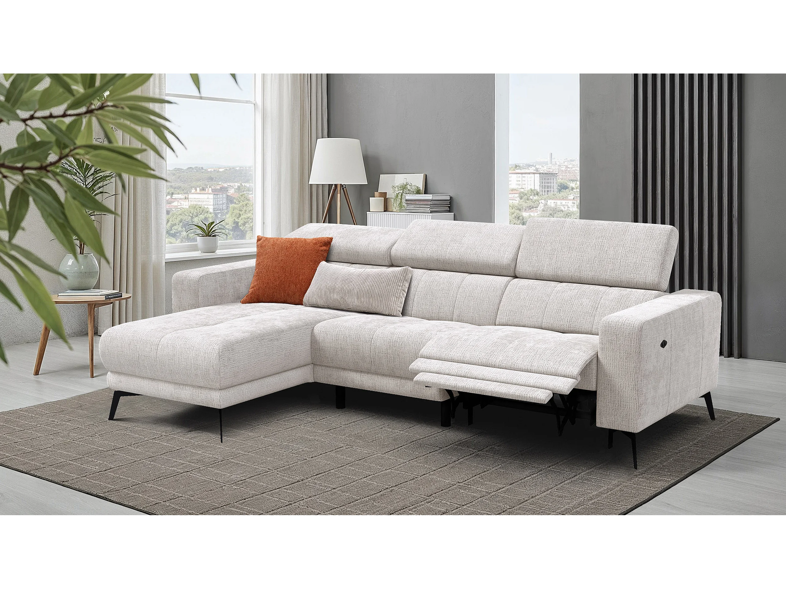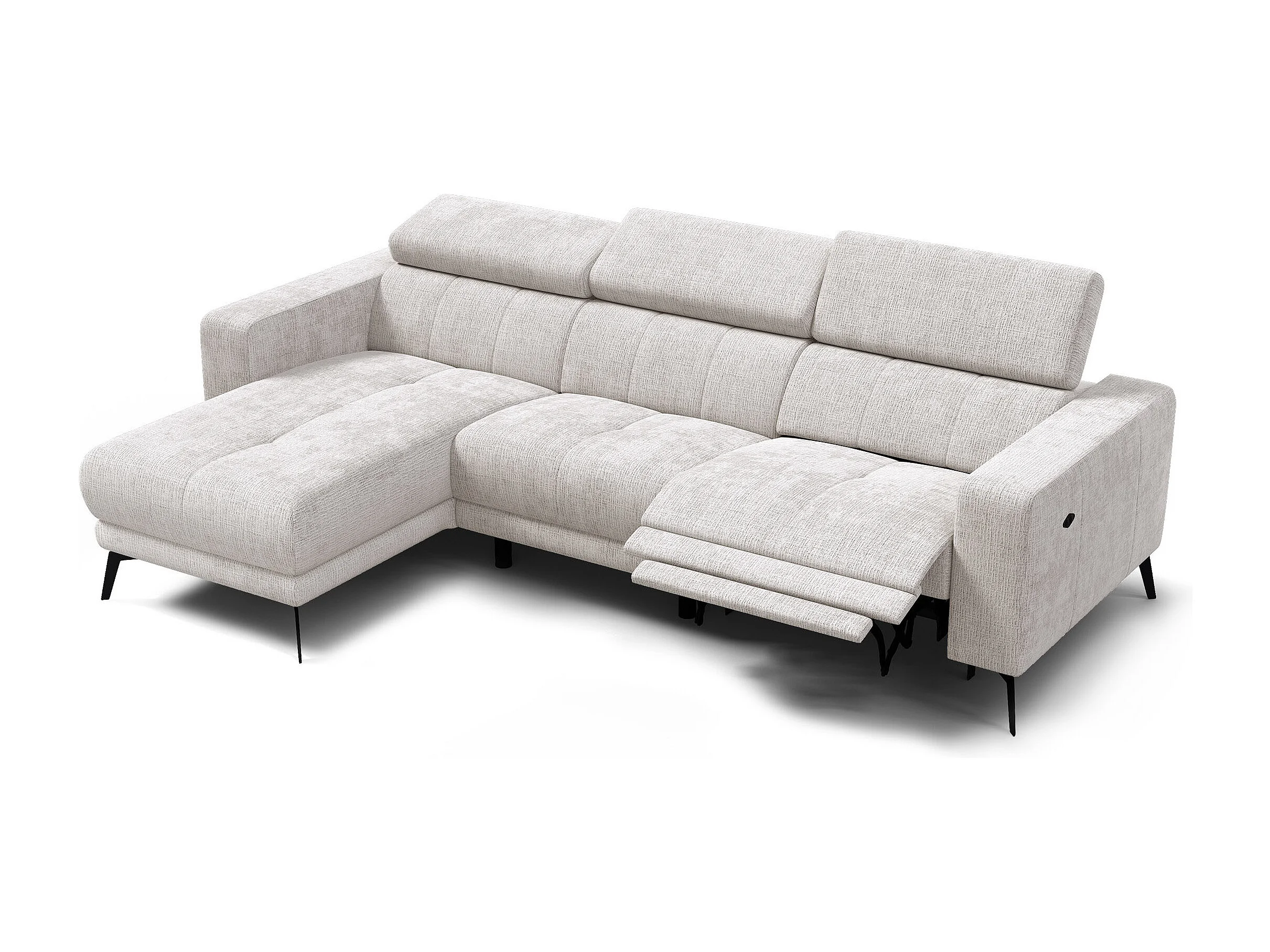 Canapé d'angle 4 places MORELLO avec 1 x Relax Zero Gravity, tissu crème