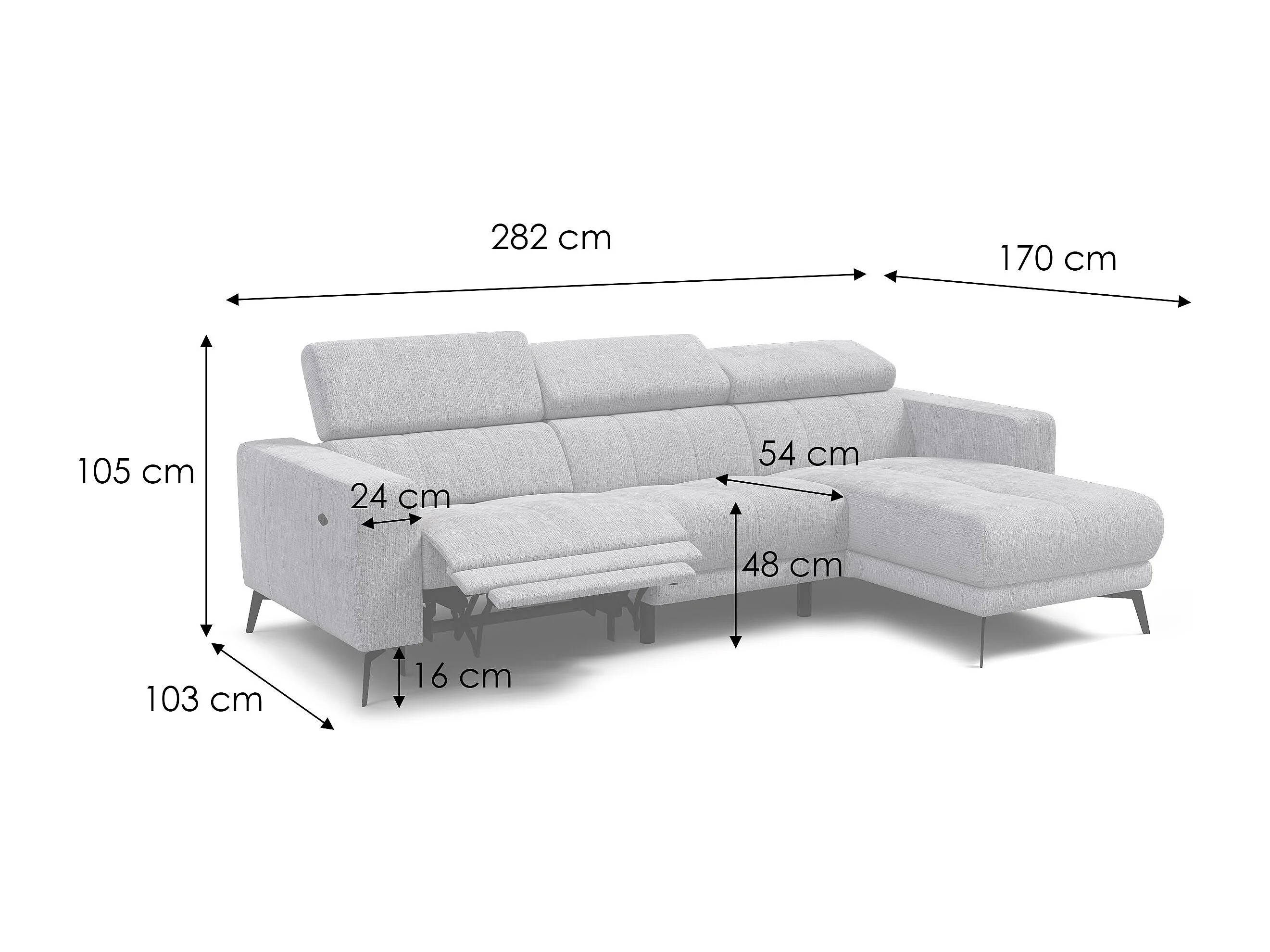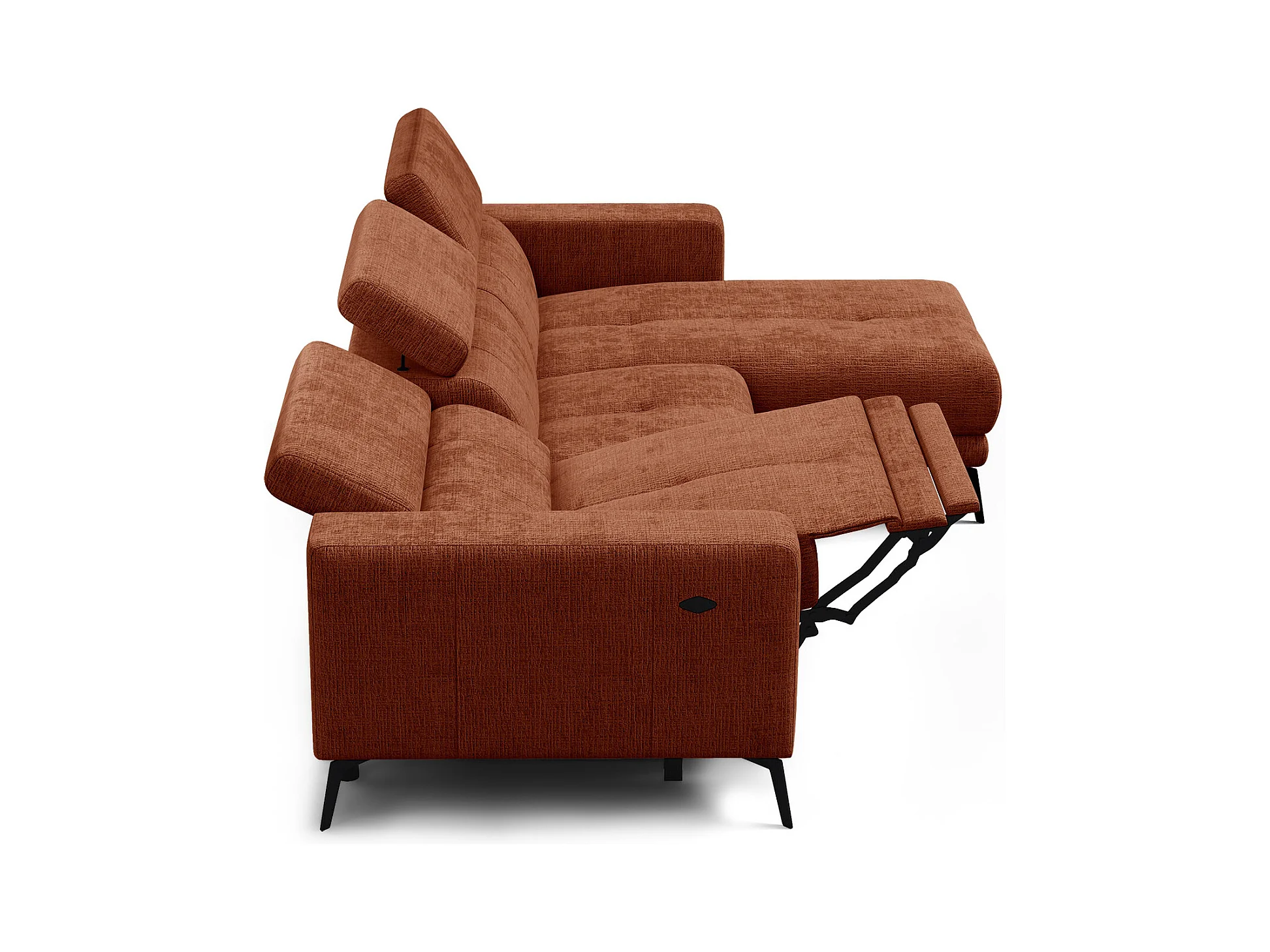 Canapé d'angle 4 places MORELLO avec 1 x Relax Zero Gravity, tissu orange foncé