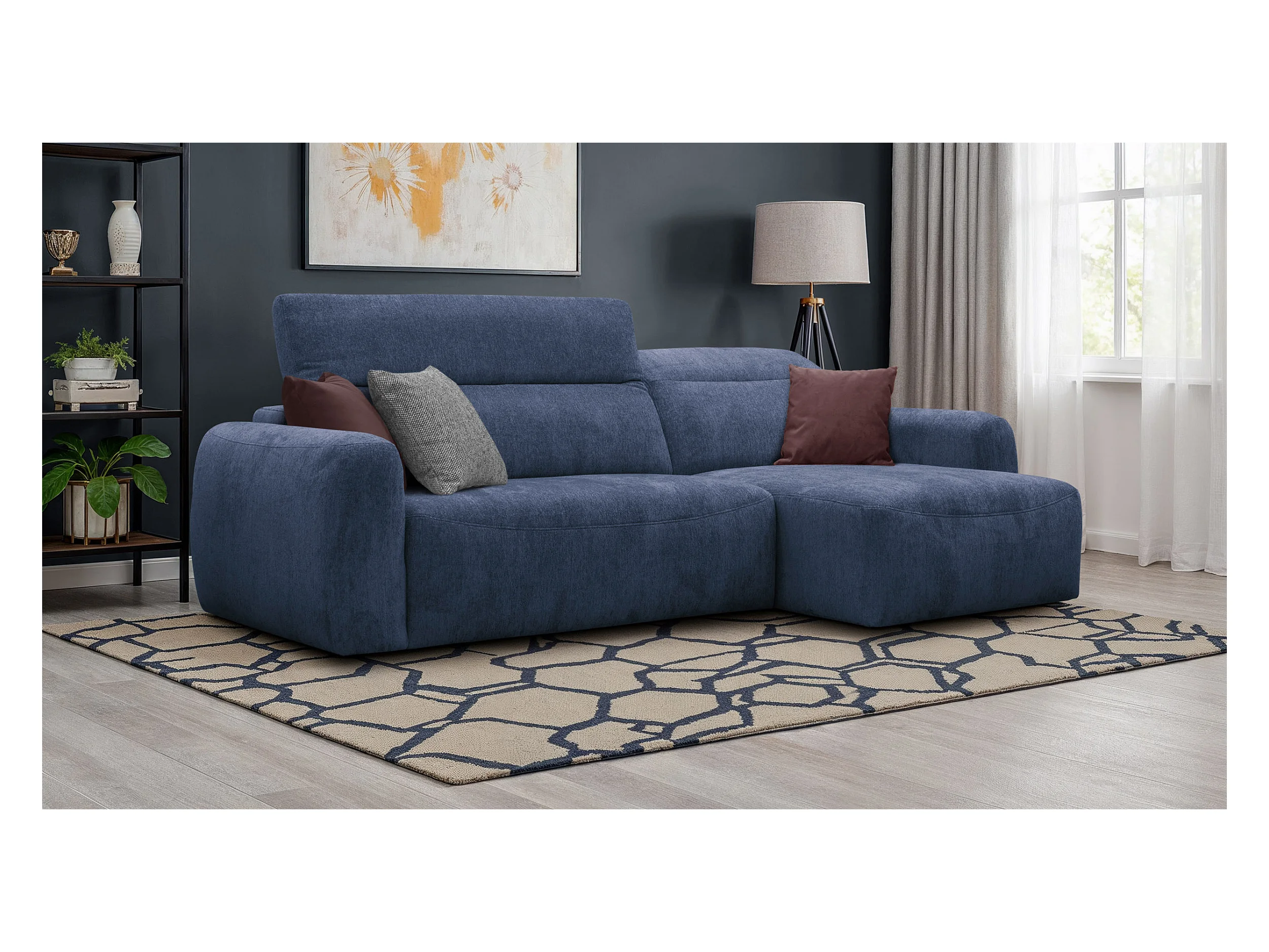 Canapé d'angle 4 places NERO, tissu bleu marine