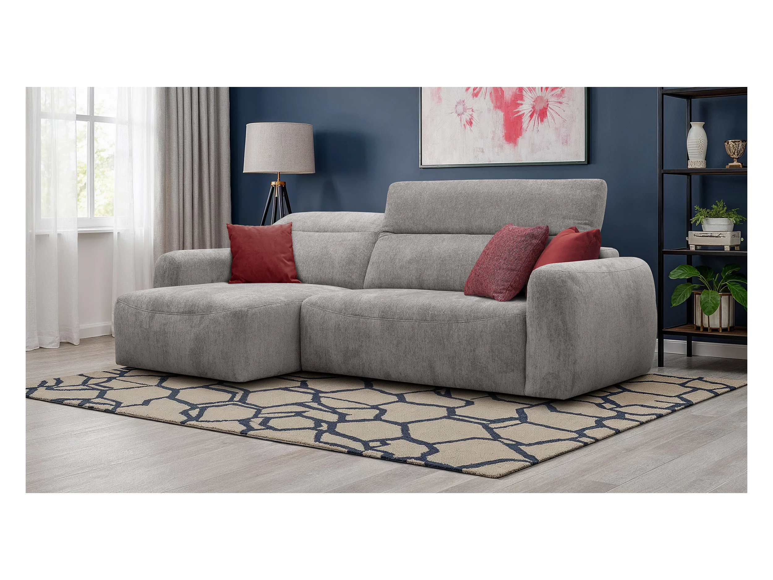 Canapé d'angle 4 places NERO, tissu gris