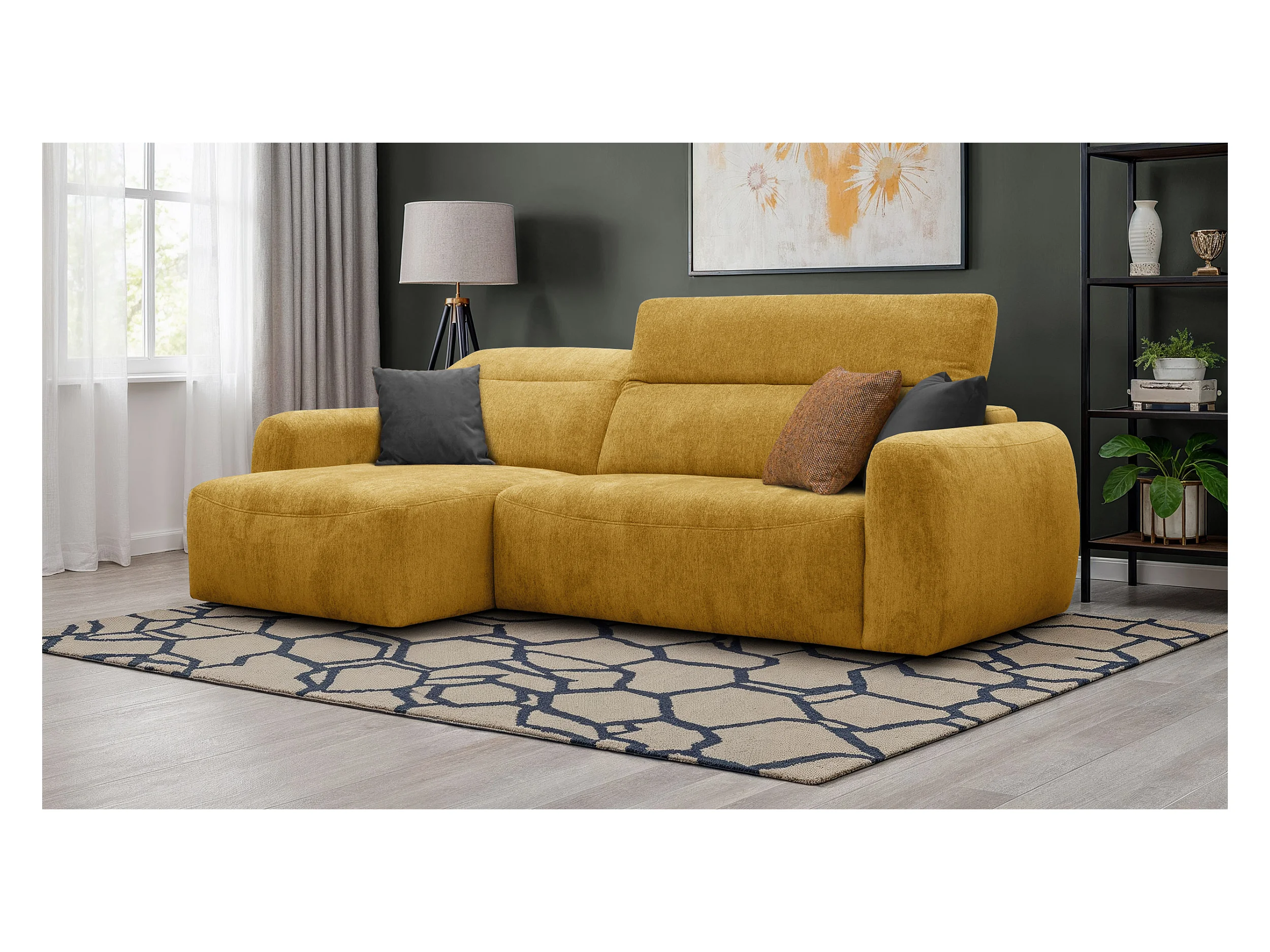 Canapé d'angle 4 places NERO, tissu jaune
