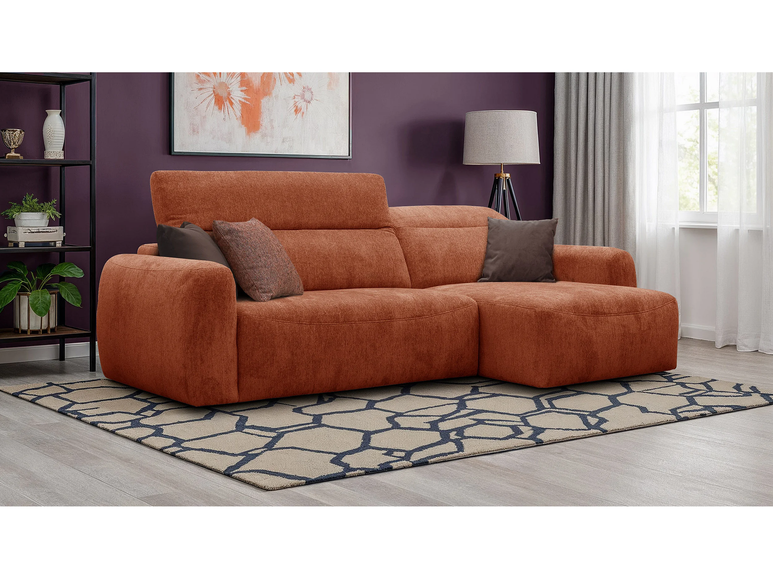 Canapé d'angle 4 places NERO, tissu orange