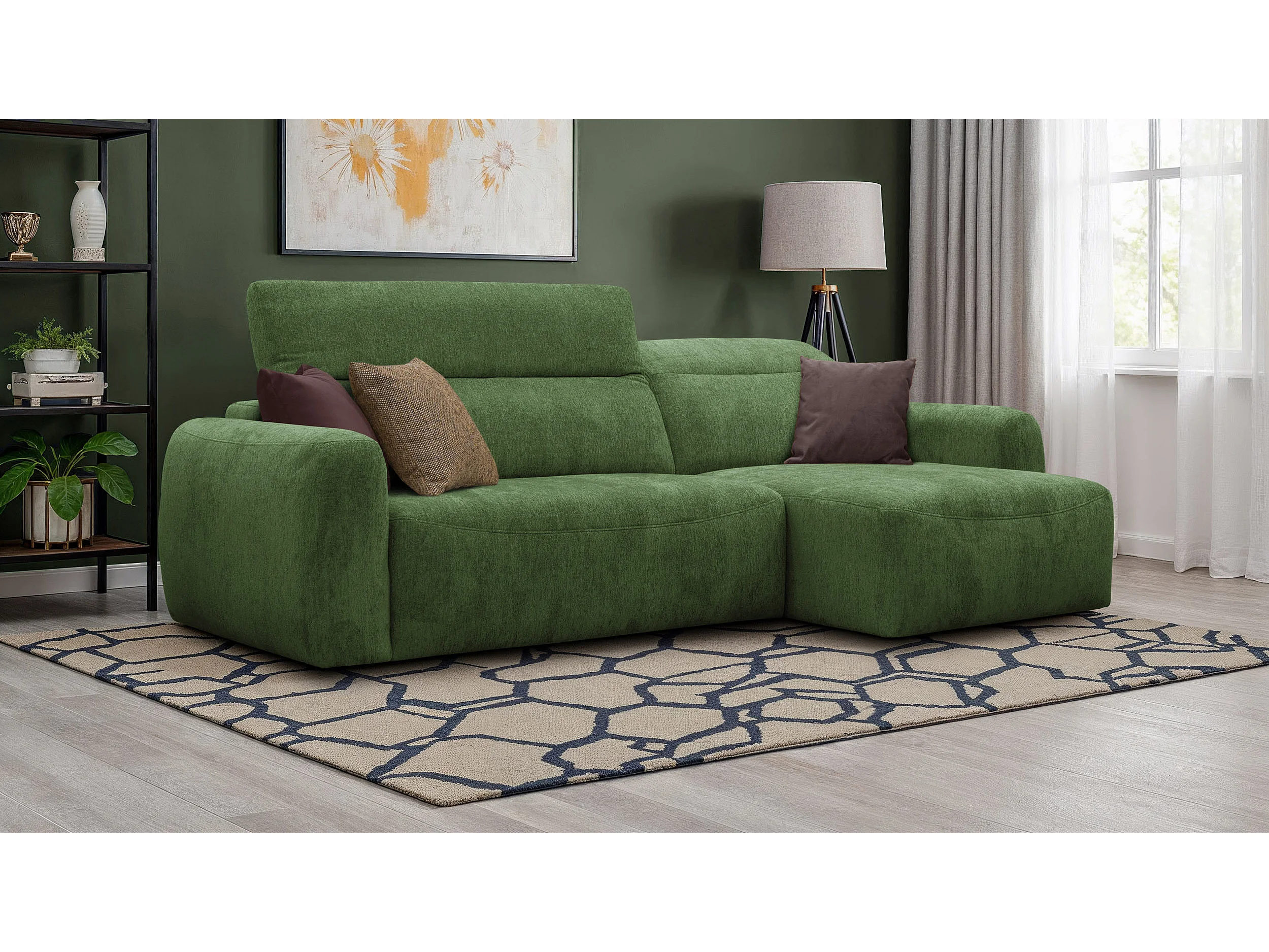 Canapé d'angle 4 places NERO, tissu vert