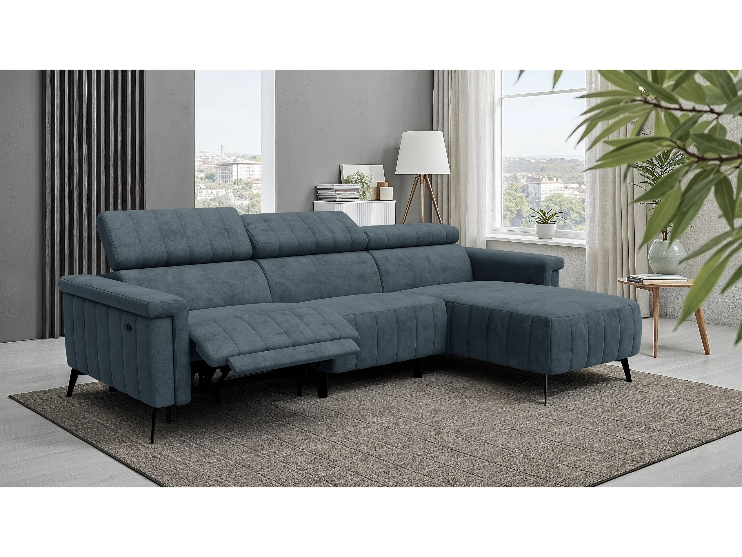 Canapé d'angle 4 places NORDEL, tissu bleu gris