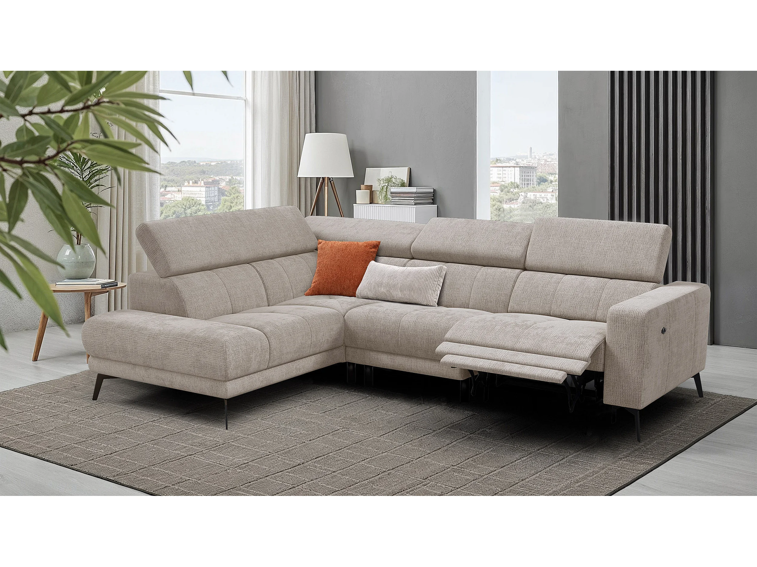 Canapé d'angle 5 places MORELLO avec 1 x Relax Zero Gravity, tissu beige