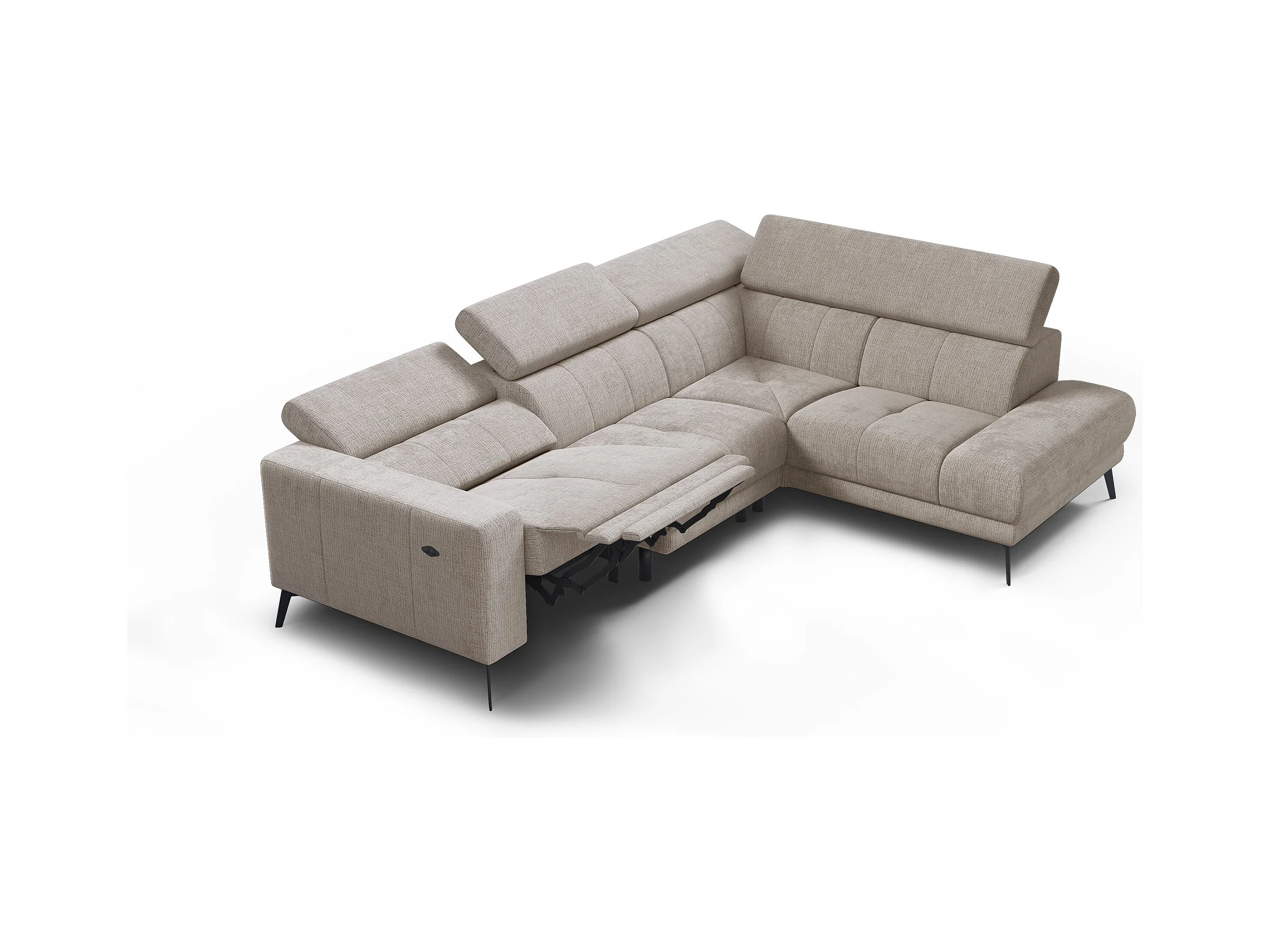 Canapé d'angle 5 places MORELLO avec 1 x Relax Zero Gravity, tissu beige
