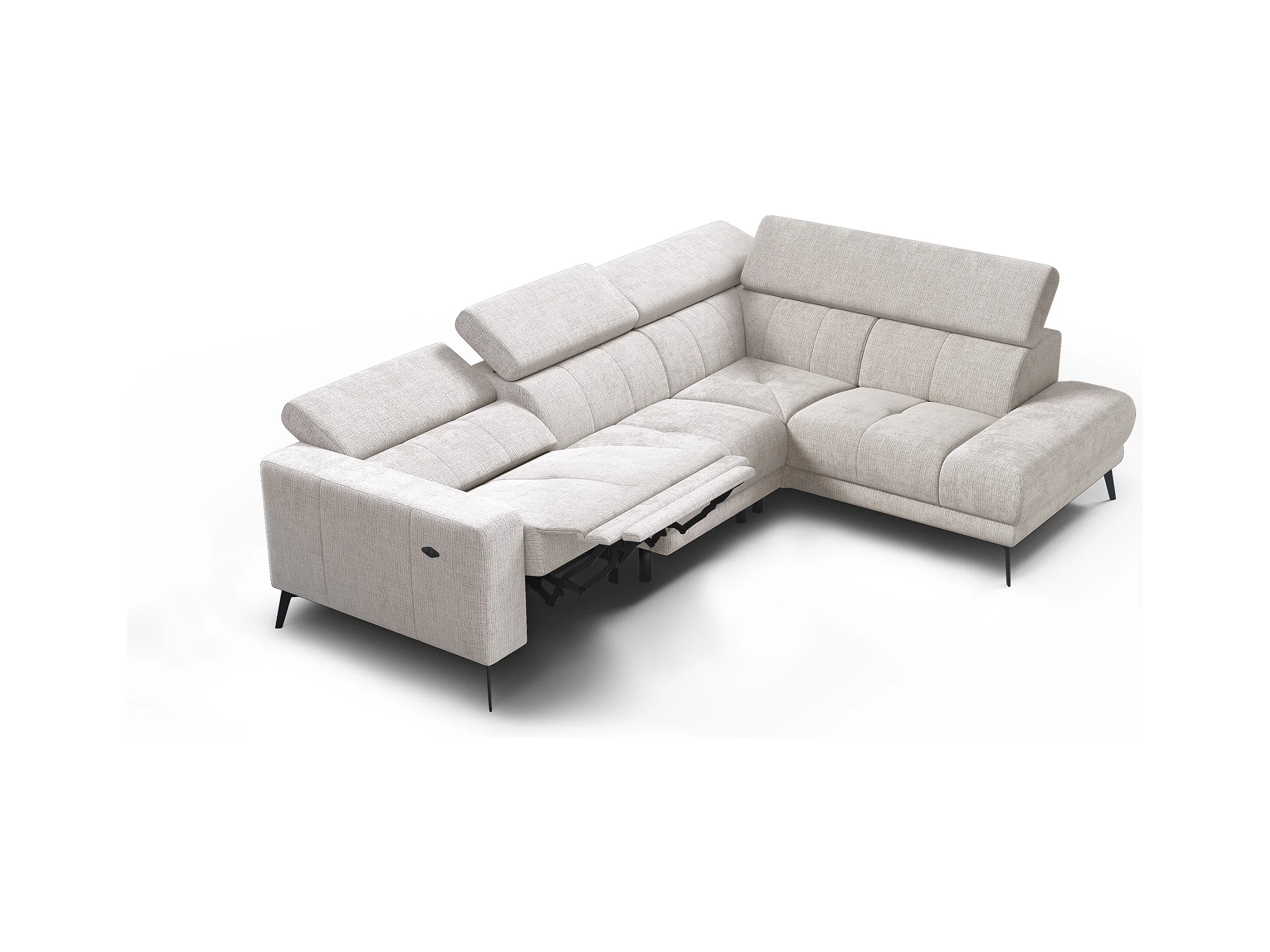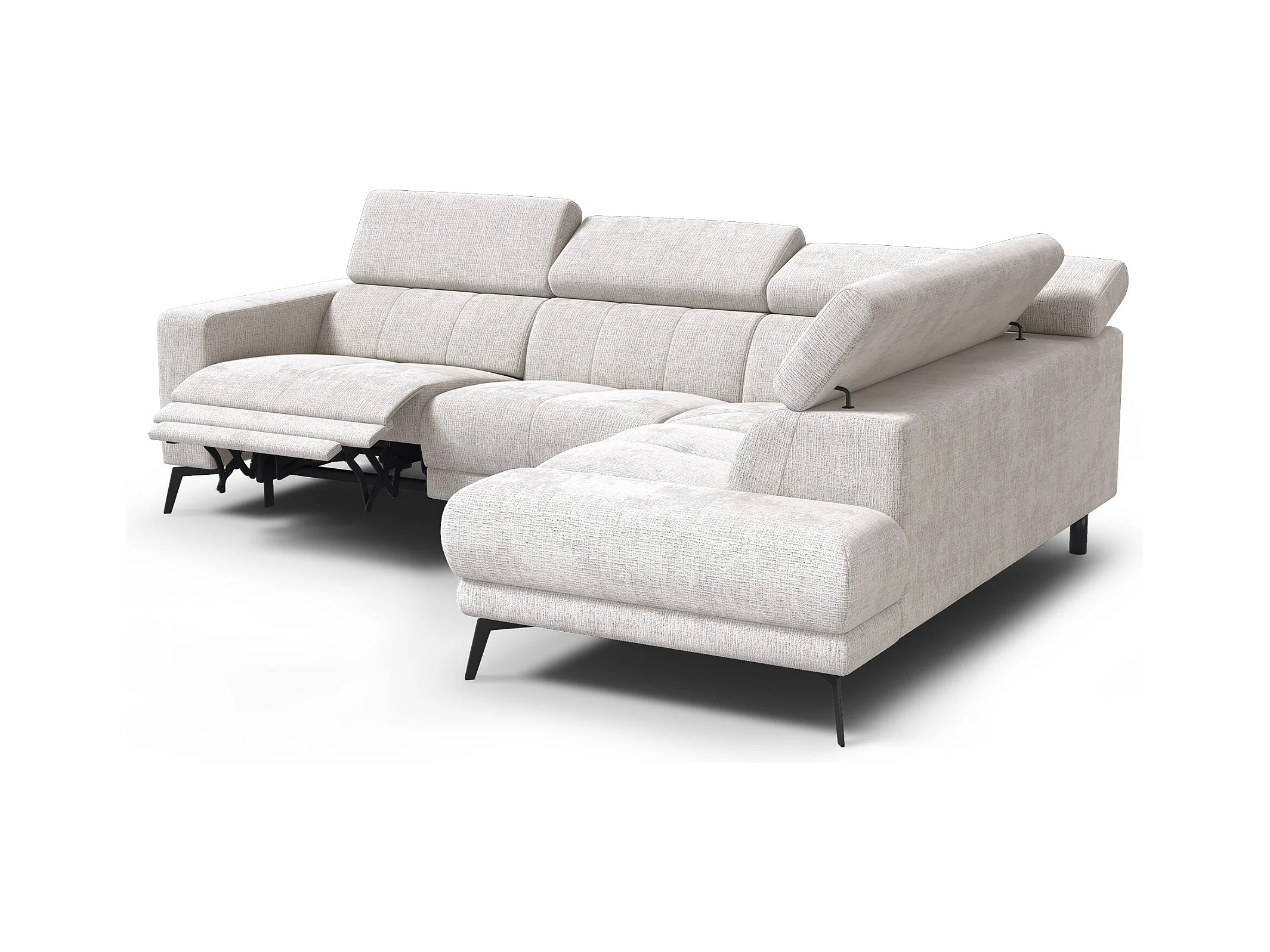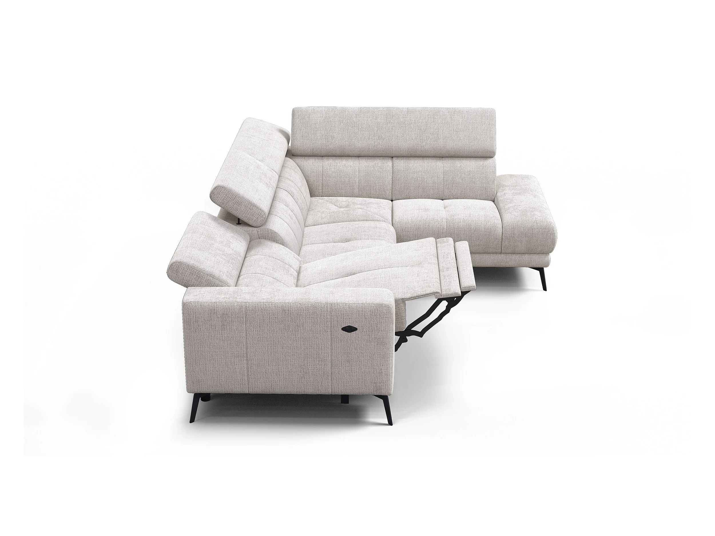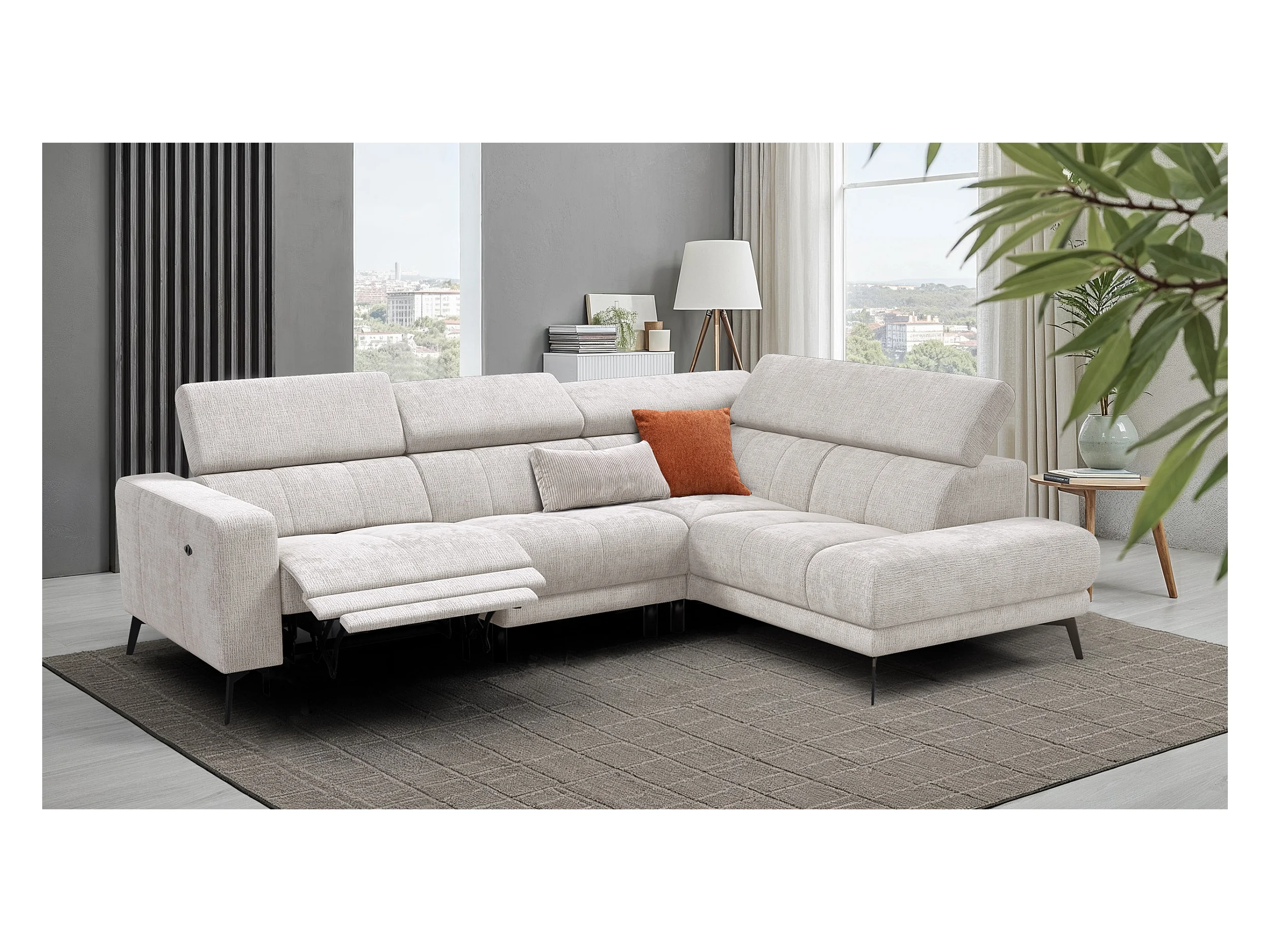 Canapé d'angle 5 places MORELLO avec 1 x Relax Zero Gravity, tissu crème