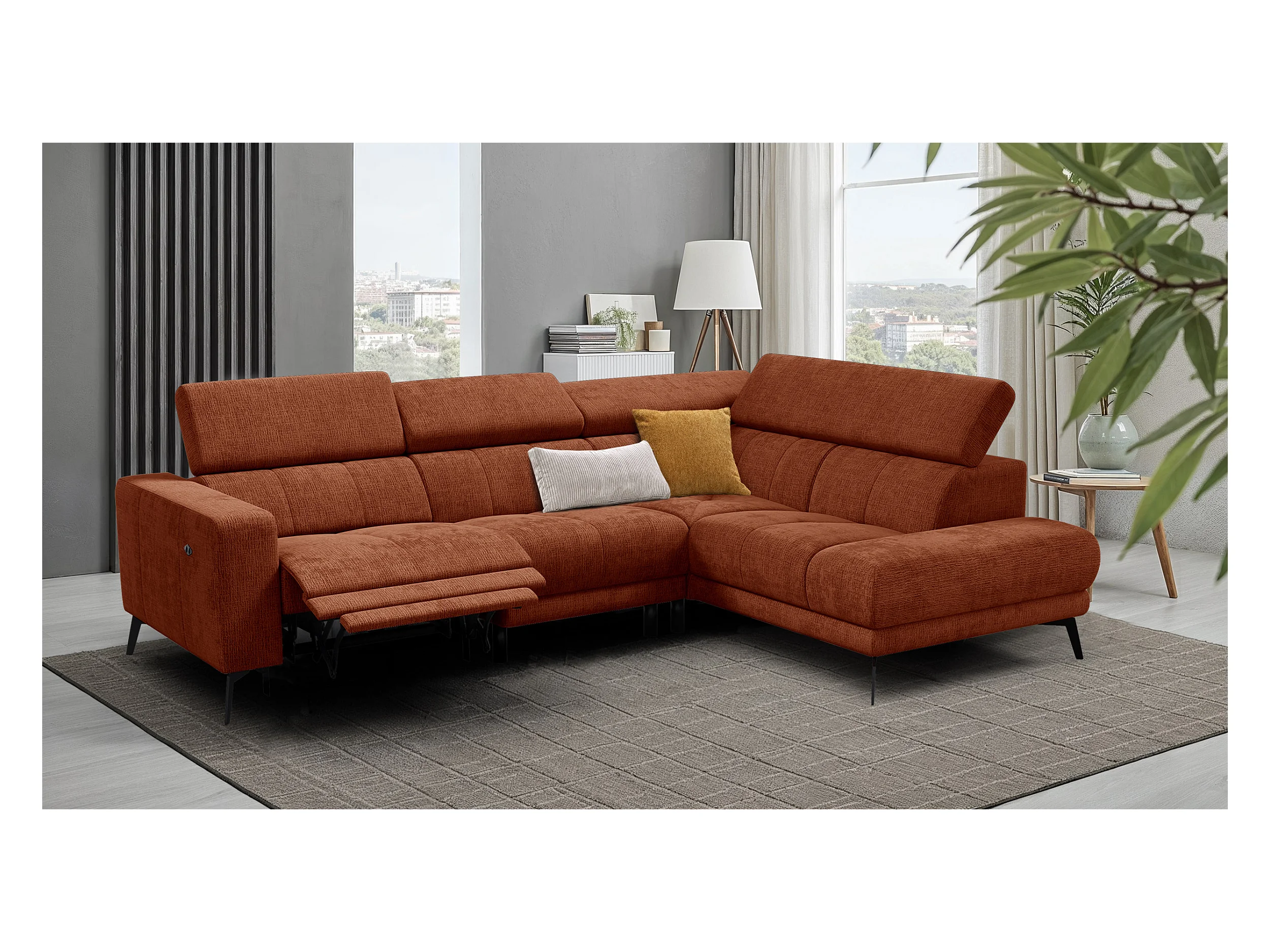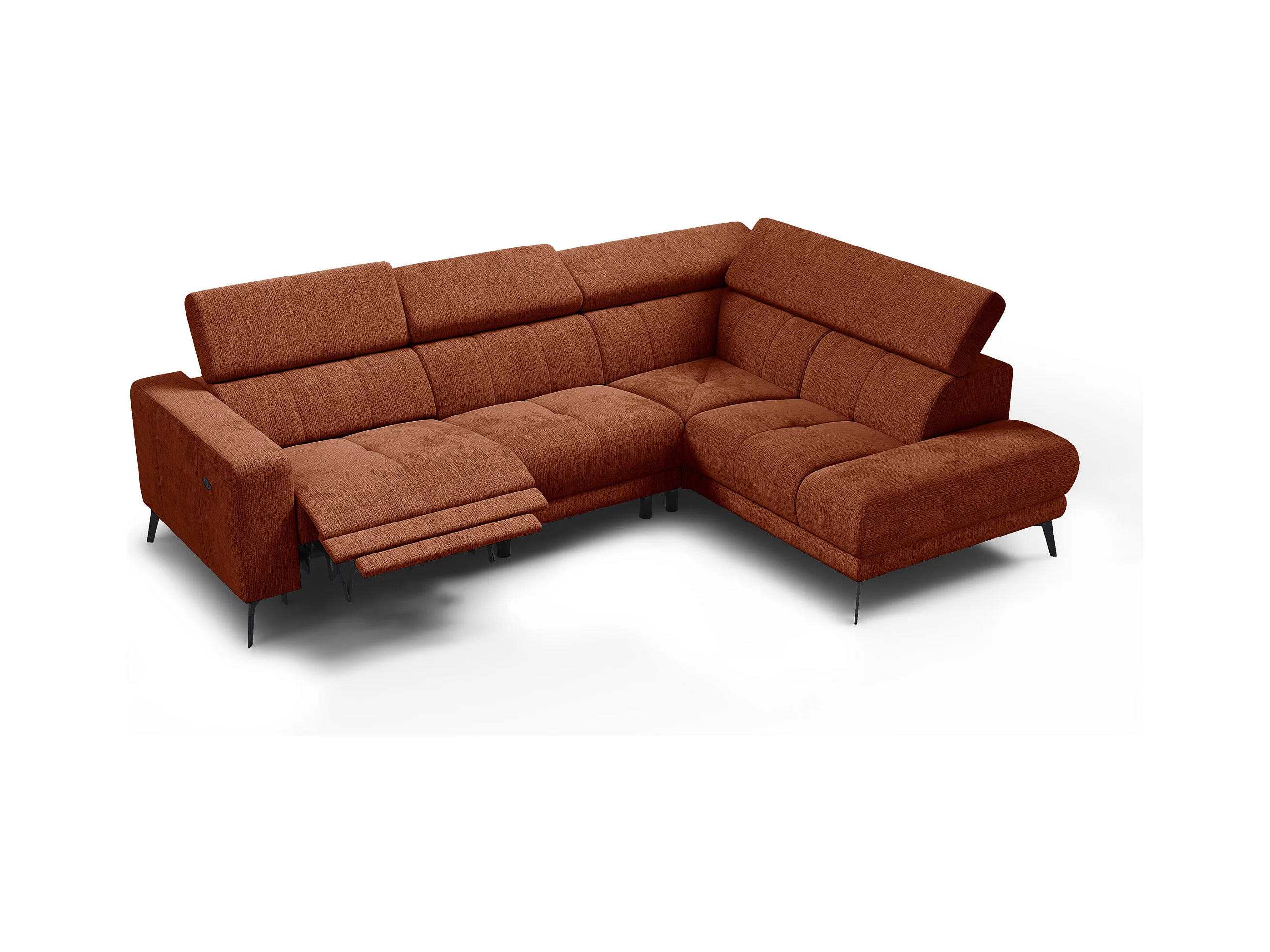 Canapé d'angle 5 places MORELLO avec 1 x Relax Zero Gravity, tissu orange foncé
