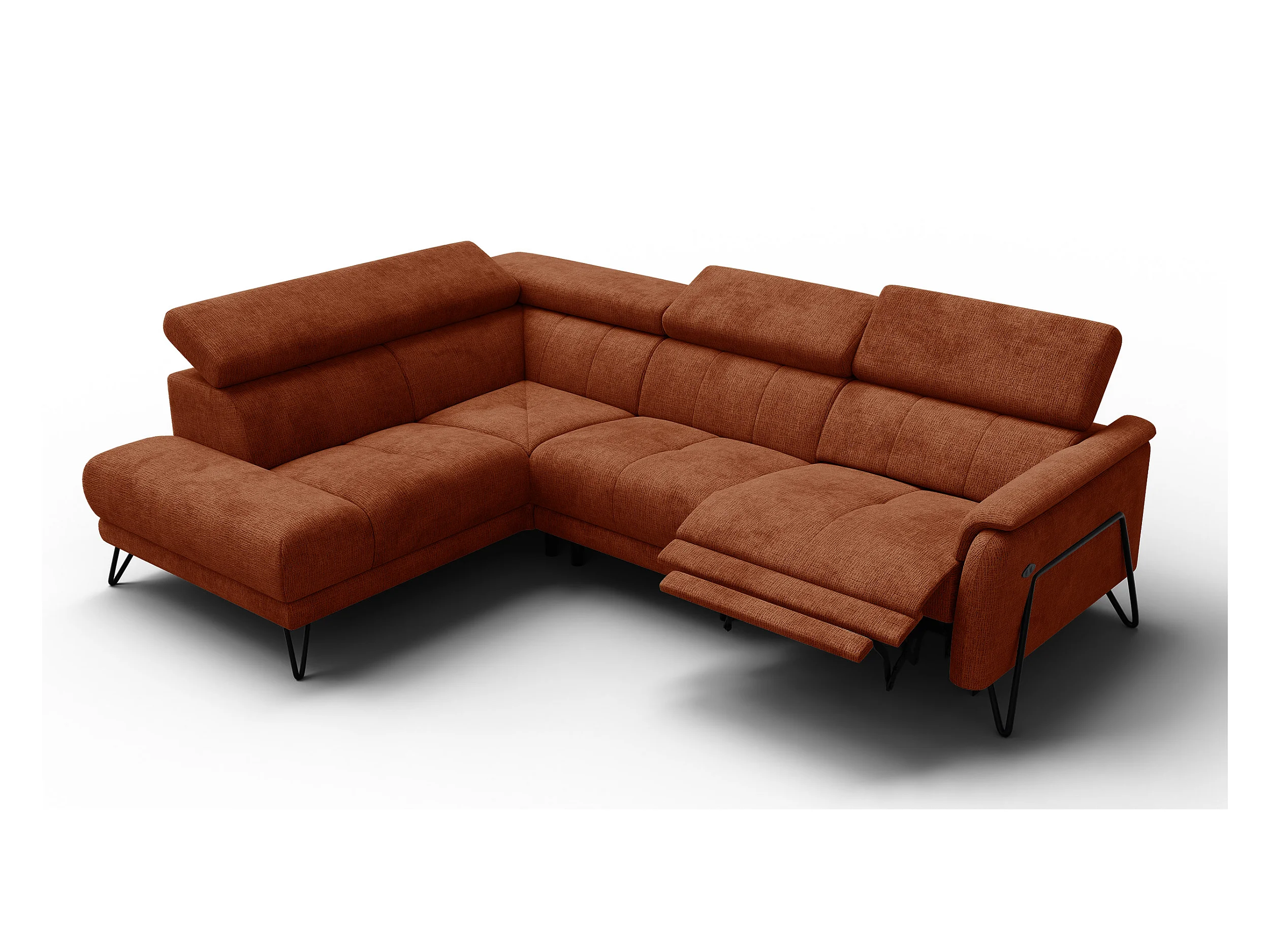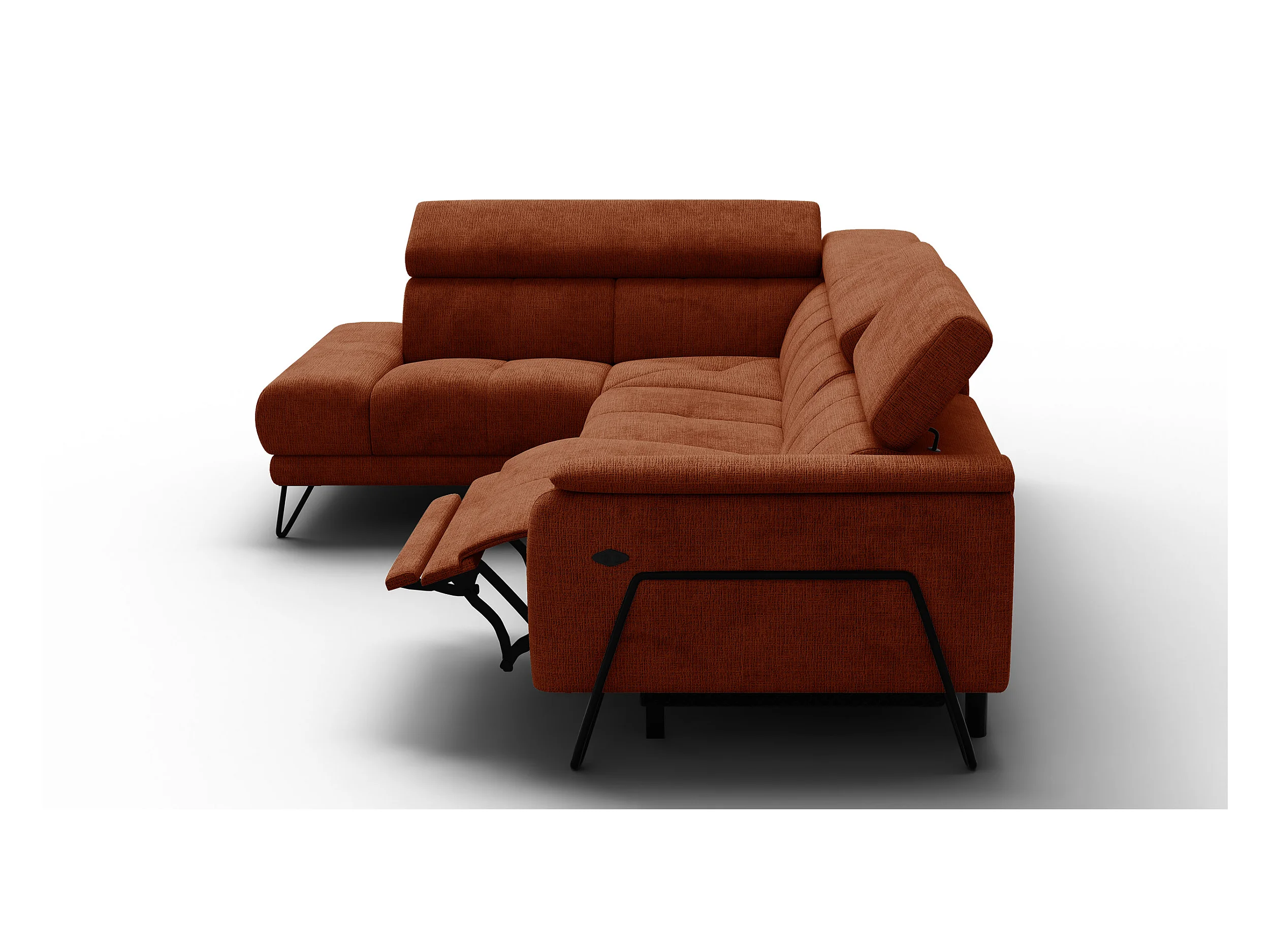 Canapé d'angle 5 places RODEN avec Relax, tissu orange foncé