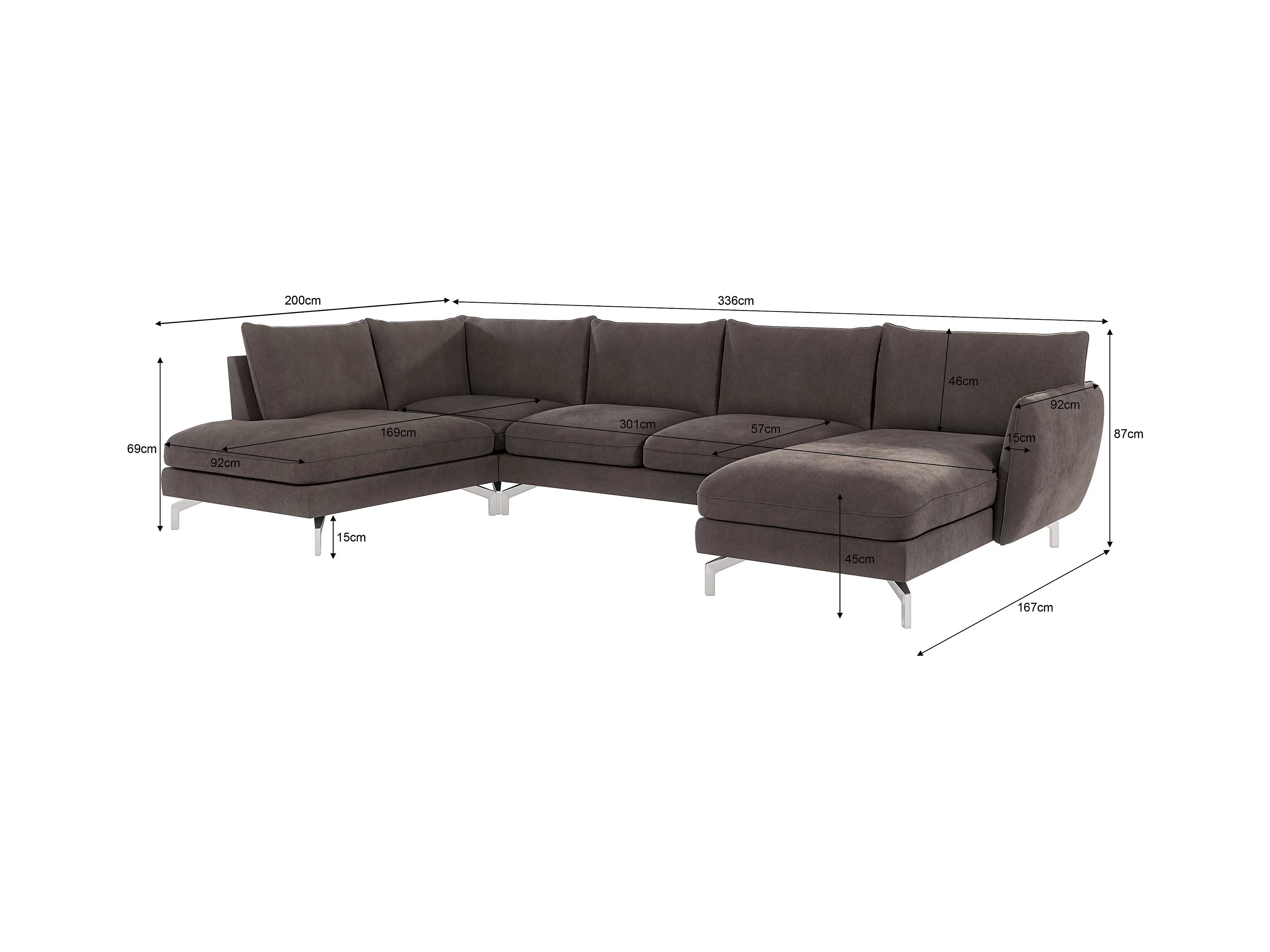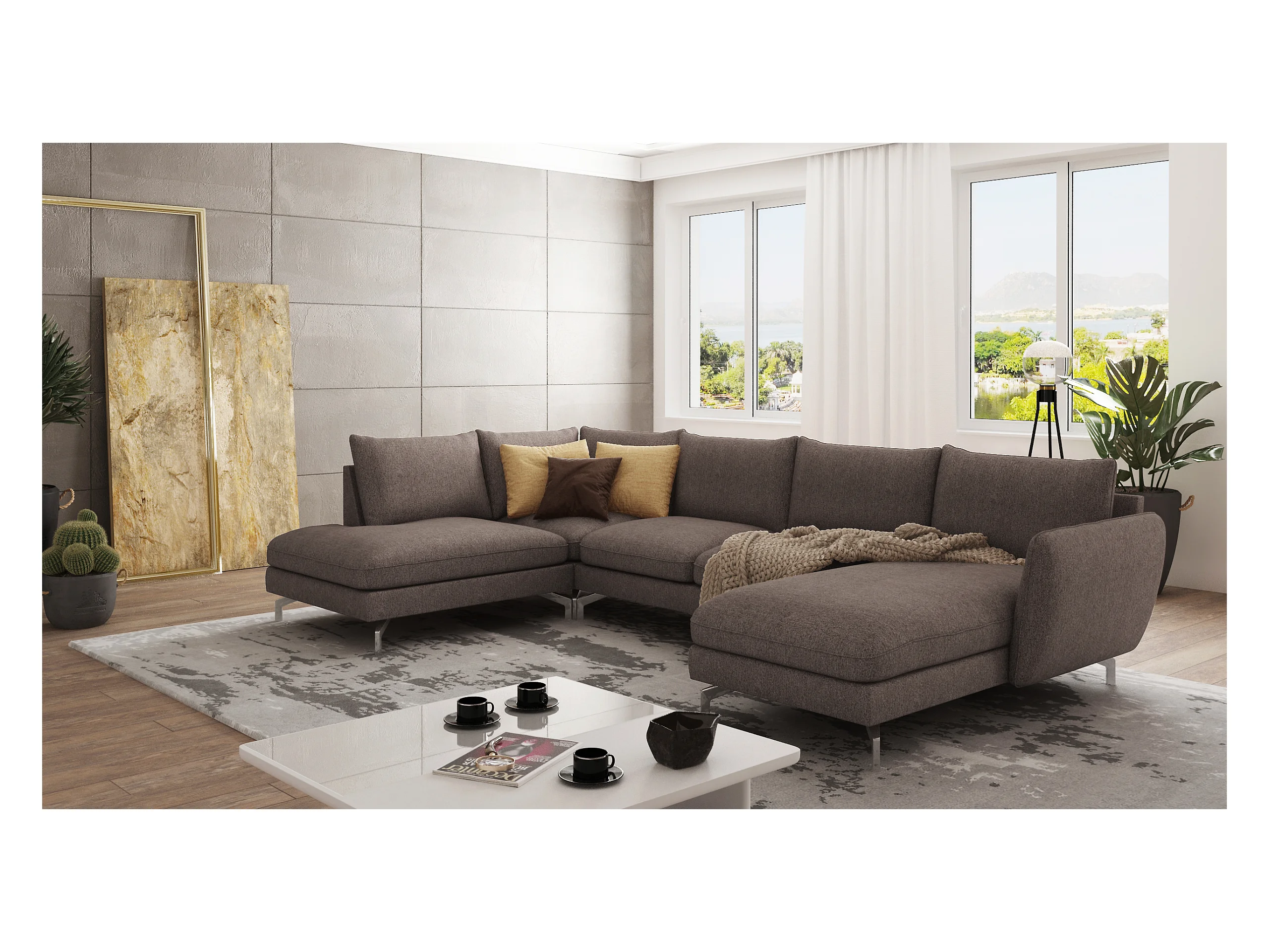 Canapé d’angle 7 places avec pieds argentés ZOE