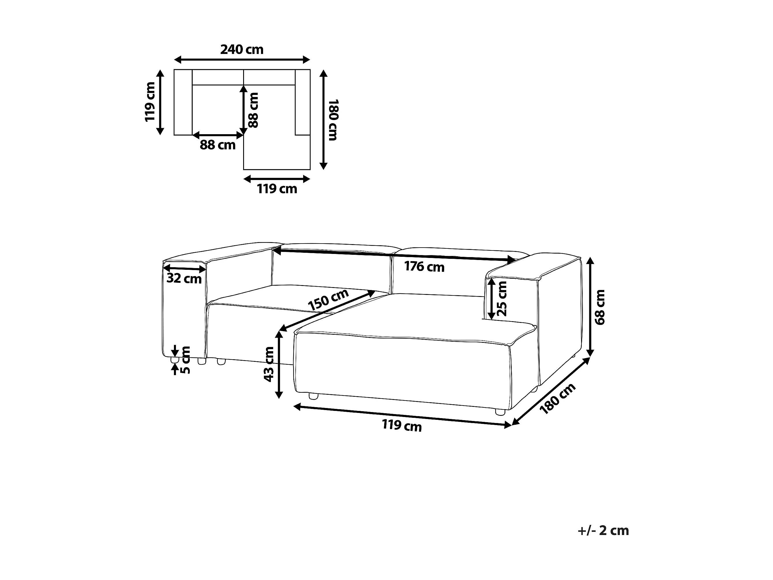 Canapé d'angle modulable 2 places ARDAL Bouclé Blanc Côté droite