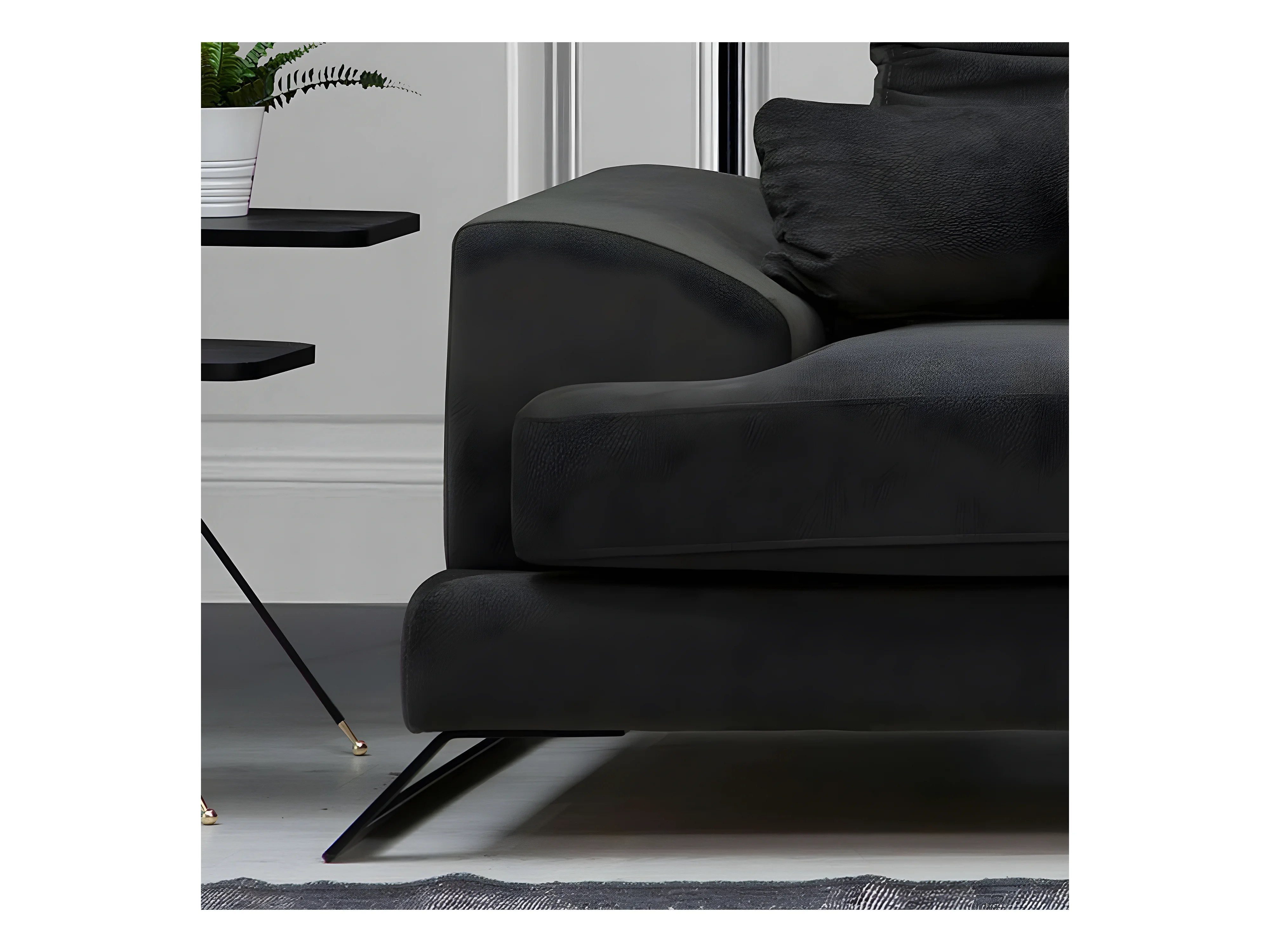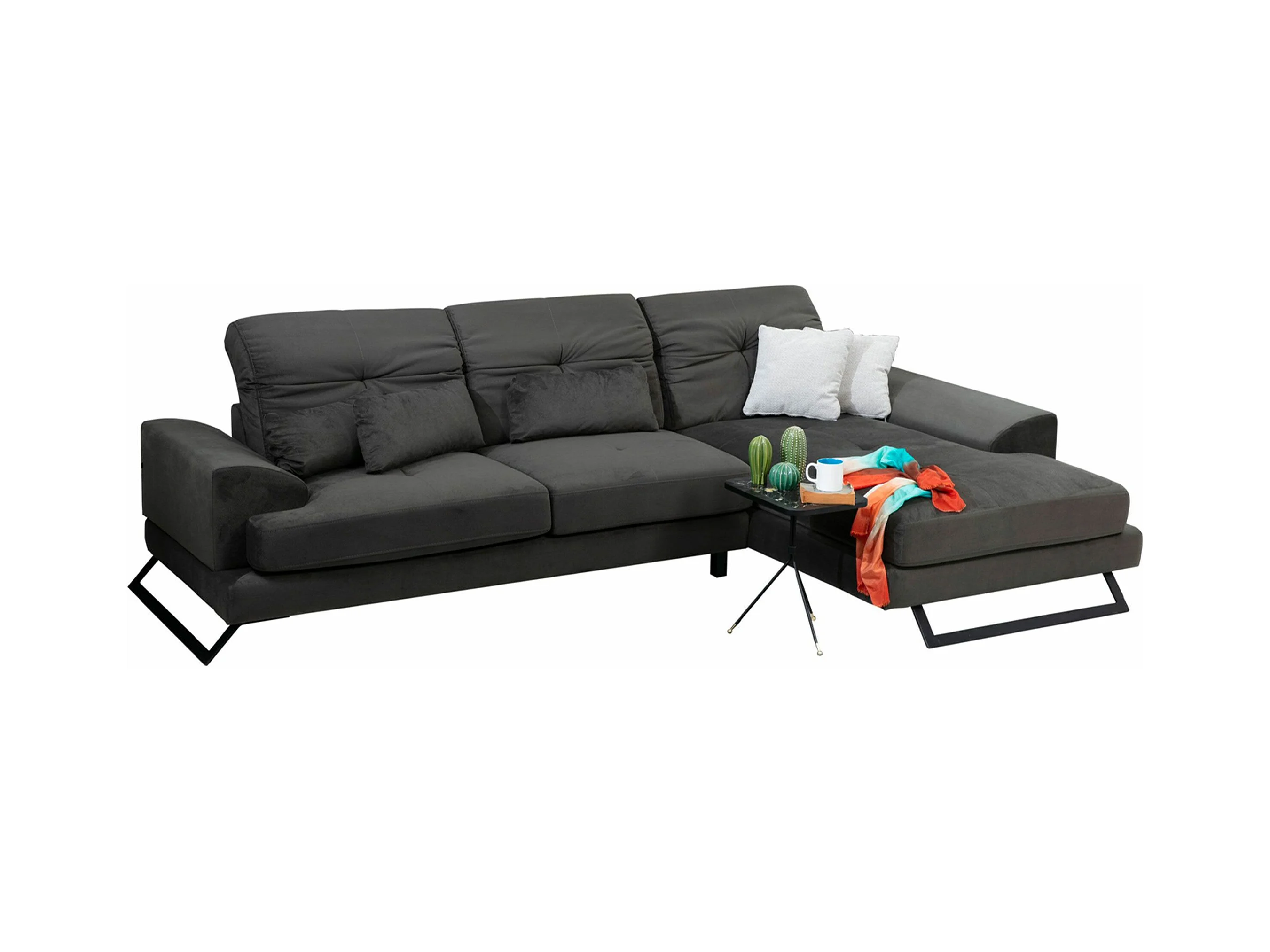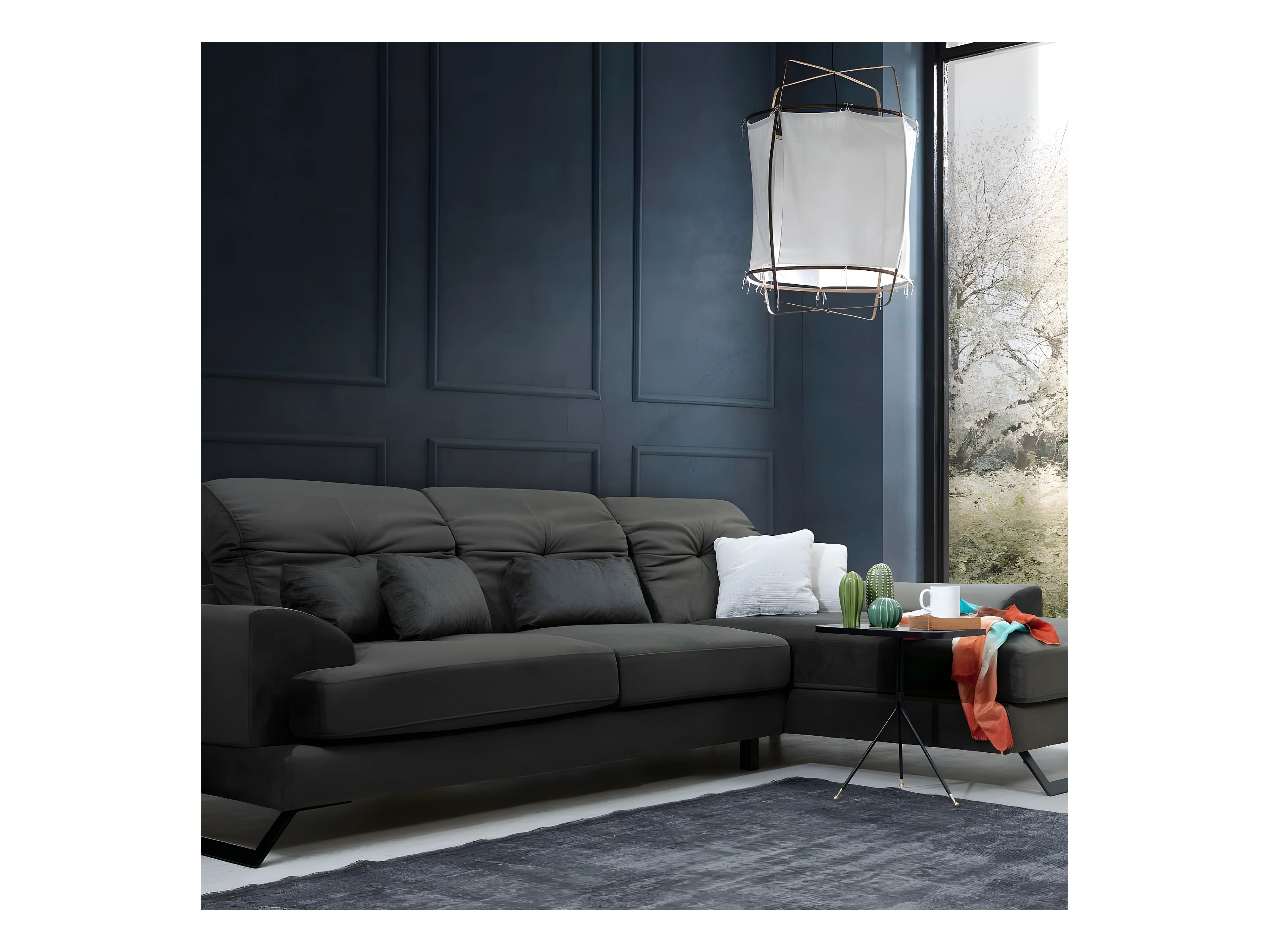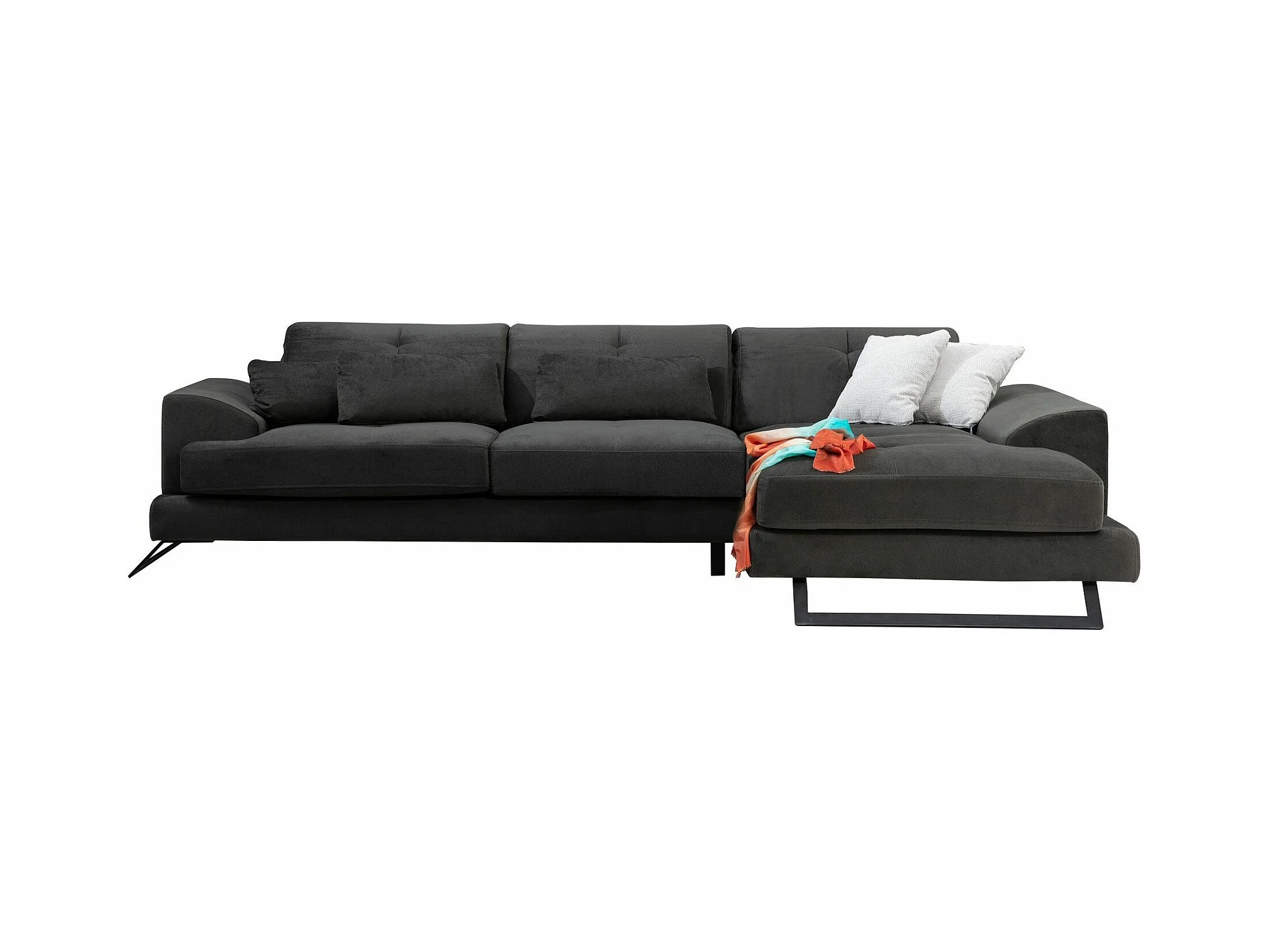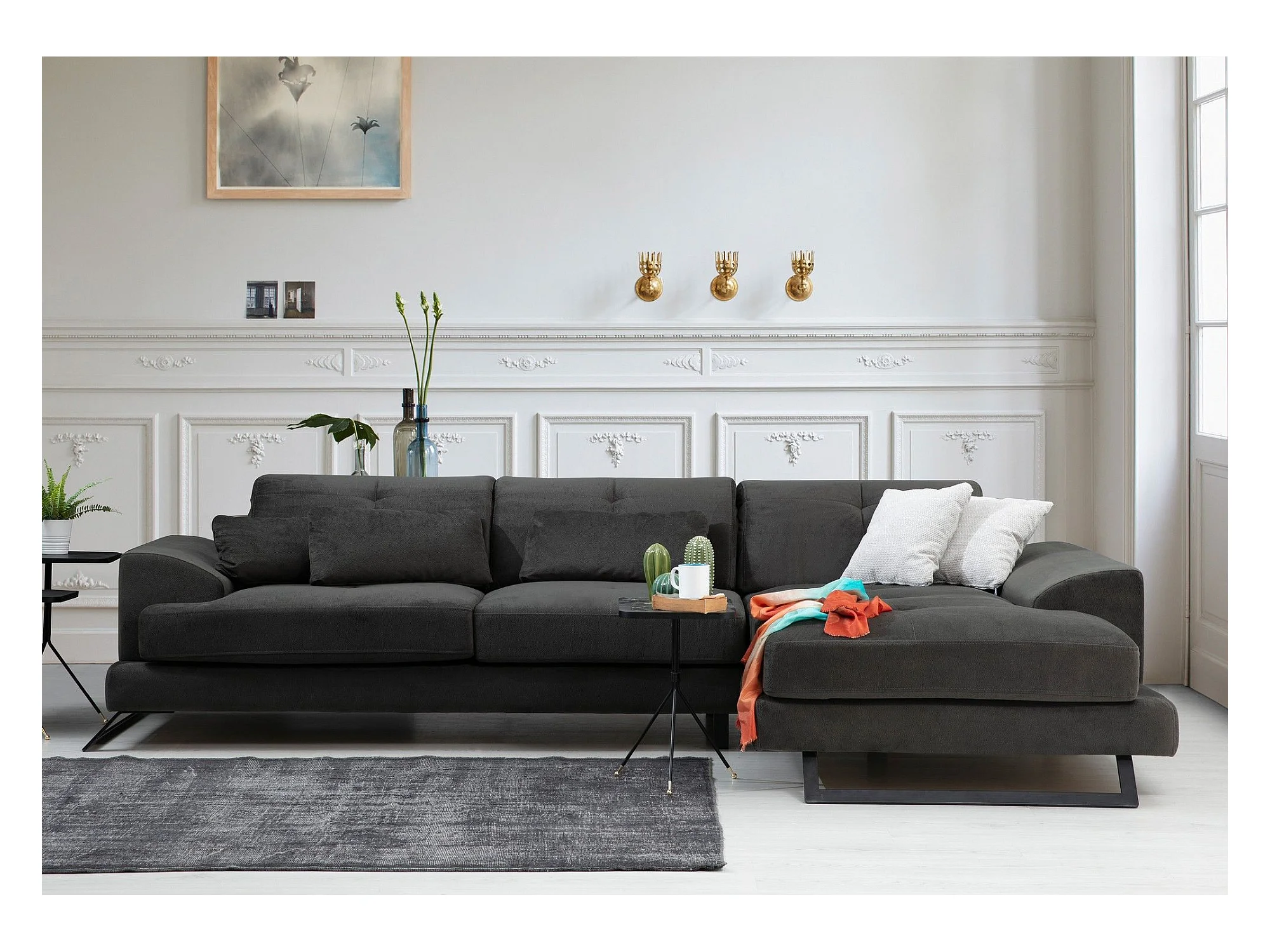 Canapé d'angle à droite avec 5 coussins Cyclades Velours texturé effet simili de vachette Anthracite