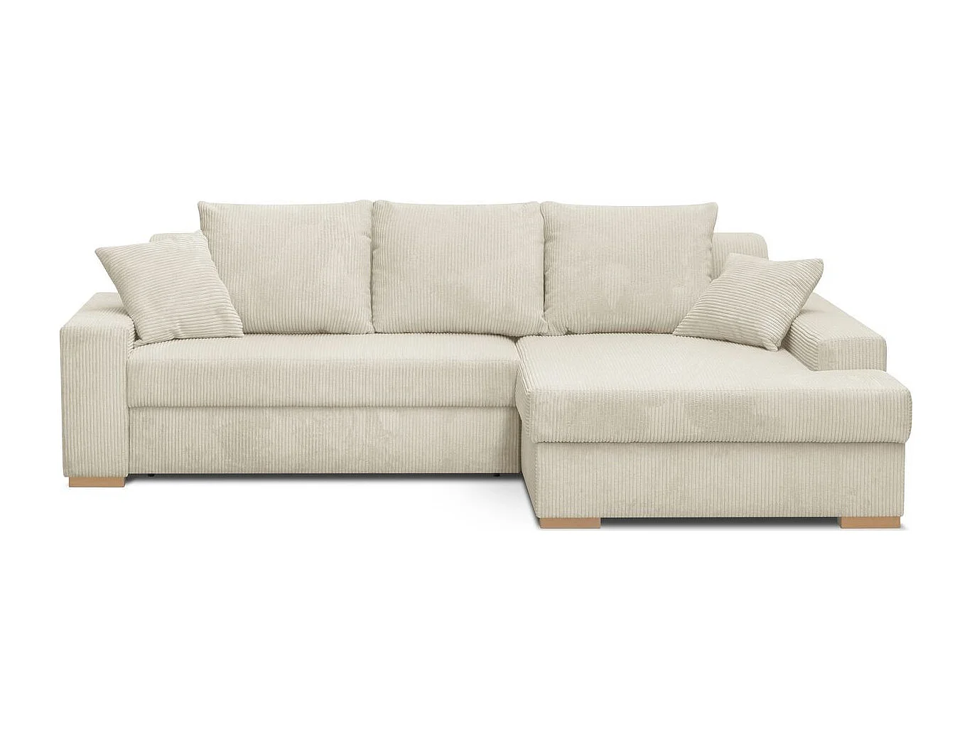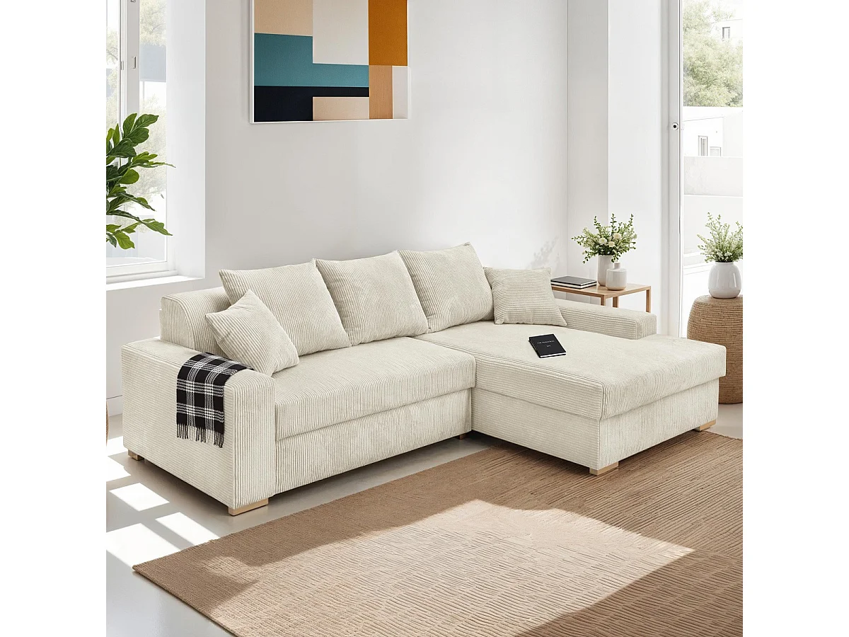 Canapé d'angle à droite convertible 3/4 places en velours côtelé beige - Nyssa