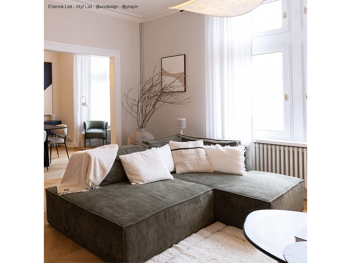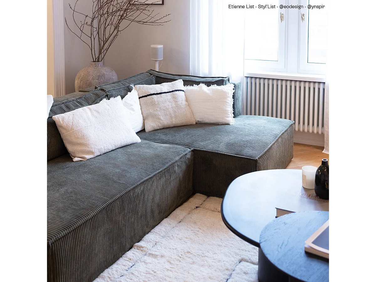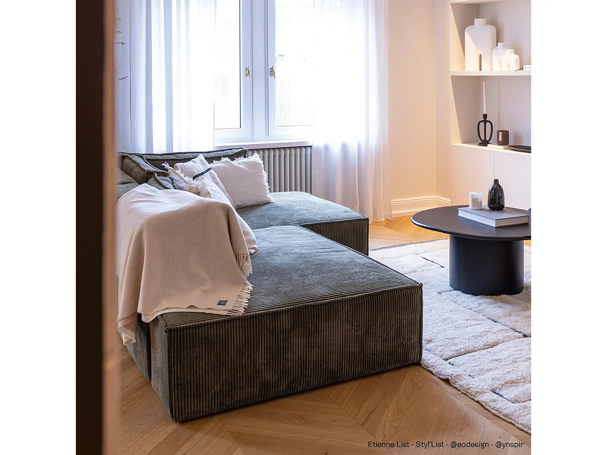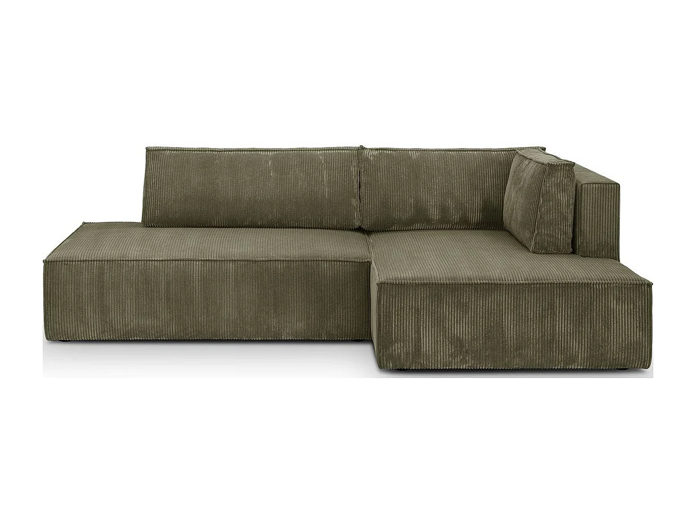 Canapé d'angle à droite convertible 3 places avec coffre en velours côtelé vert kaki - Barani