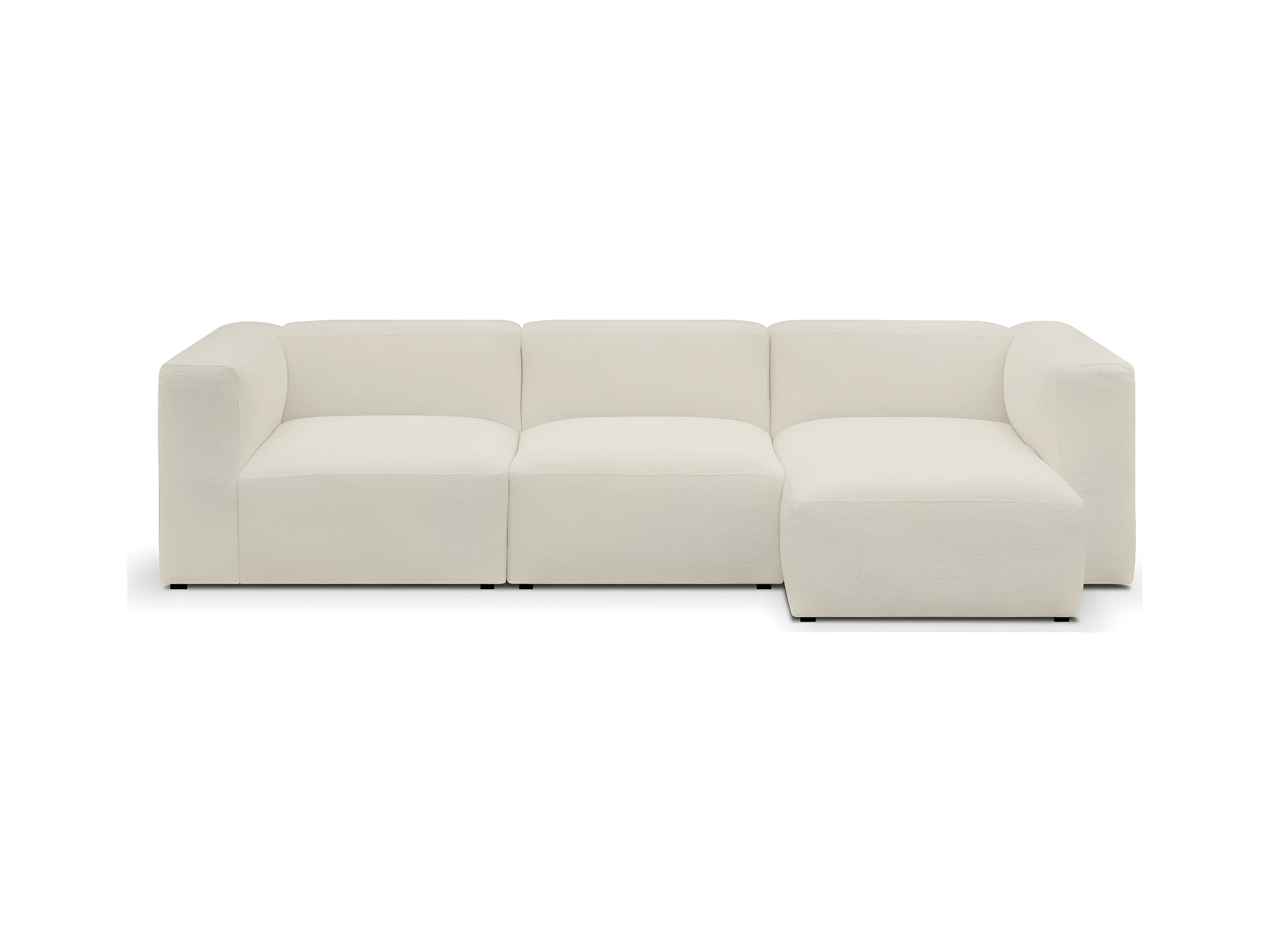 Canapé d'angle à droite modulable avec méridienne 4 places en tissu bouclé beige - Modulo