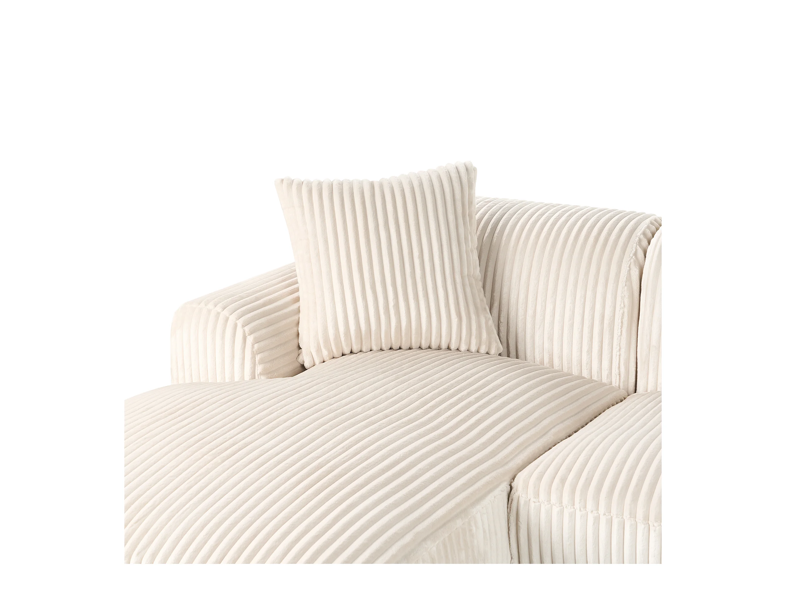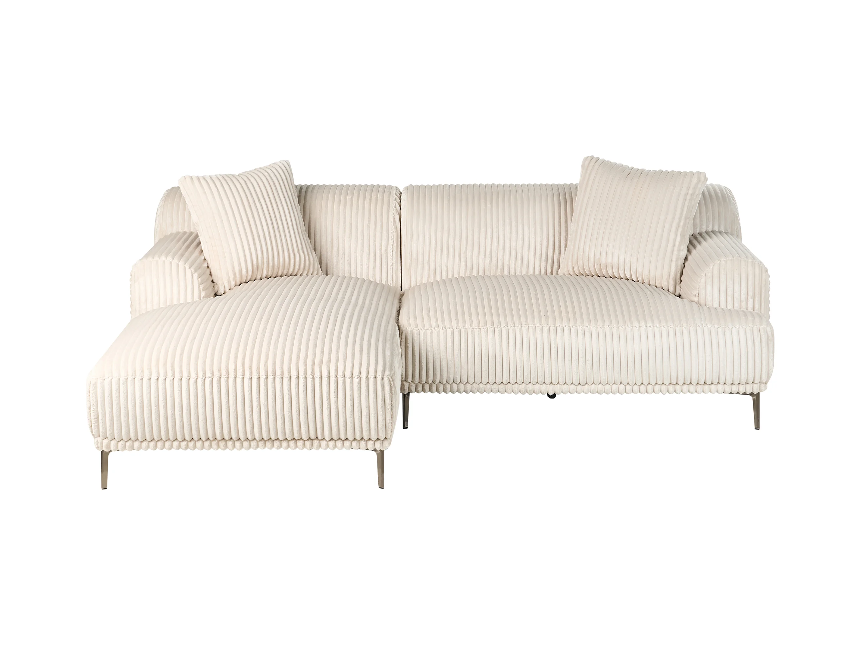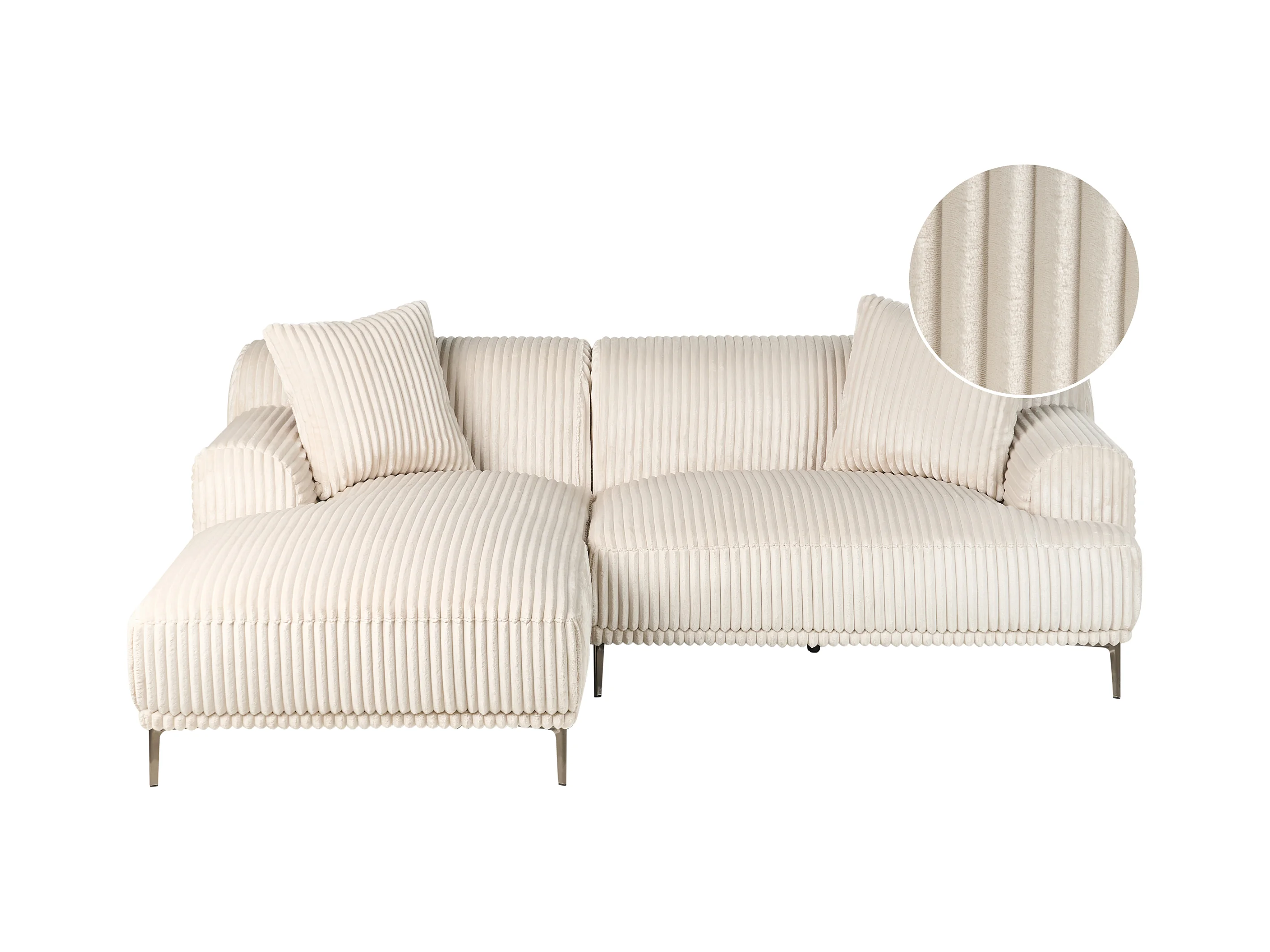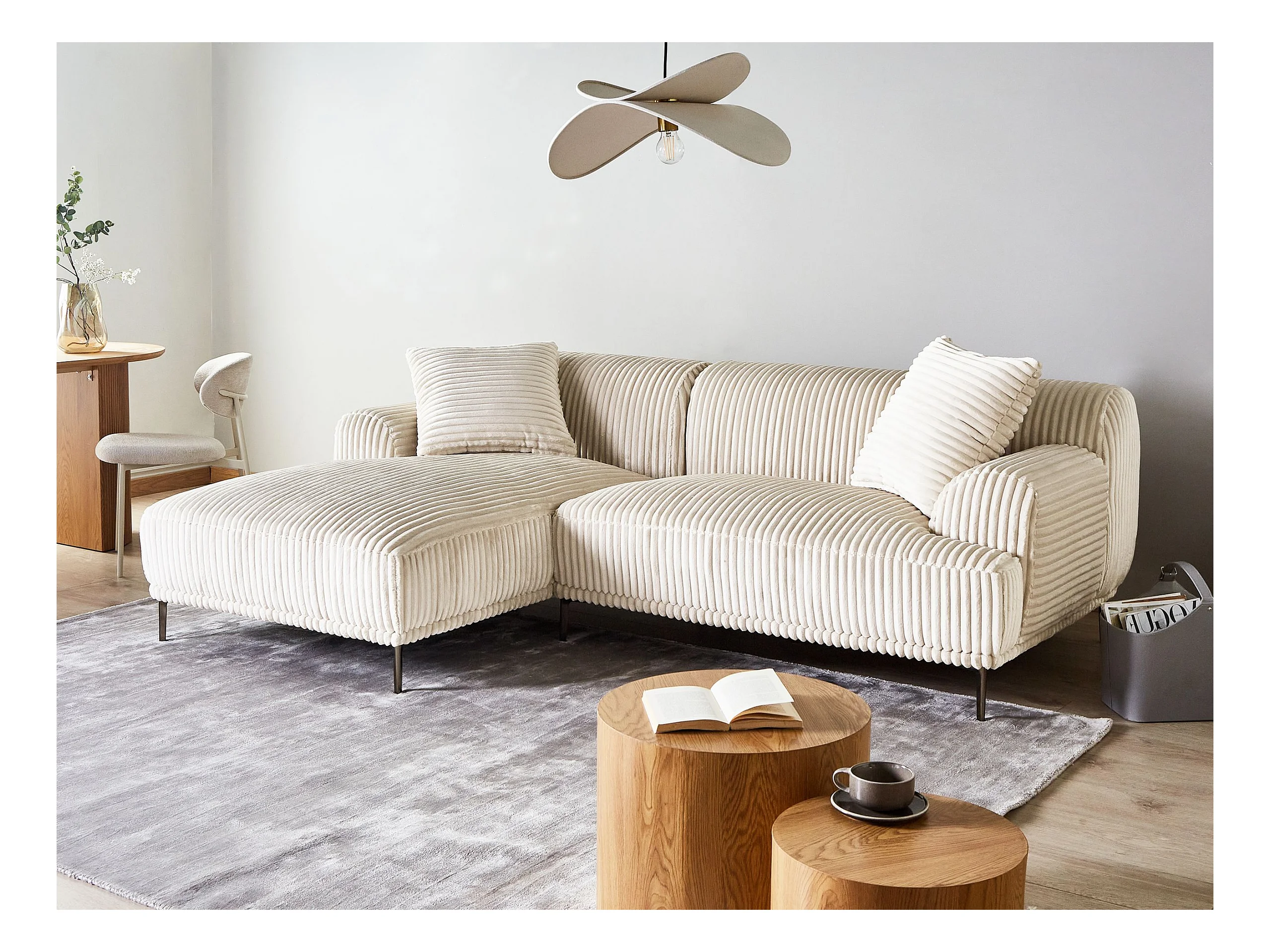 Canapé d'Angle à gauche en Velours Côtelé 3 Places Blanc Cassé Stenum