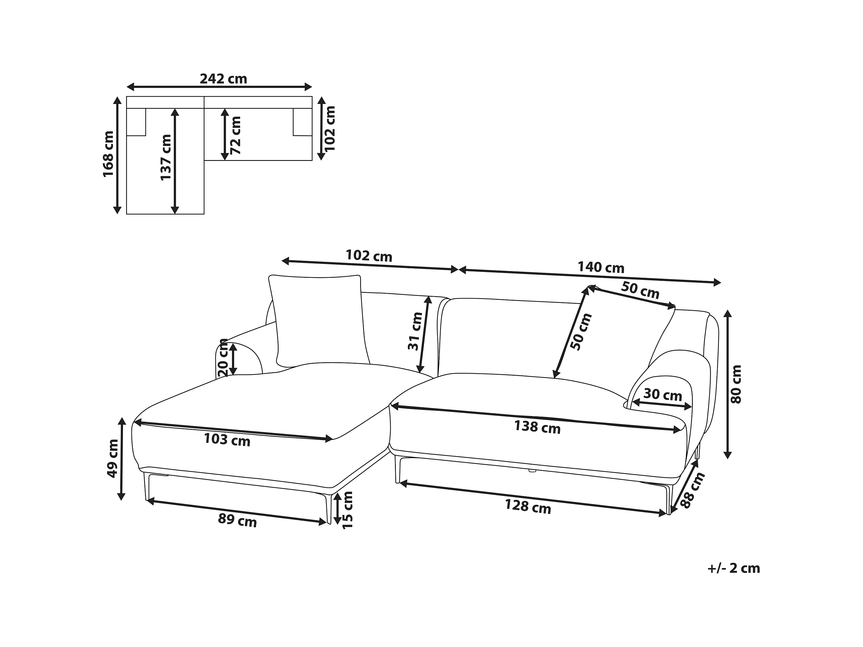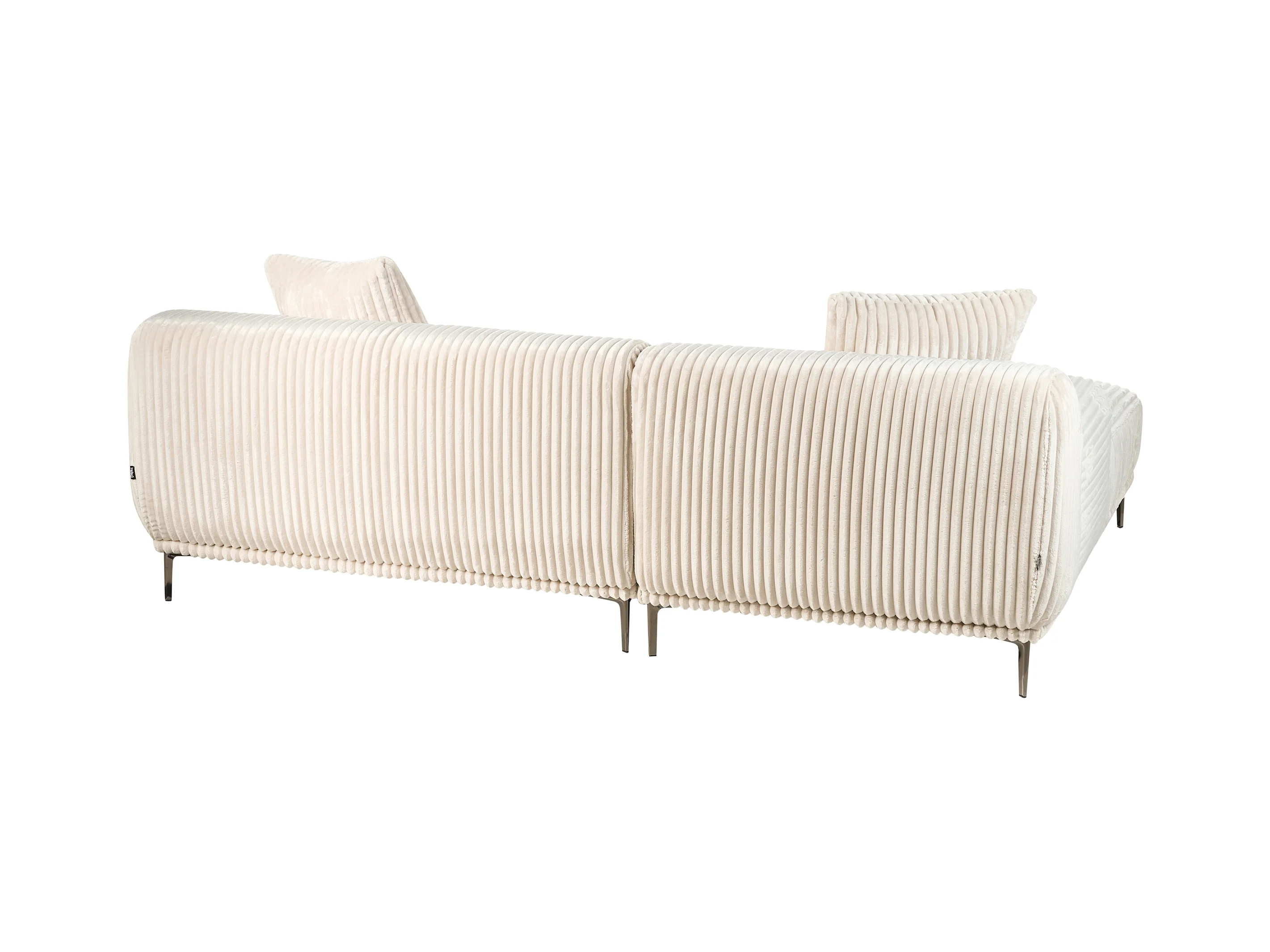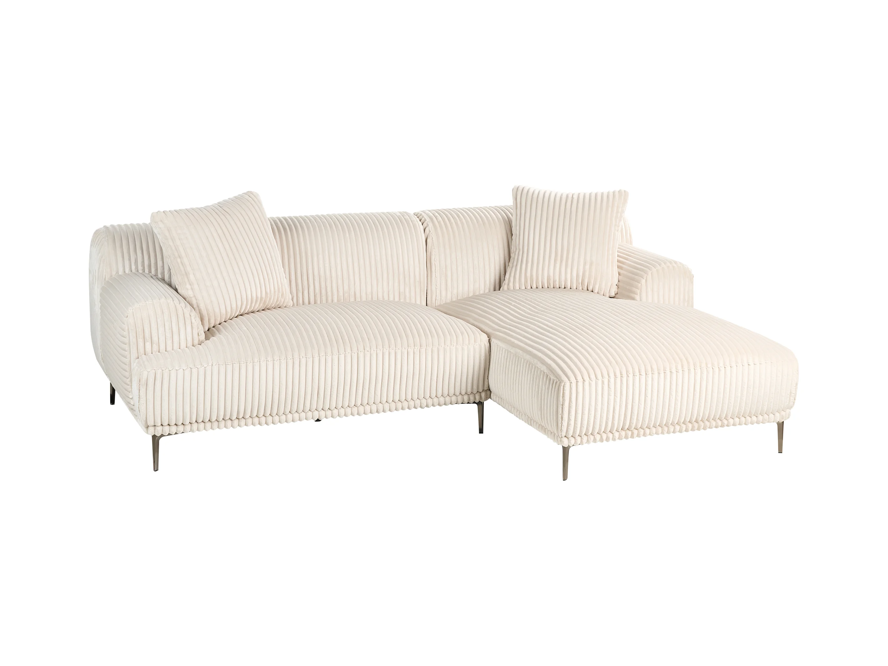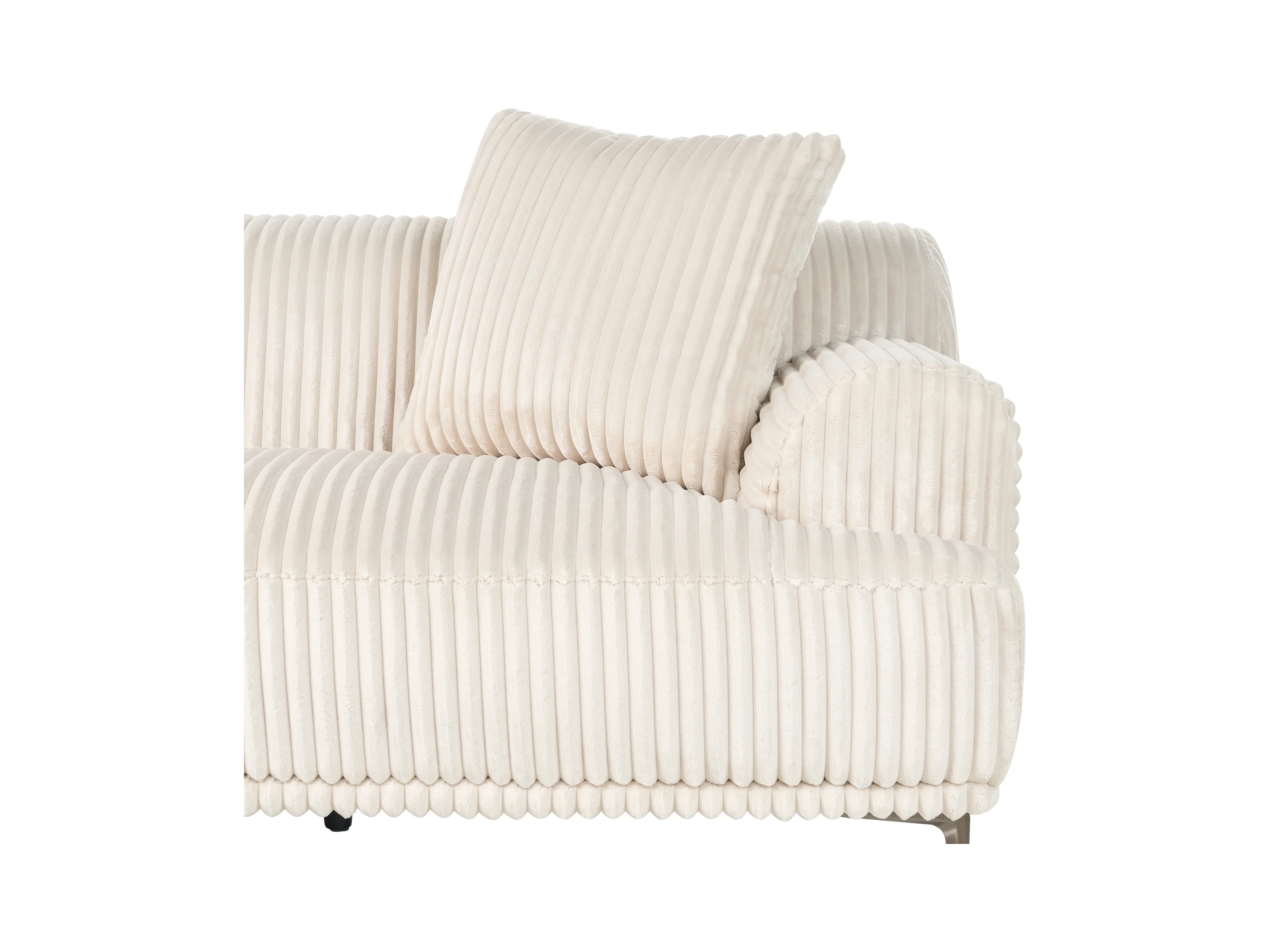 Canapé d'Angle à gauche en Velours Côtelé 3 Places Blanc Cassé Stenum