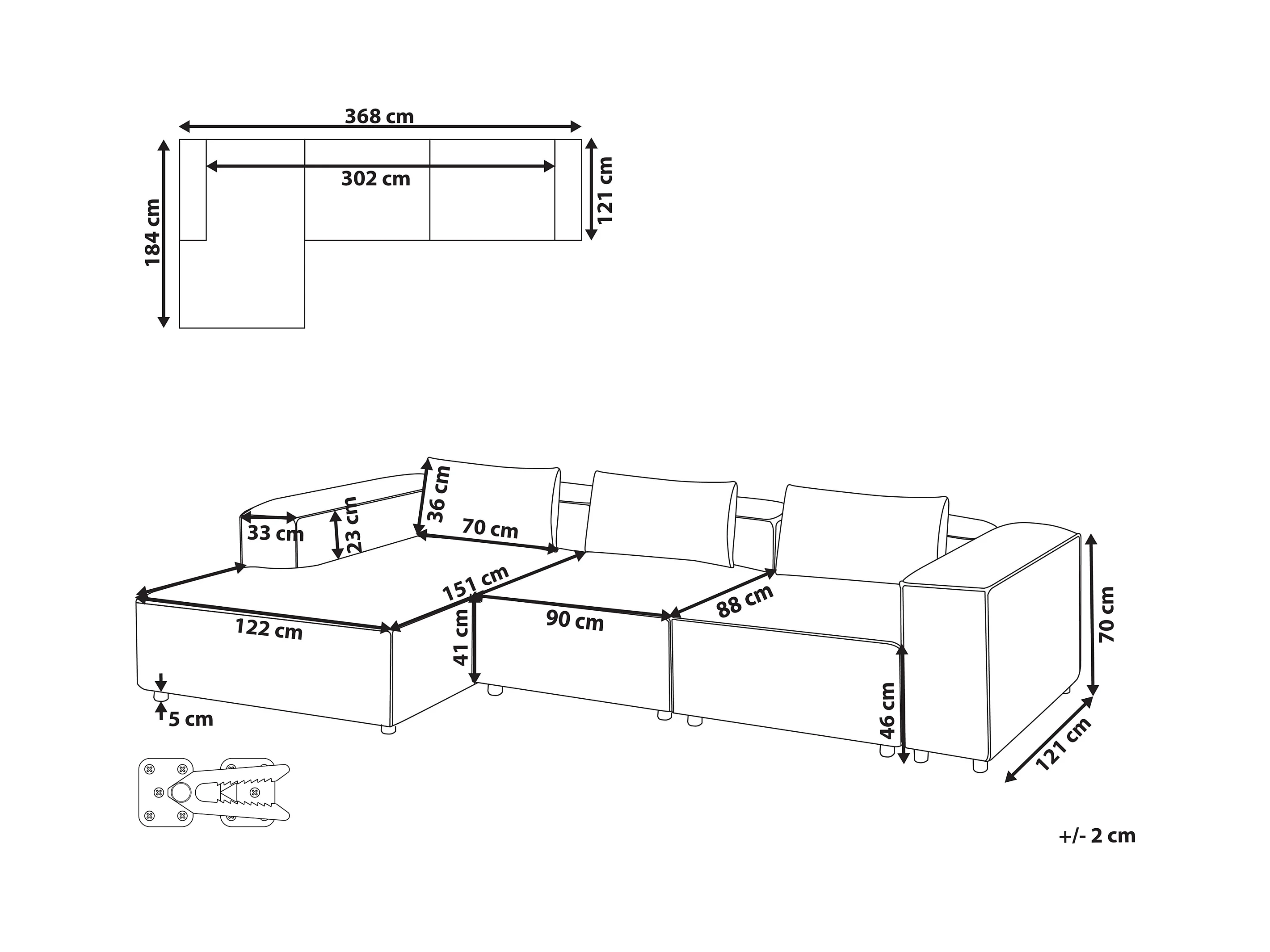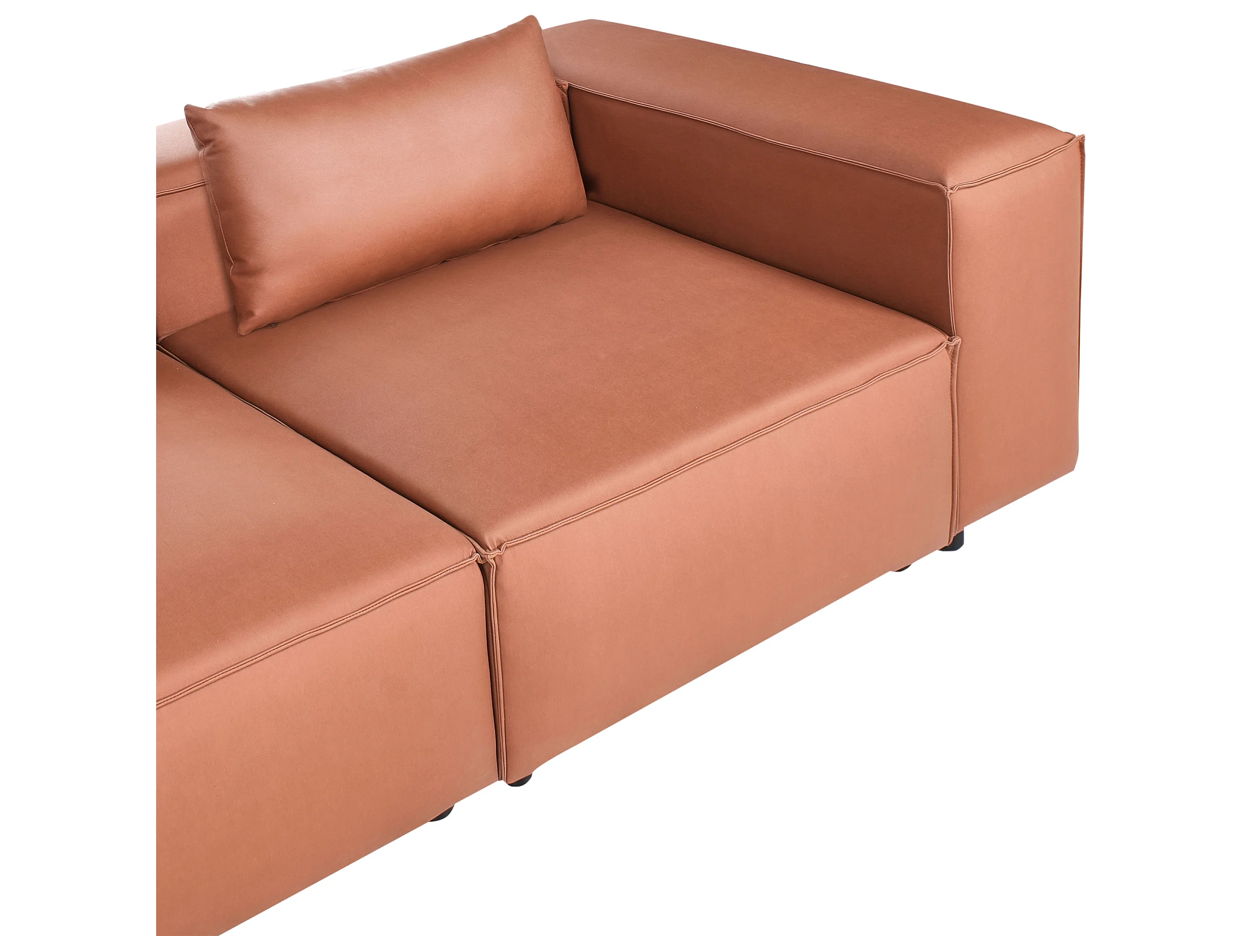 Canapé d'Angle à gauche Moderne 4 Places Modulable en Cuir PU avec Accoudoirs Marron Doré Brande