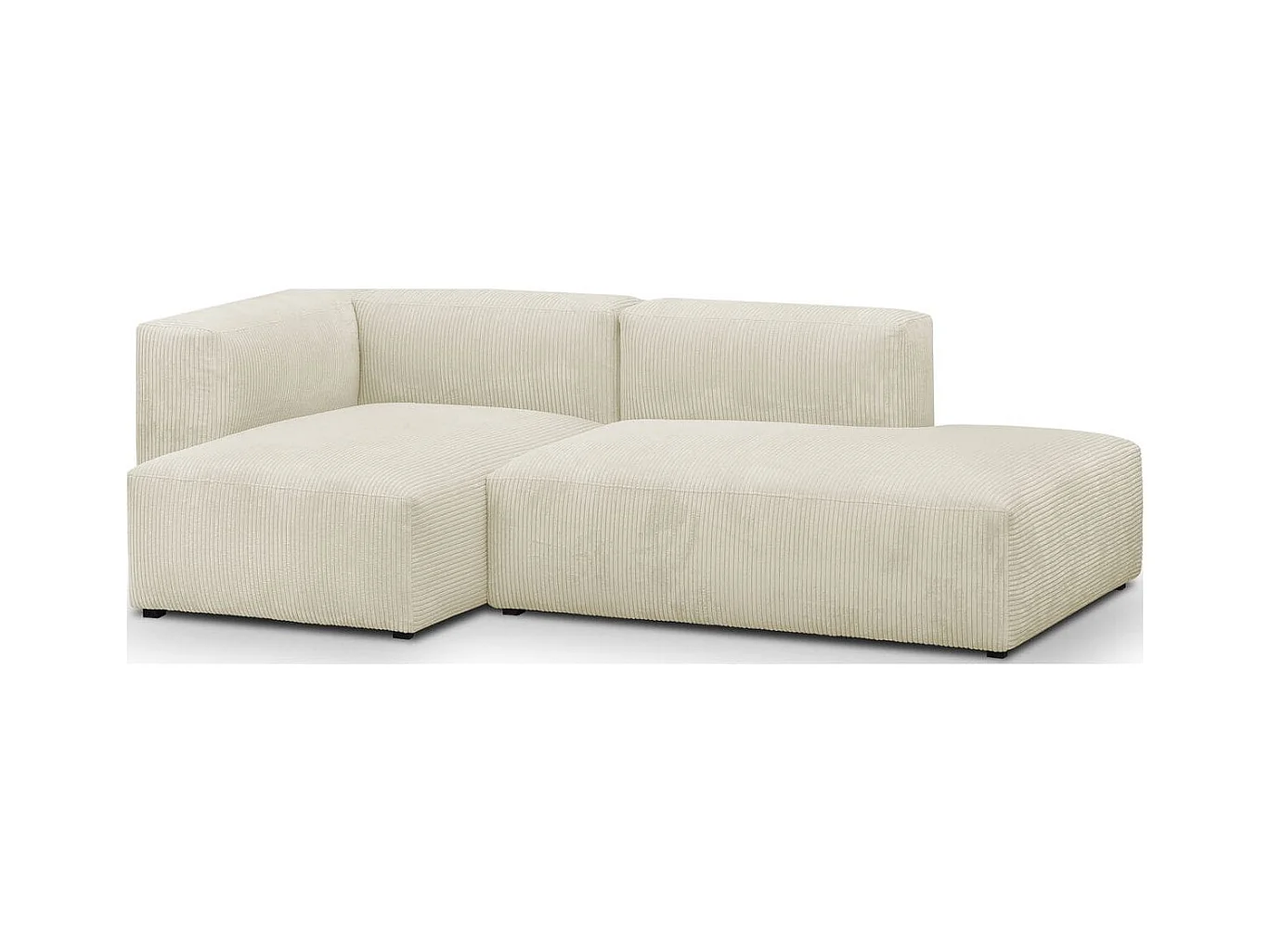 Canapé d'angle à gauche modulable avec méridienne 3/4 places en velours côtelé beige - Modulo