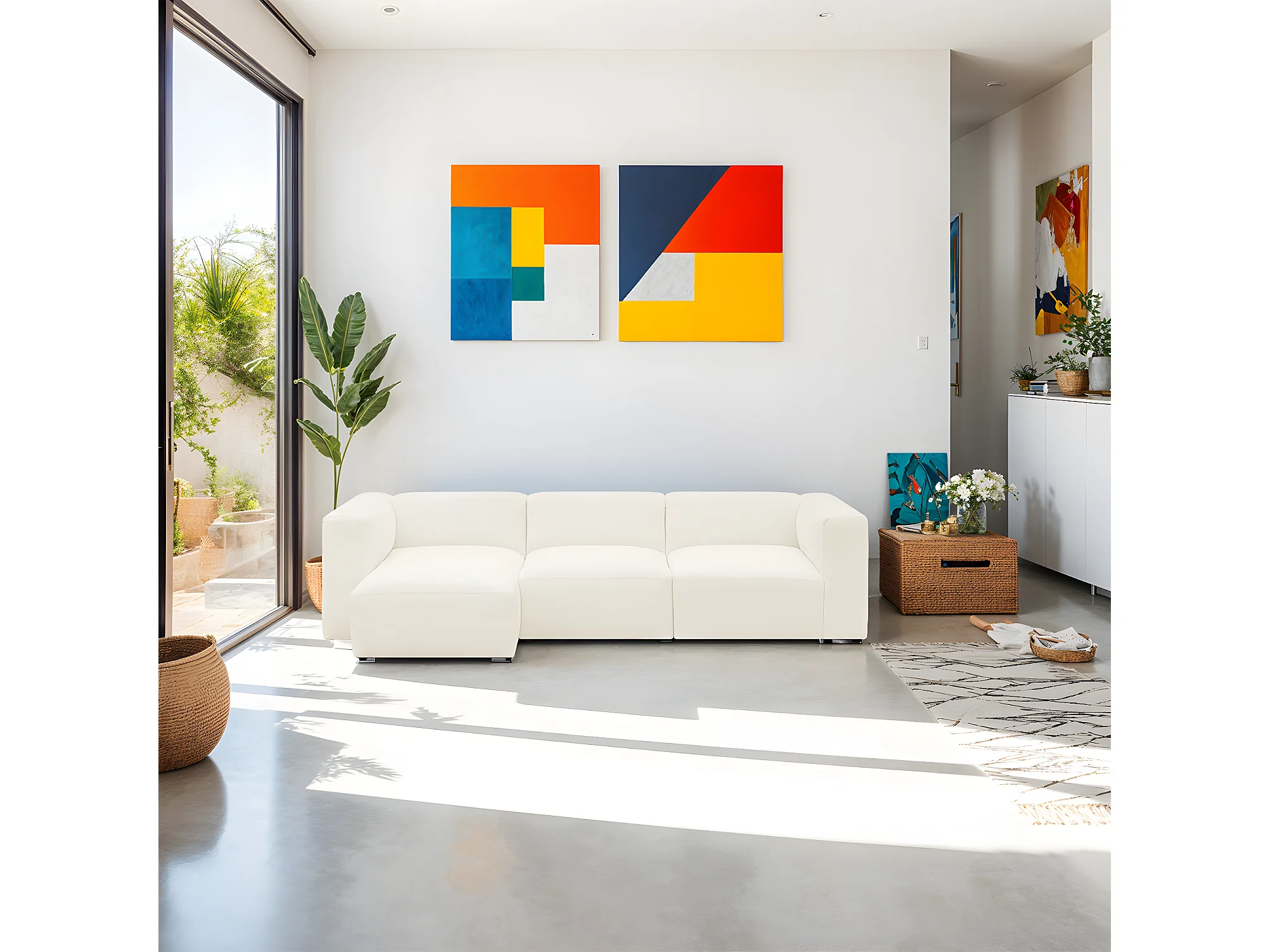 Canapé d'angle à gauche modulable avec méridienne 4 places en tissu bouclé beige - Modulo