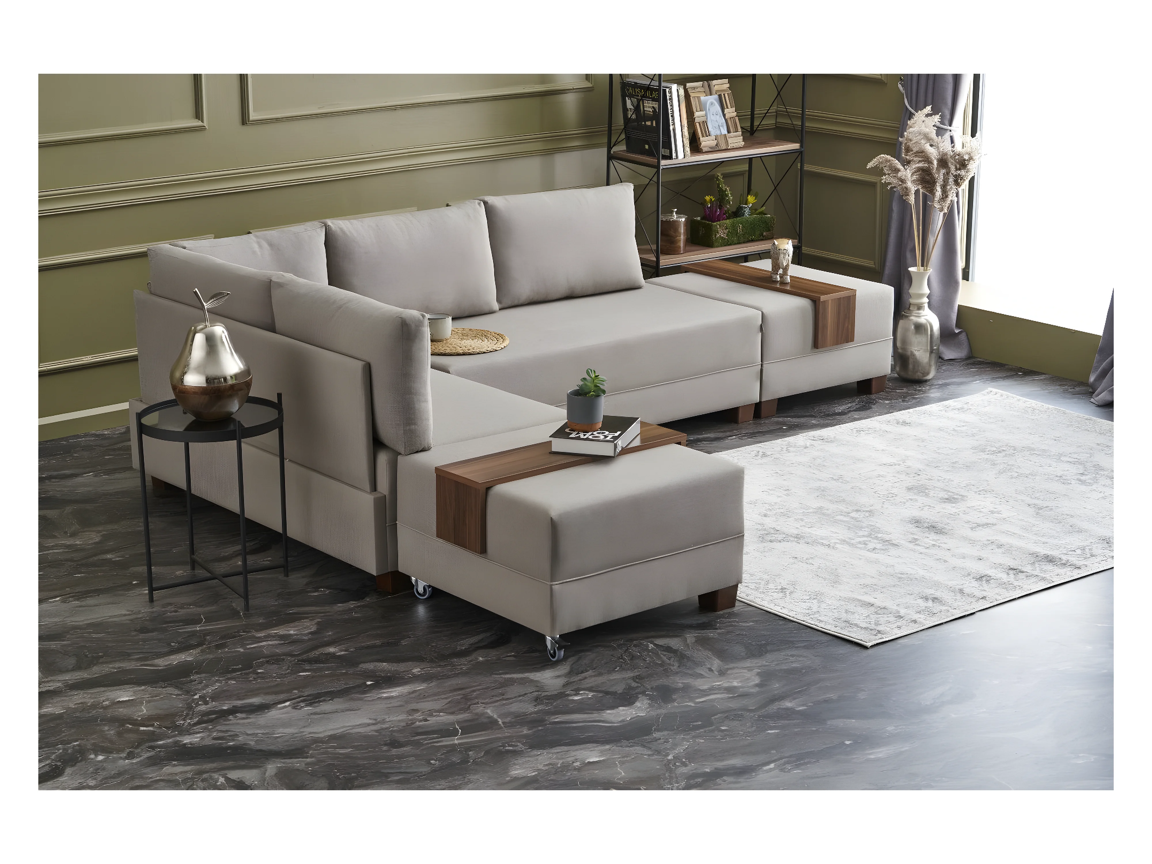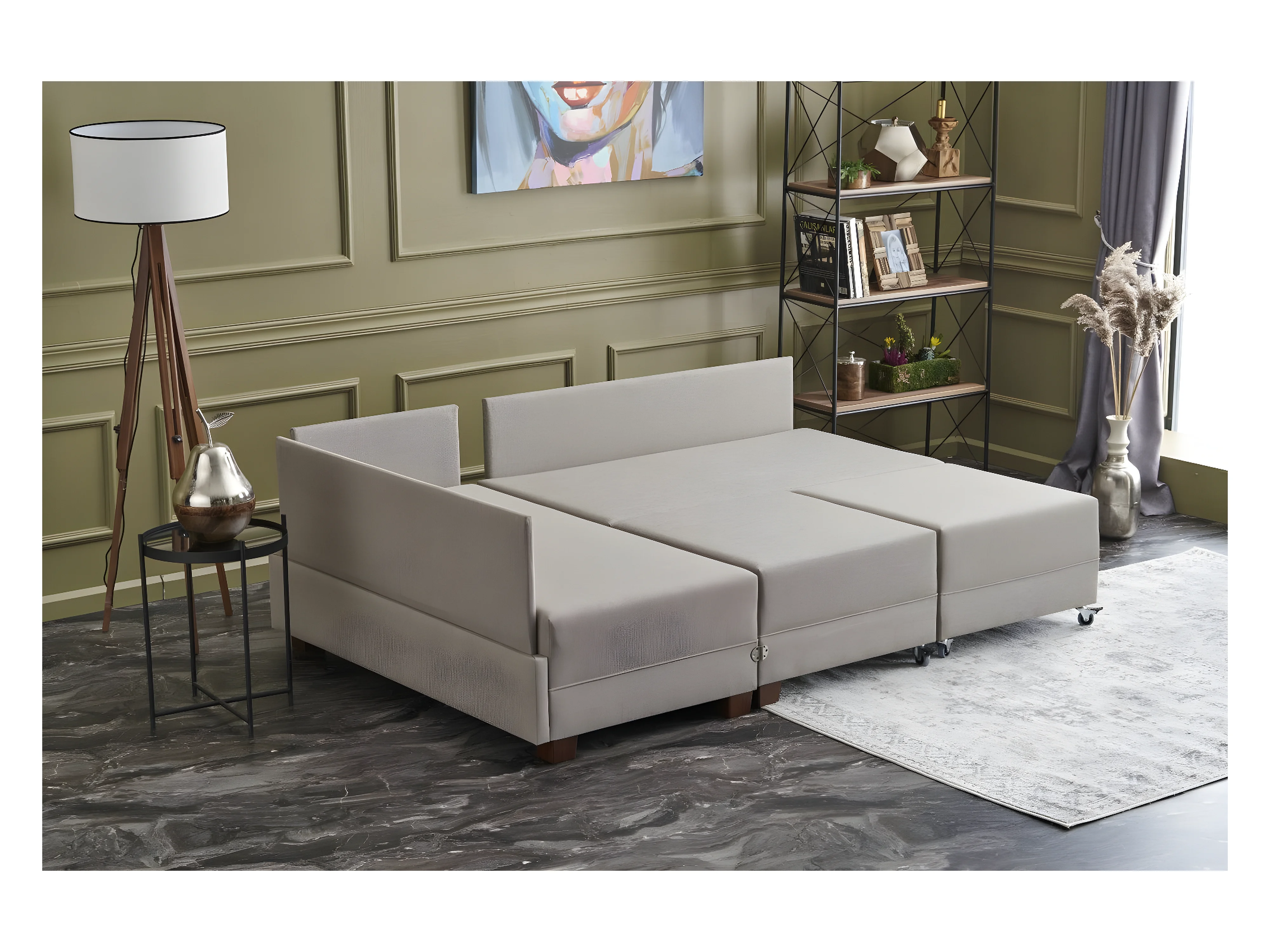 Canapé d'angle à gauche modulable Gialos Tissu Blanc crème