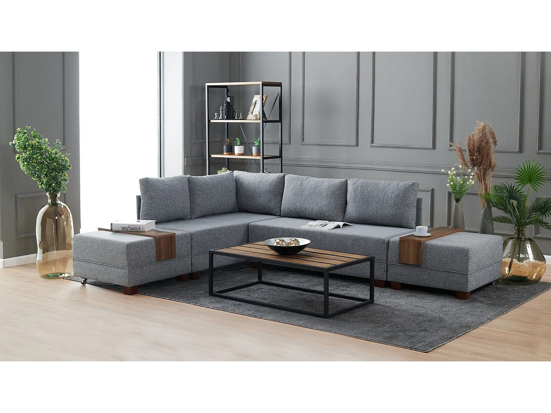Canapé d'angle à gauche modulable Gialos Tissu Gris