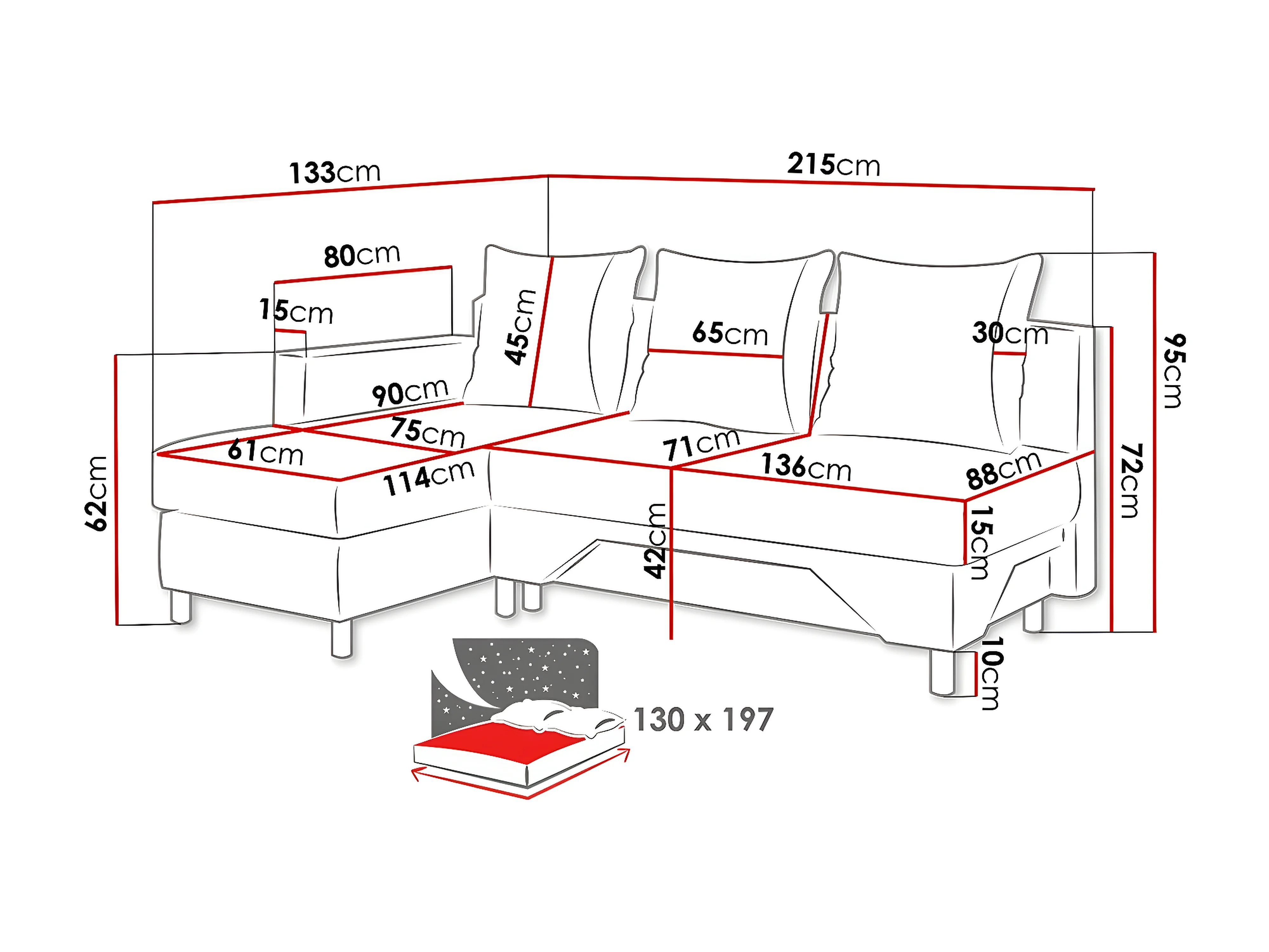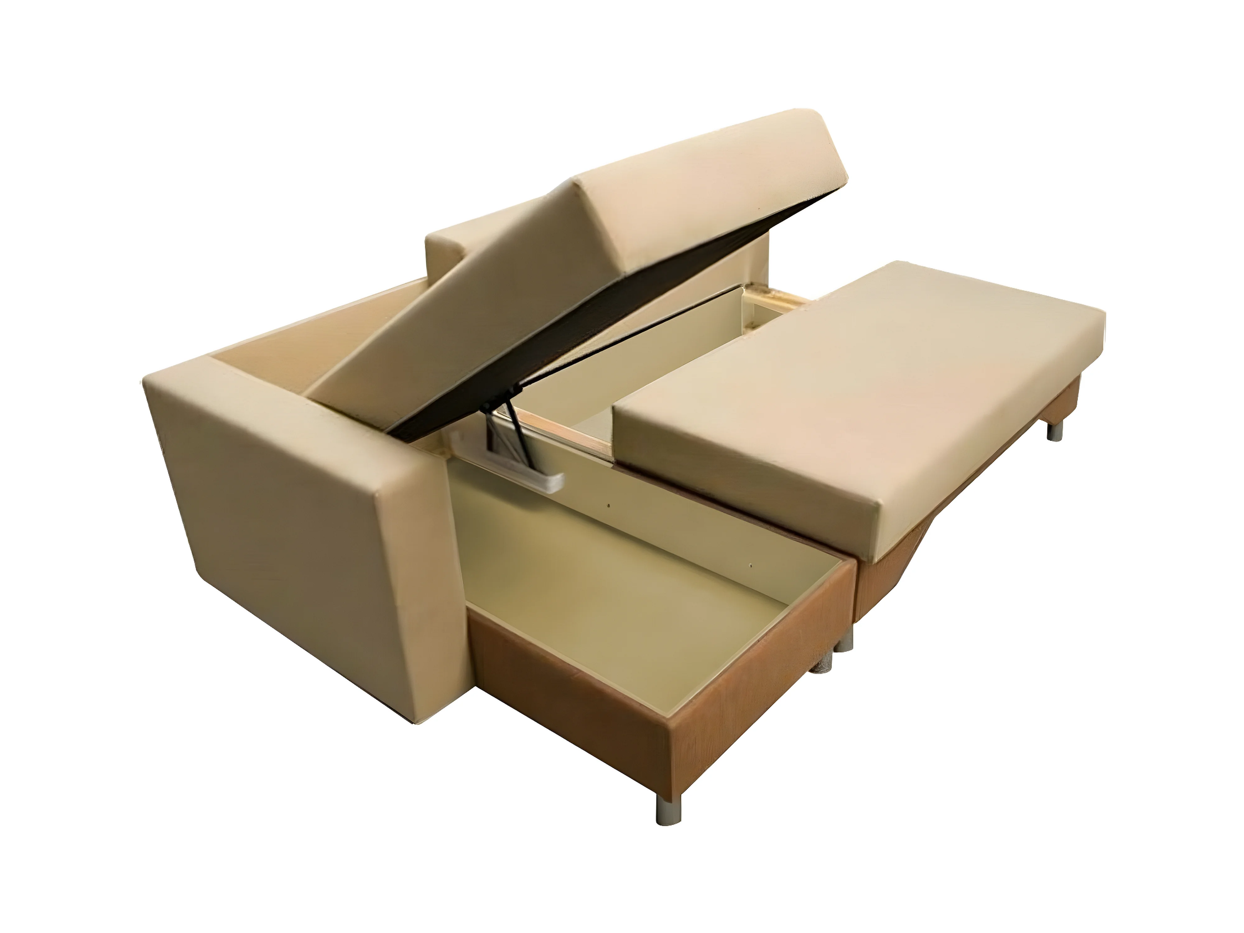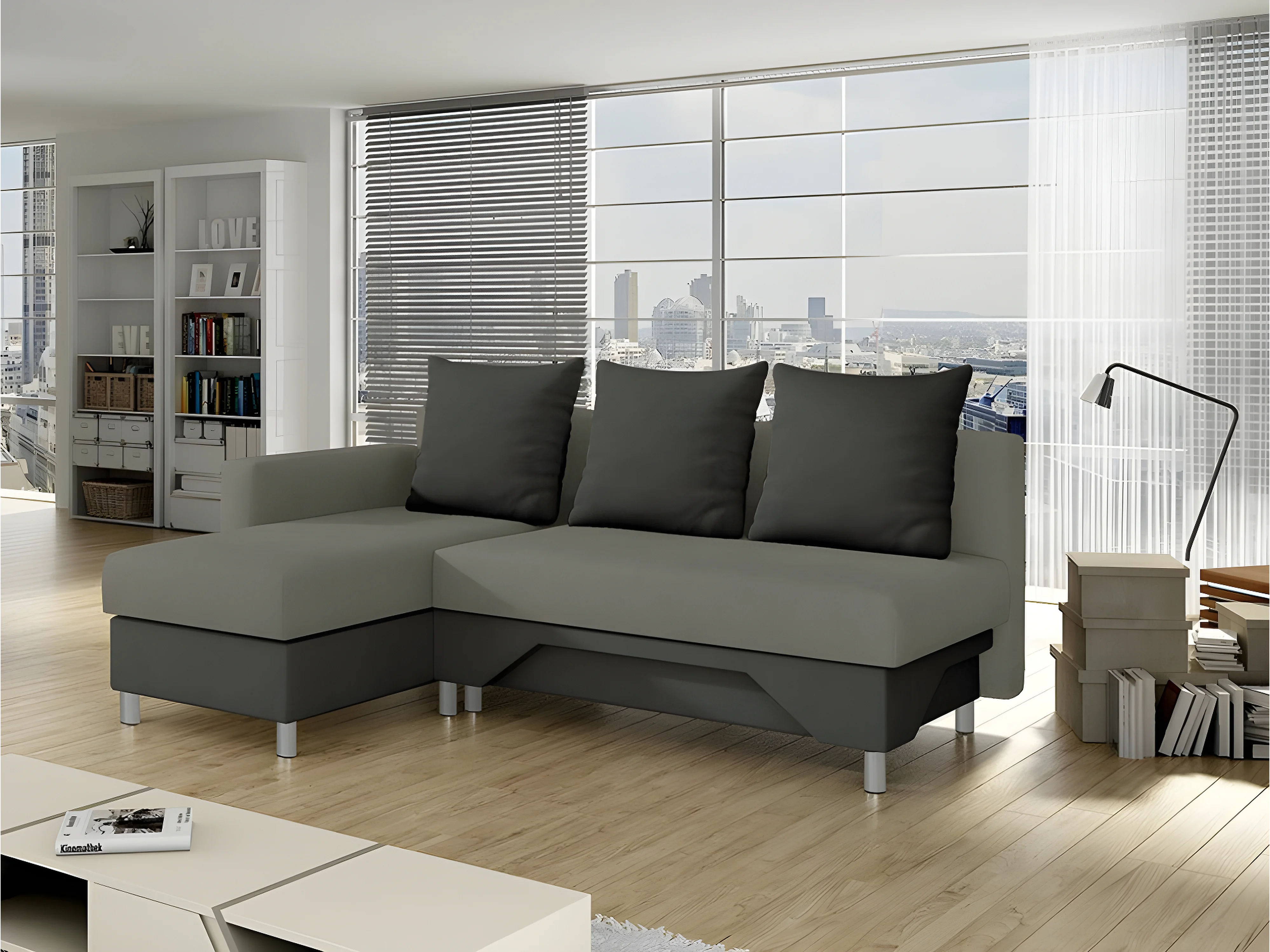 Canapé d'angle Akron 100, Gris, Fonction de couchage, Boîte de literie, 215x133x95cm