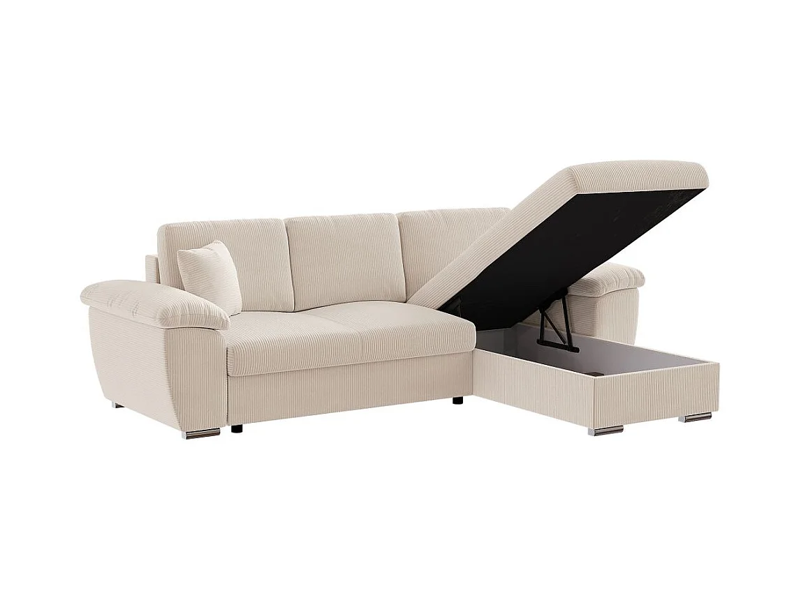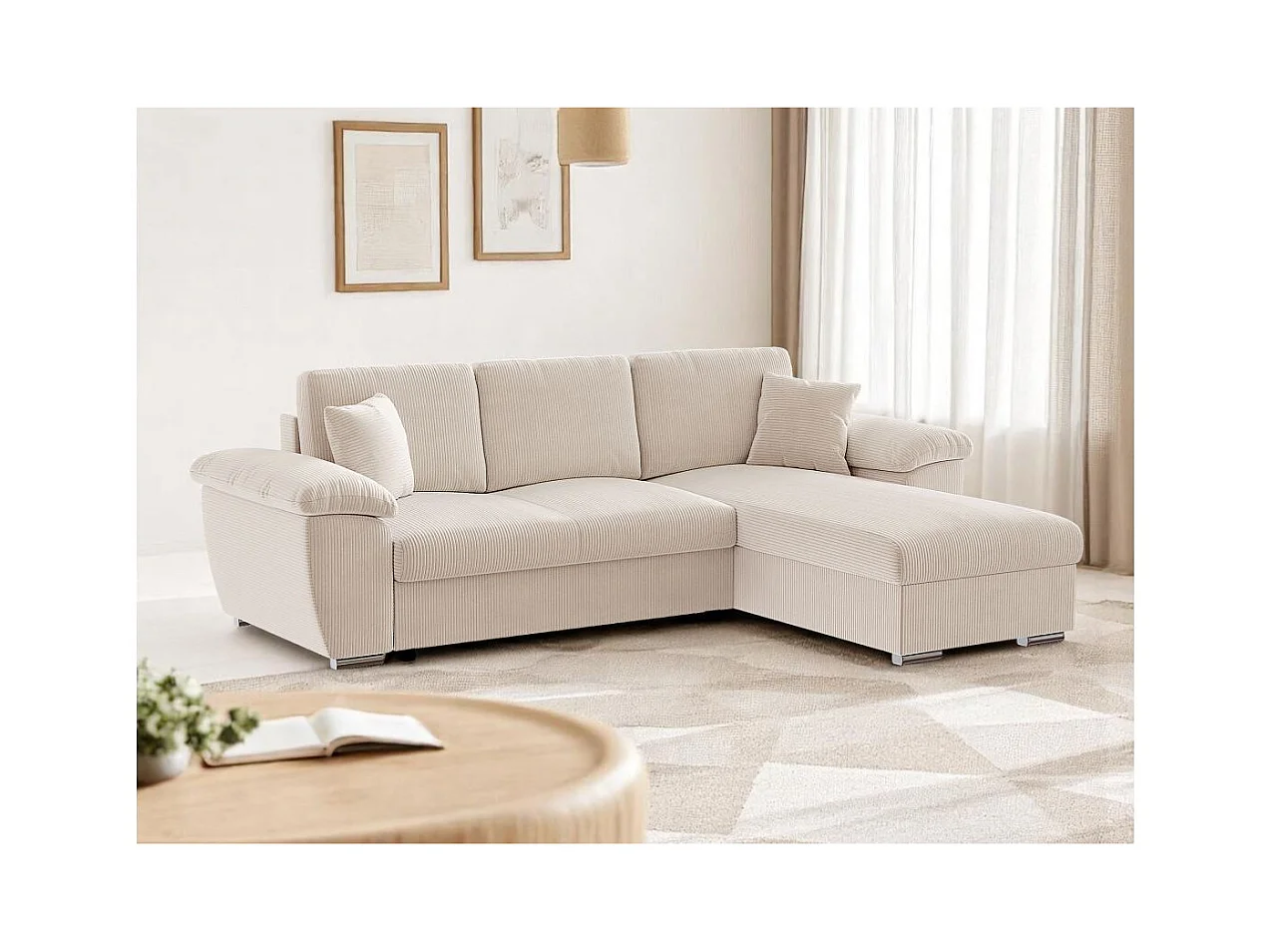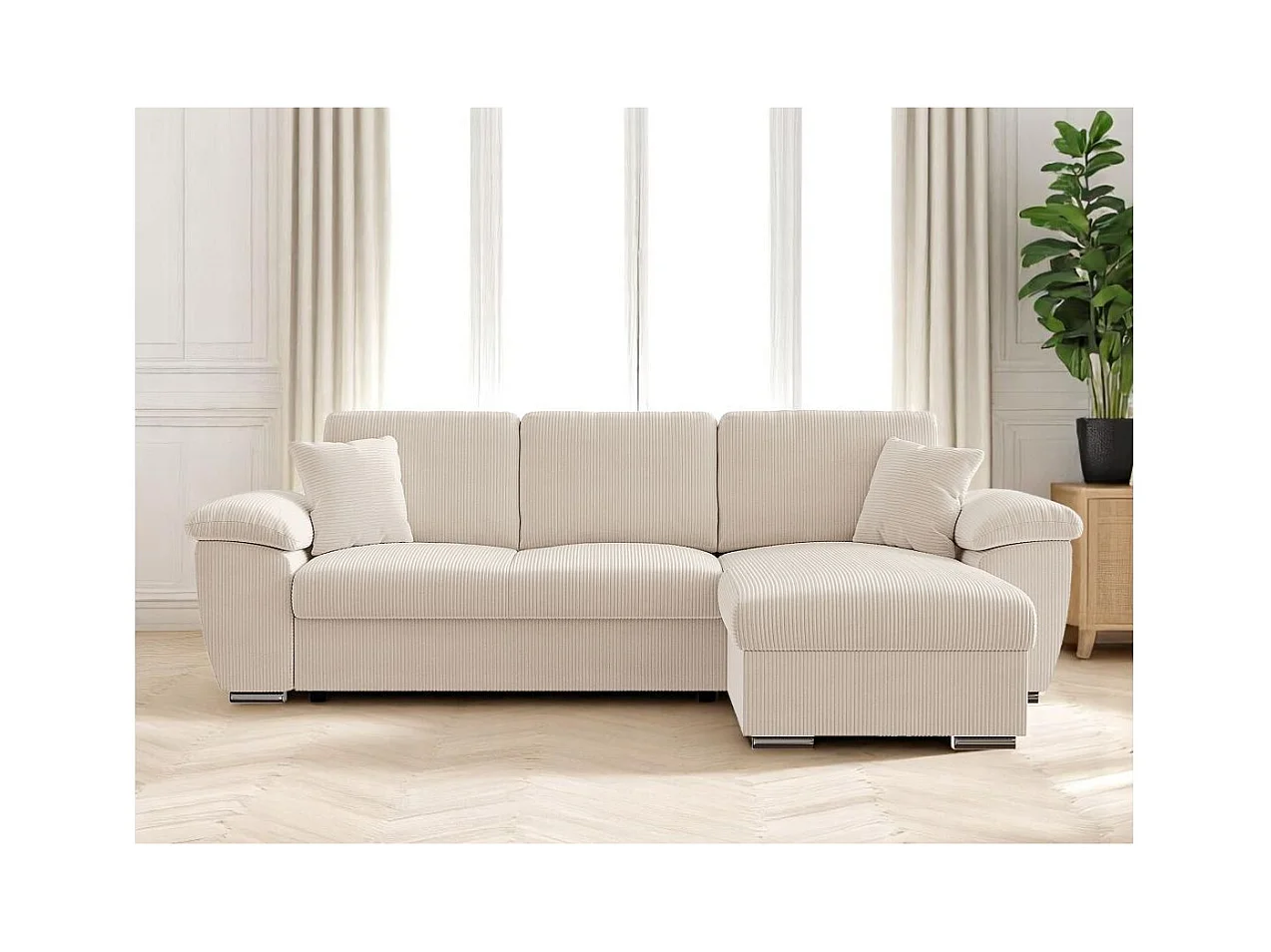 Canapé d'angle ALBERT réversible convertible 4 places avec coffre en velours côtelé - Beige