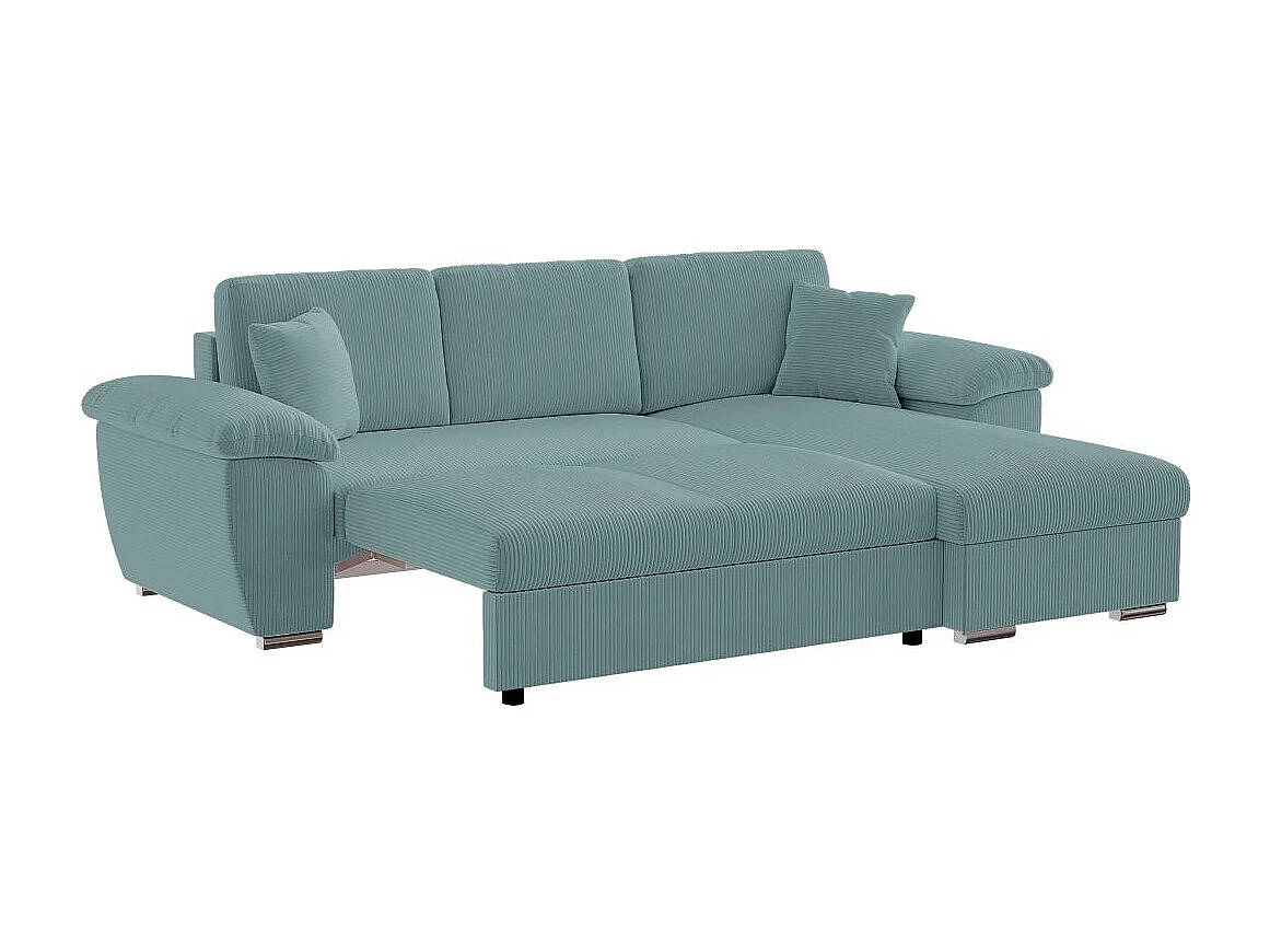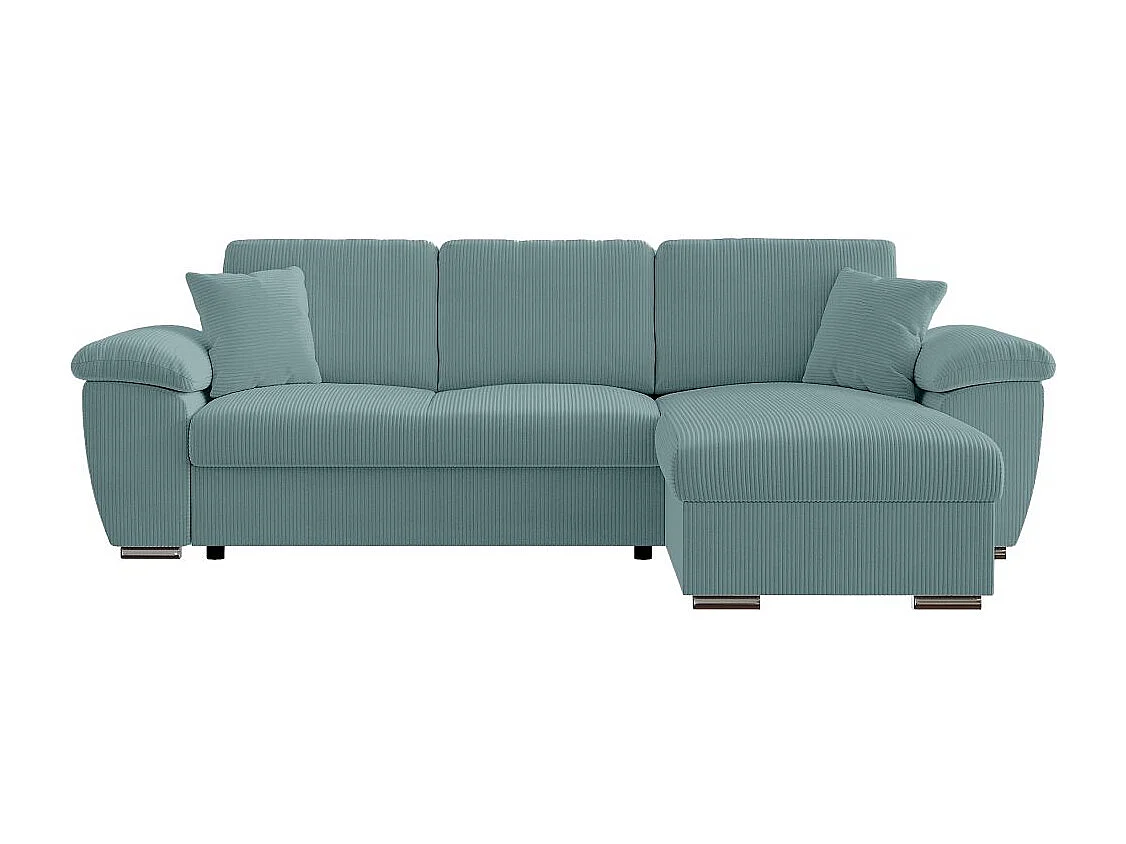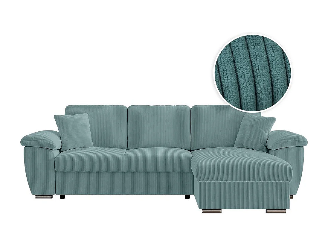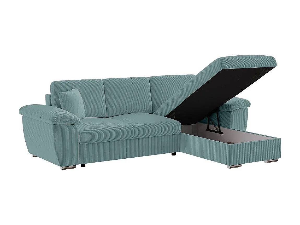 Canapé d'angle ALBERT réversible convertible 4 places avec coffre en velours côtelé - Bleu clair