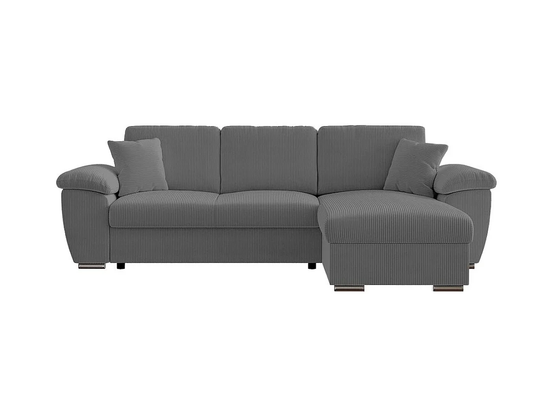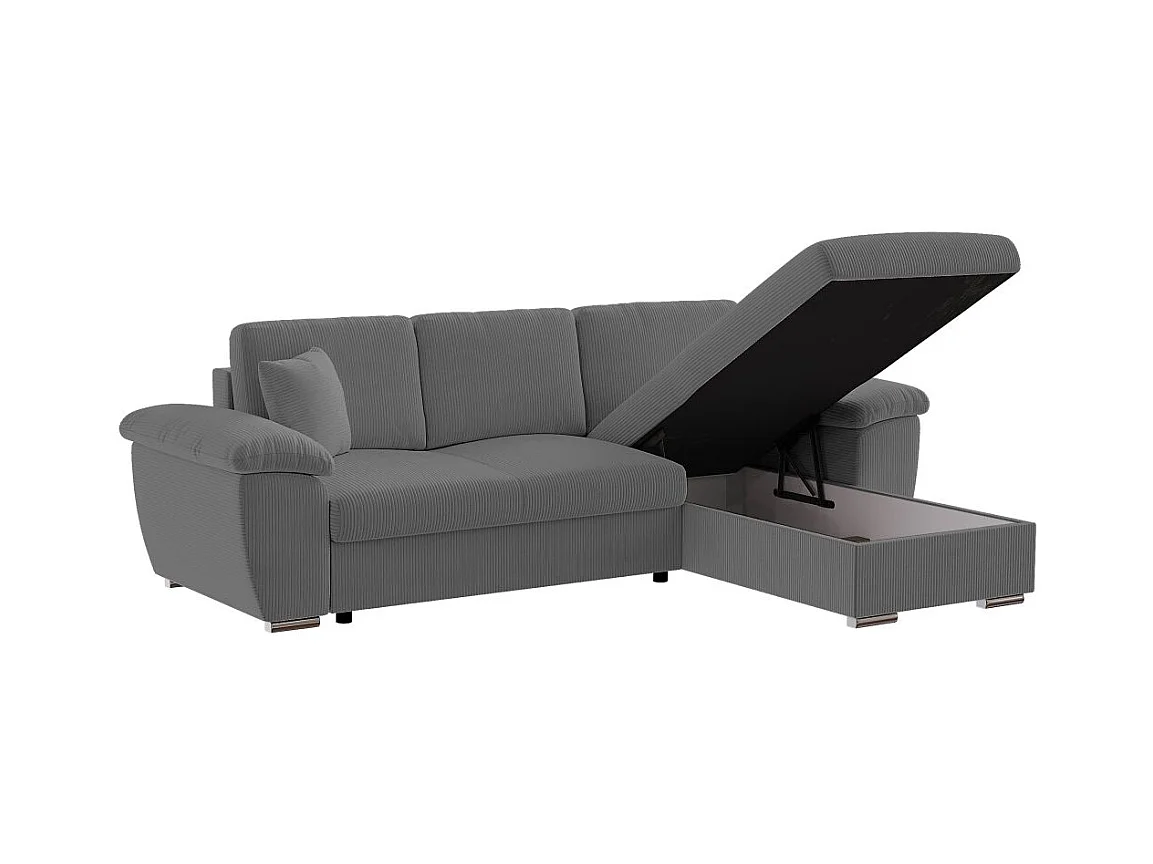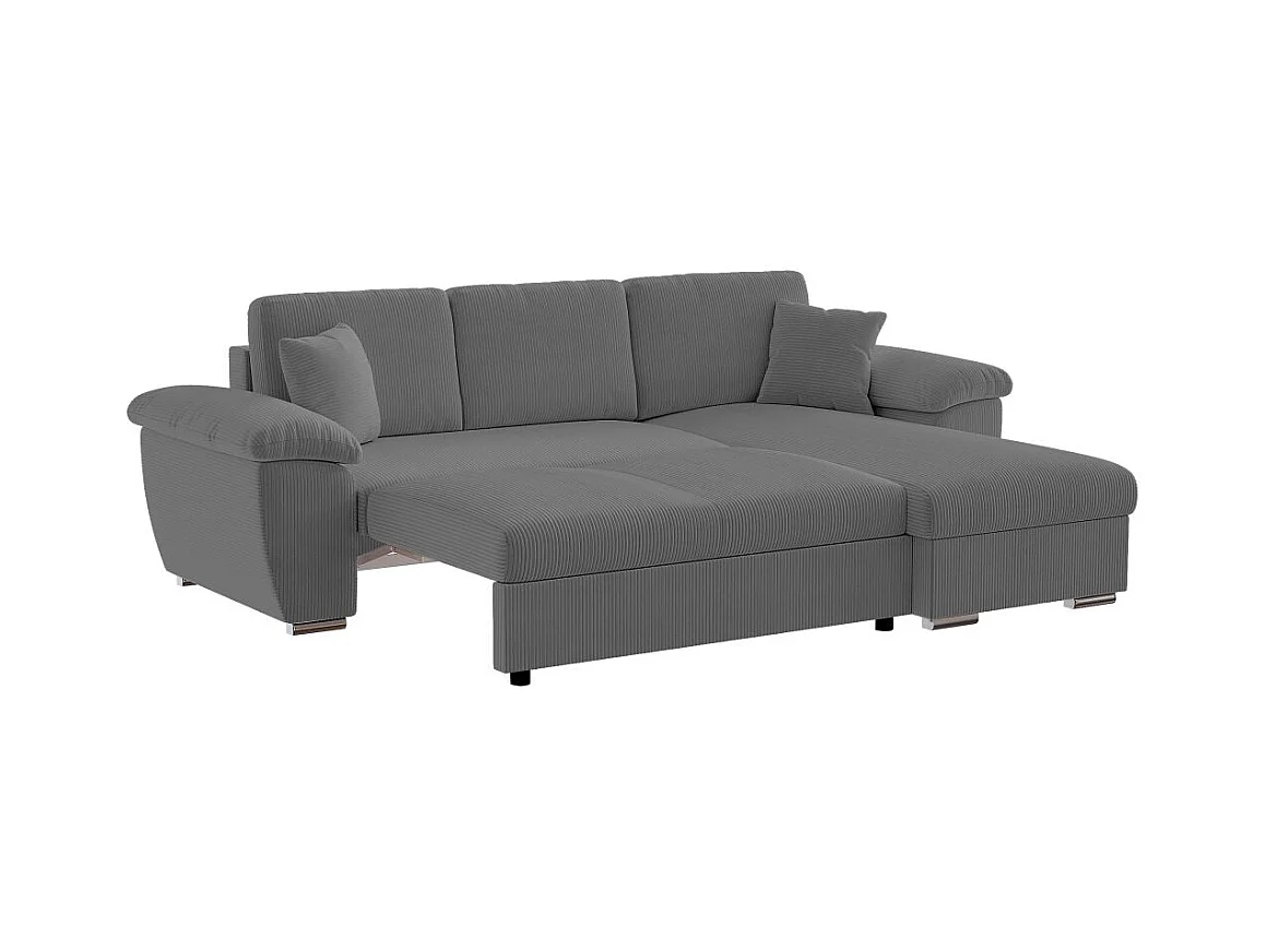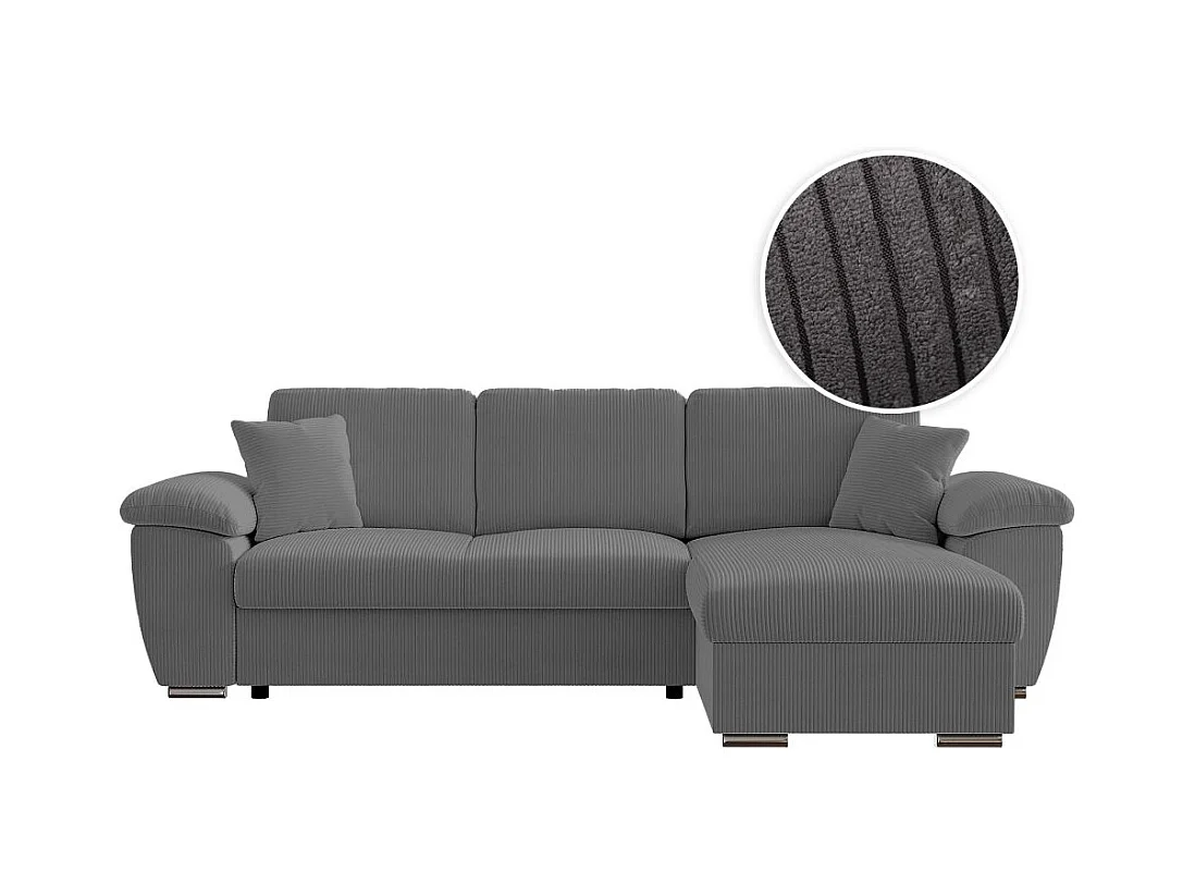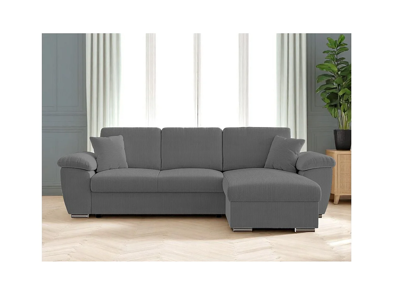 Canapé d'angle ALBERT réversible convertible 4 places avec coffre en velours côtelé - Gris anthracite