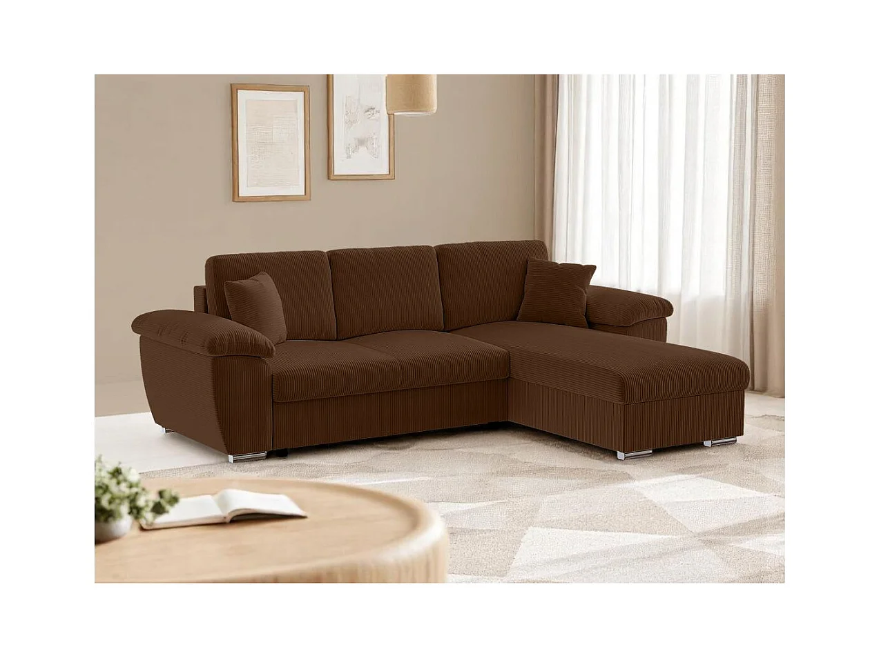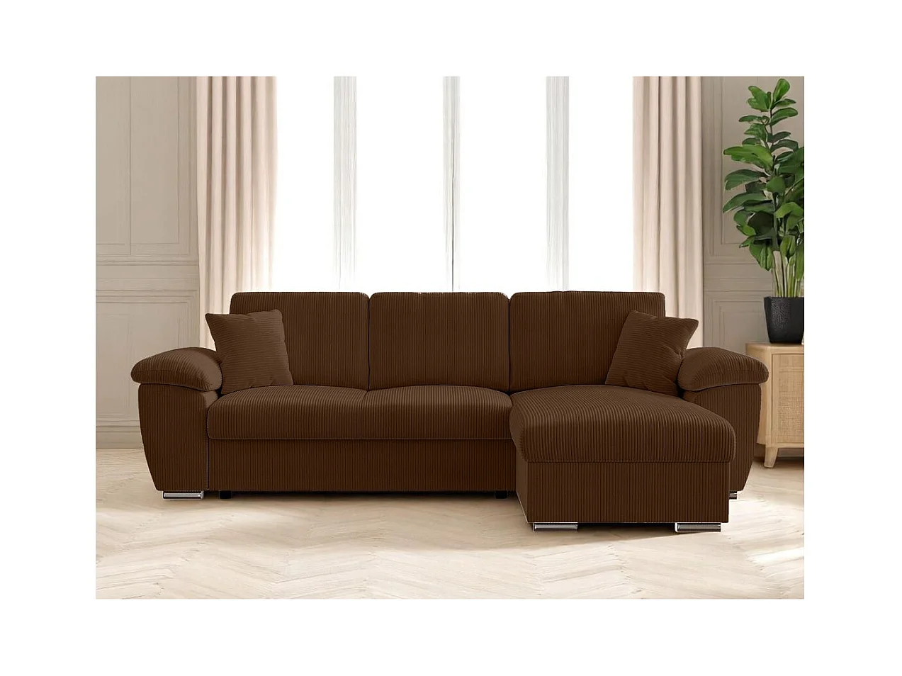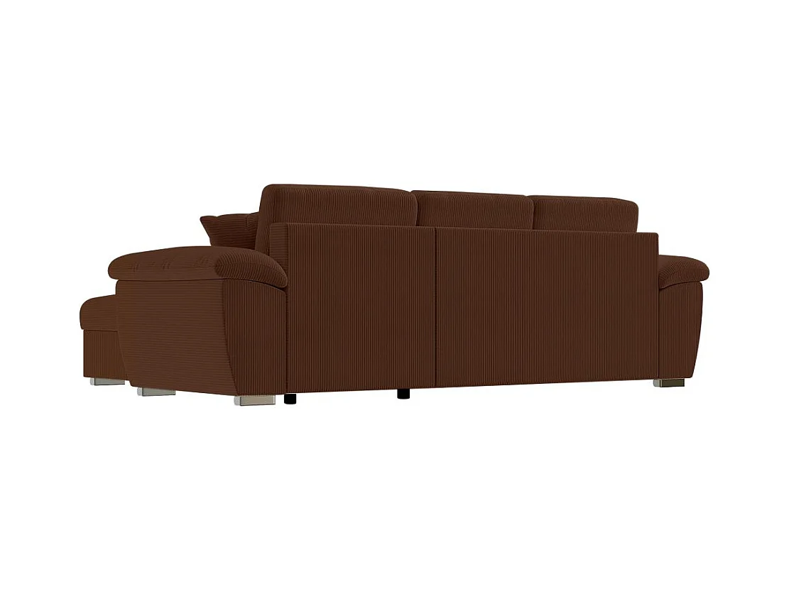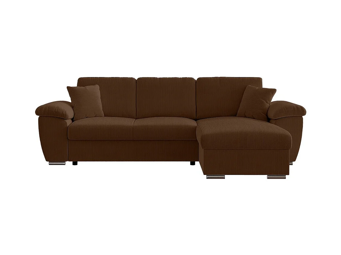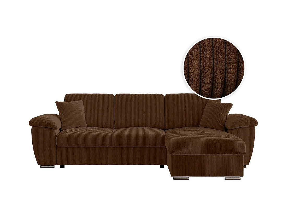 Canapé d'angle ALBERT réversible convertible 4 places avec coffre en velours côtelé - Marron