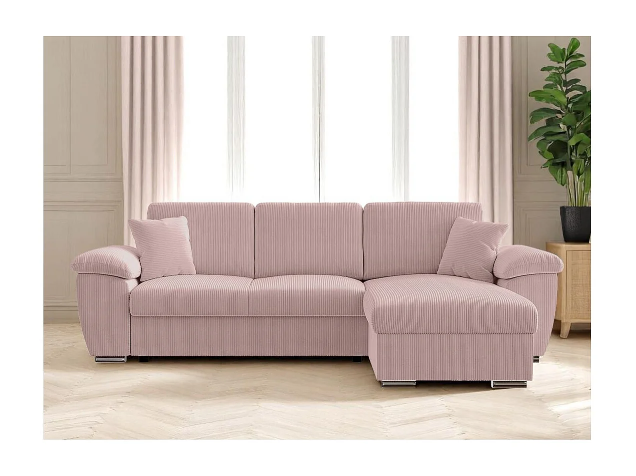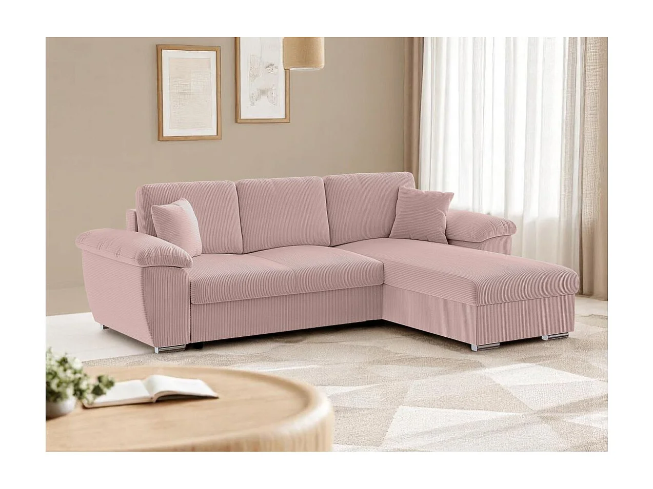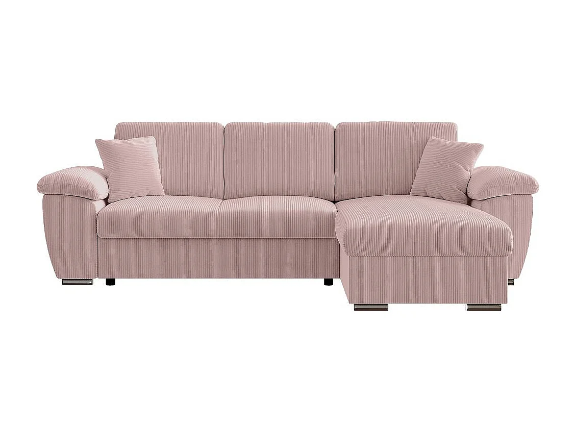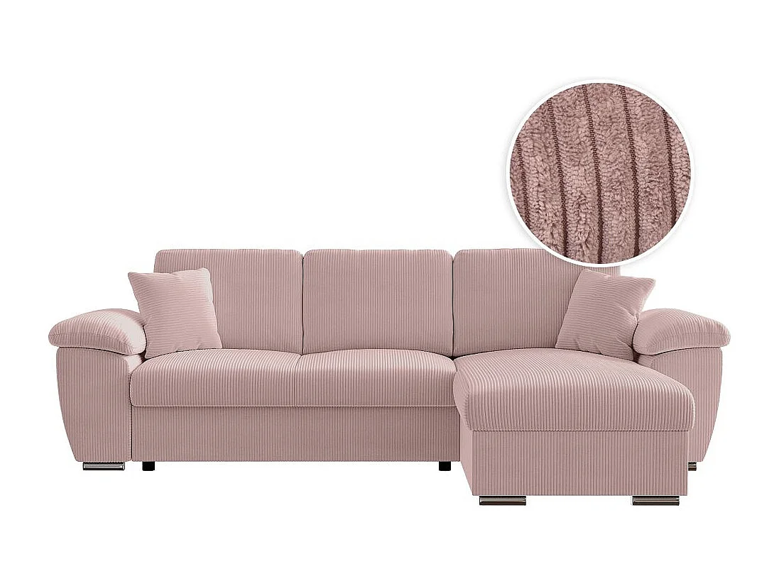 Canapé d'angle ALBERT réversible convertible 4 places avec coffre en velours côtelé - Rose