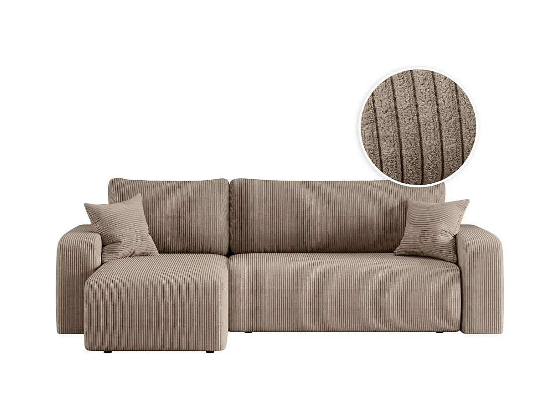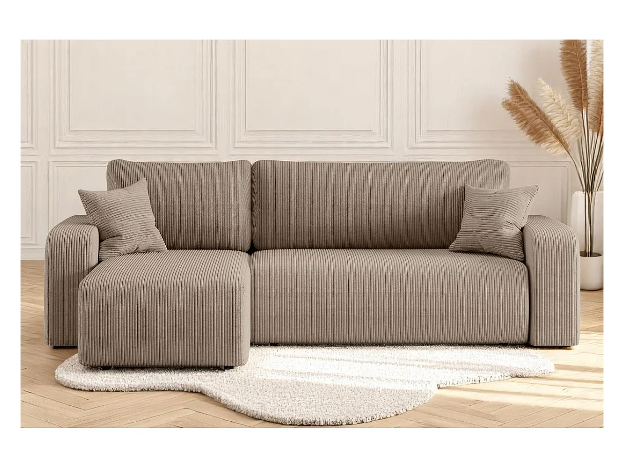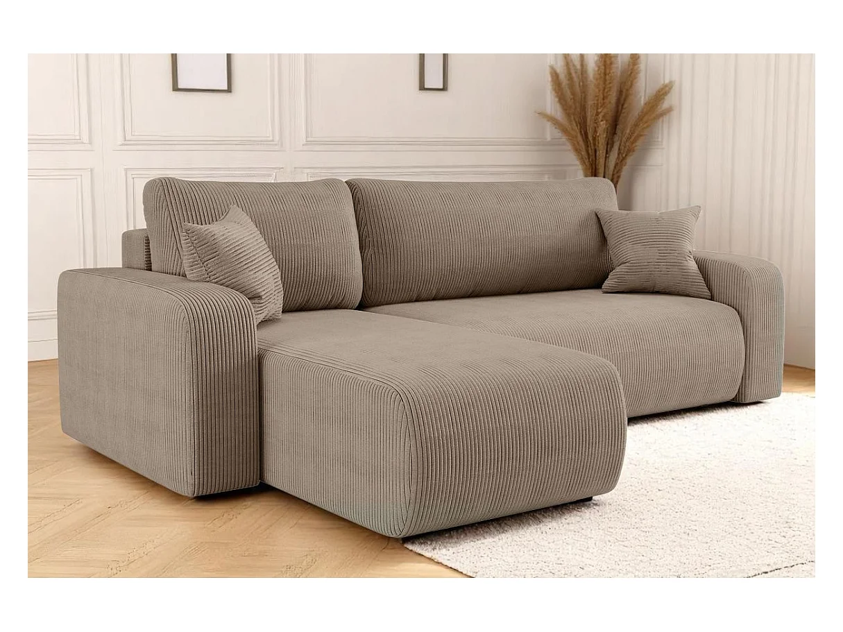 Canapé d'angle ALYA convertible et réversible 4 places en velours cotelé - Taupe