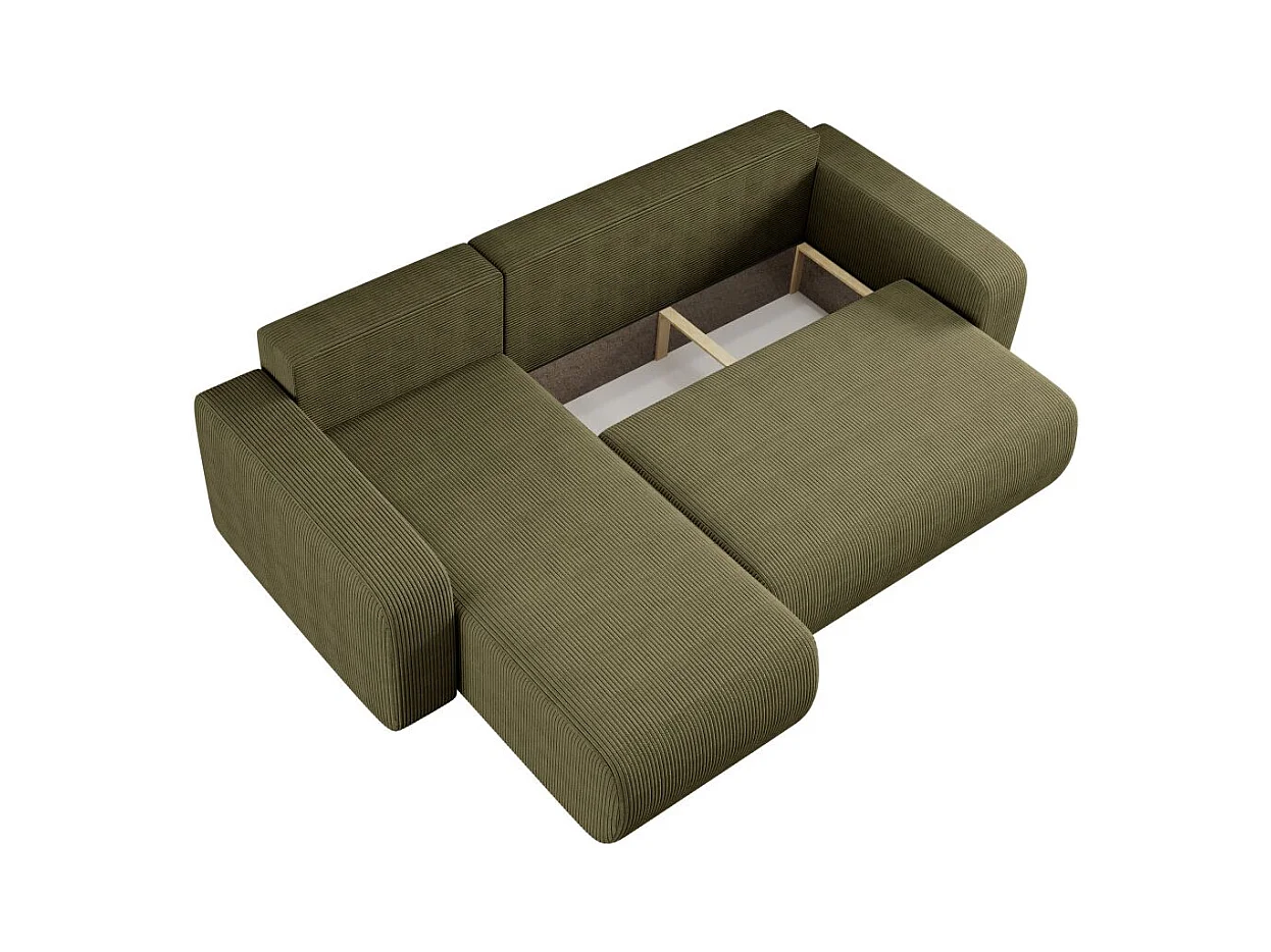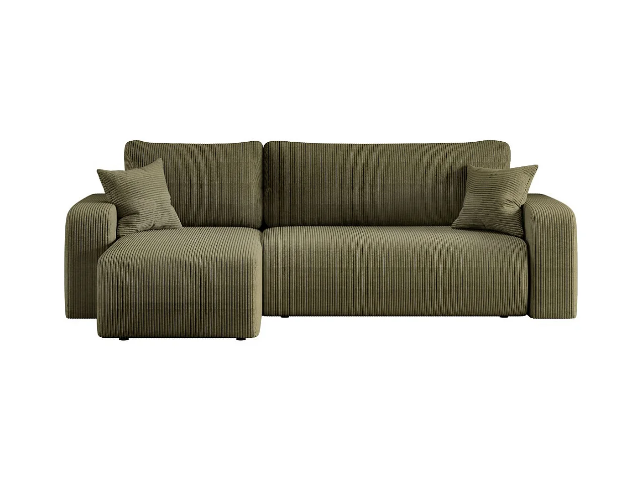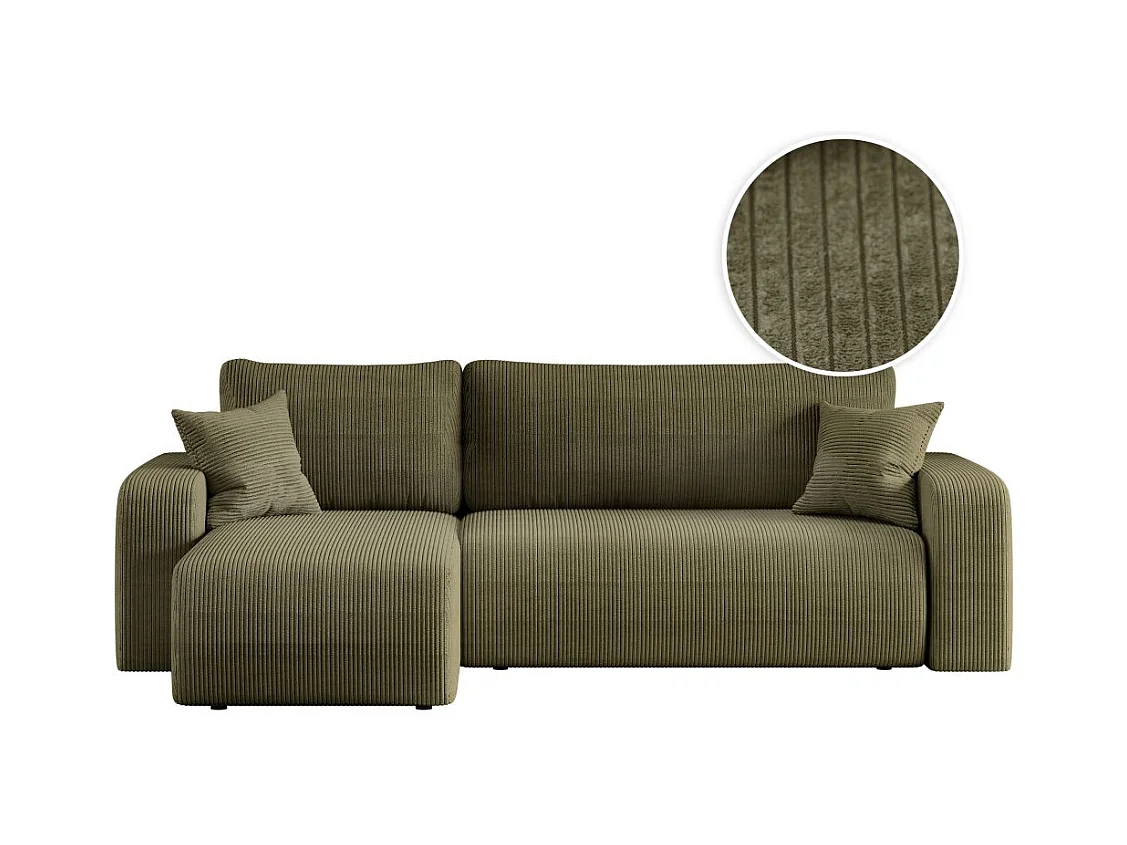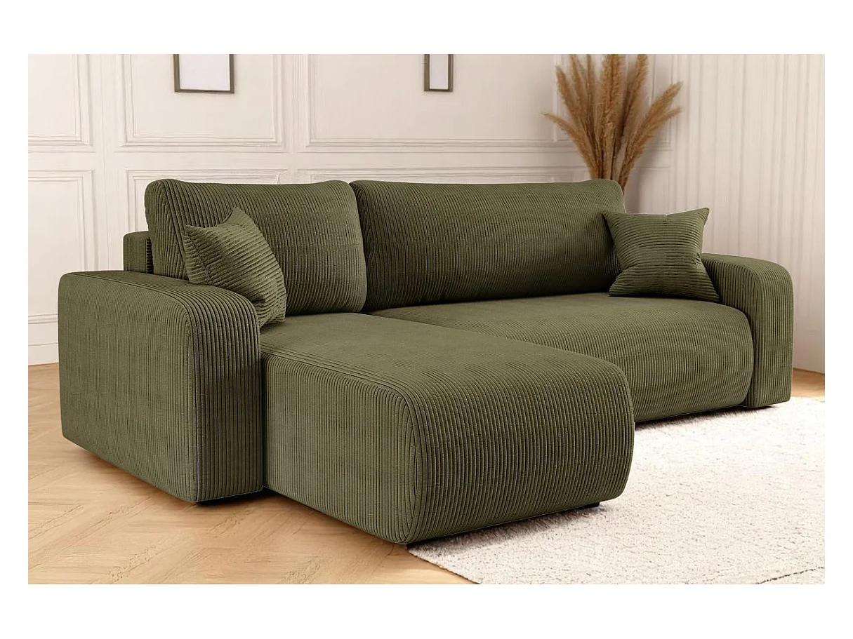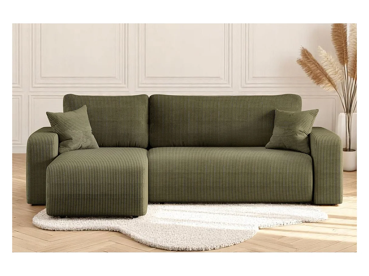 Canapé d'angle ALYA convertible et réversible 4 places en velours cotelé - Vert kaki