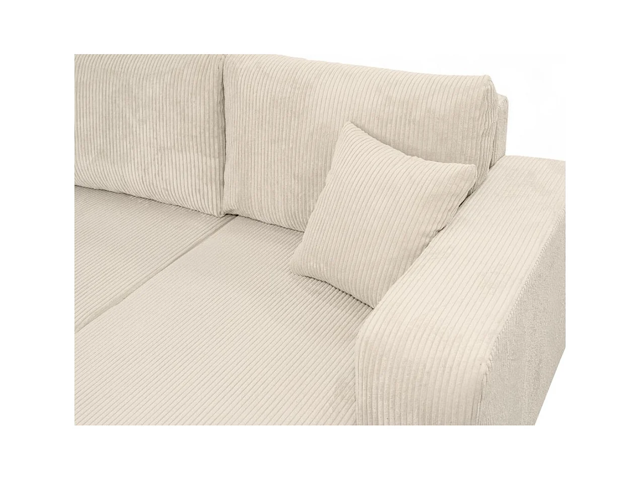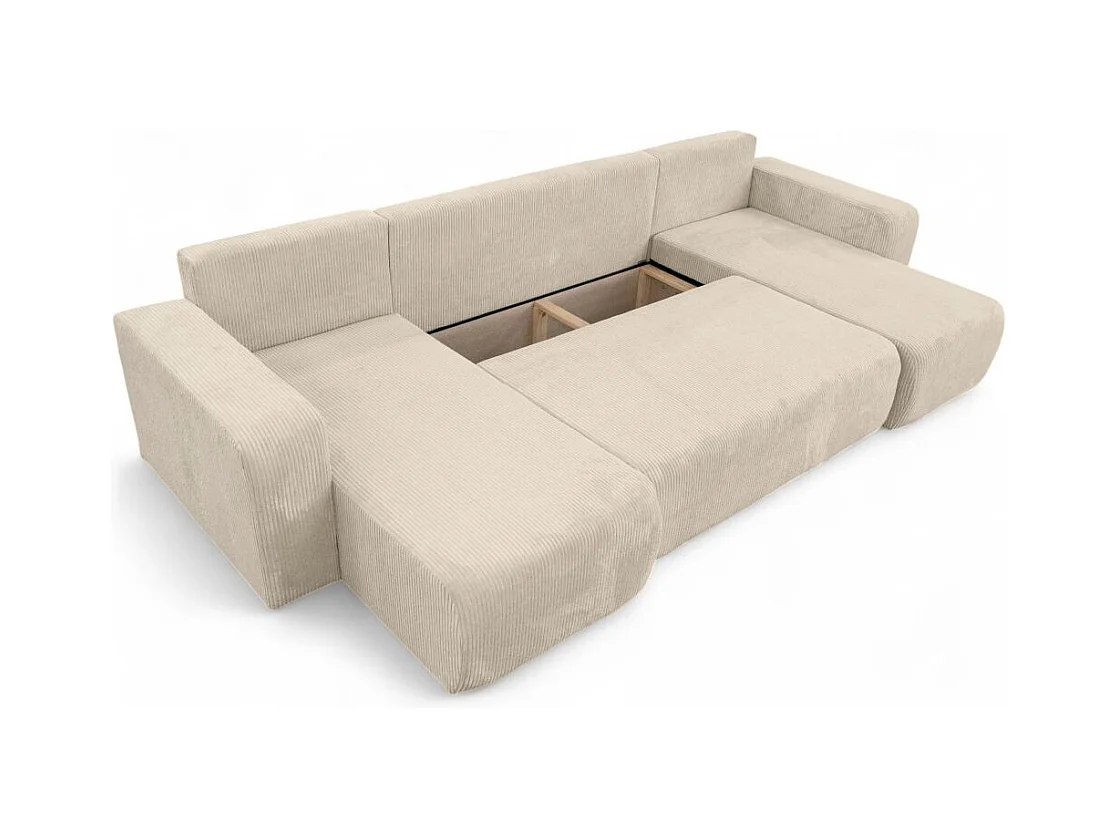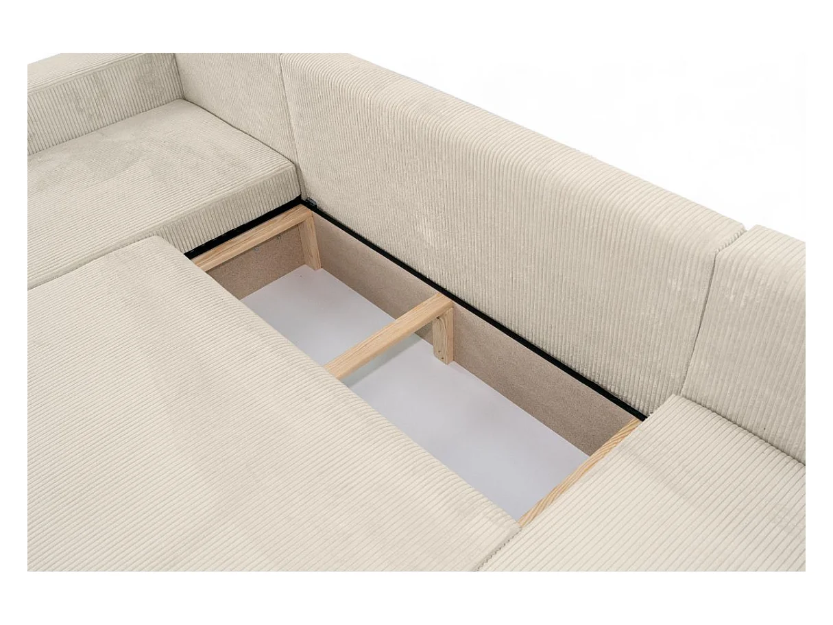 Canapé d'angle ALYA panoramique convertible 6 places en velours cotelé - Beige