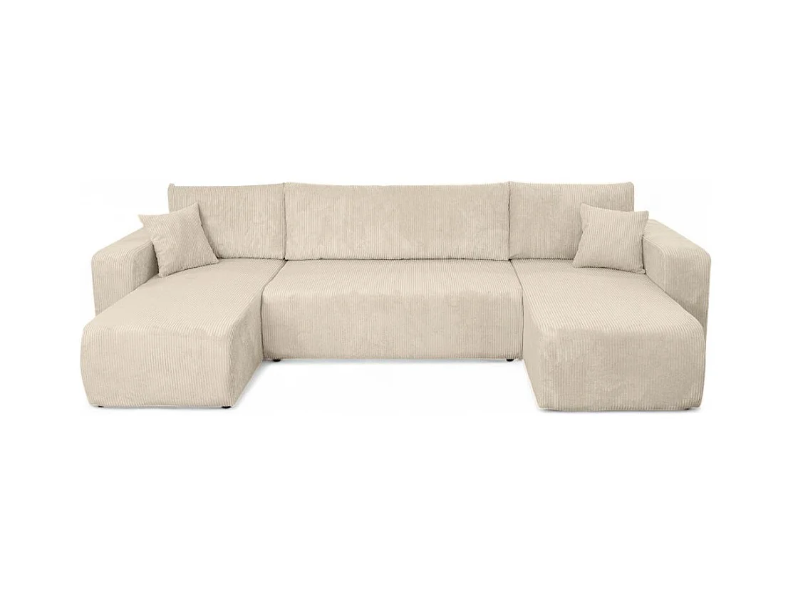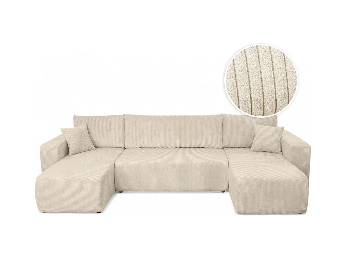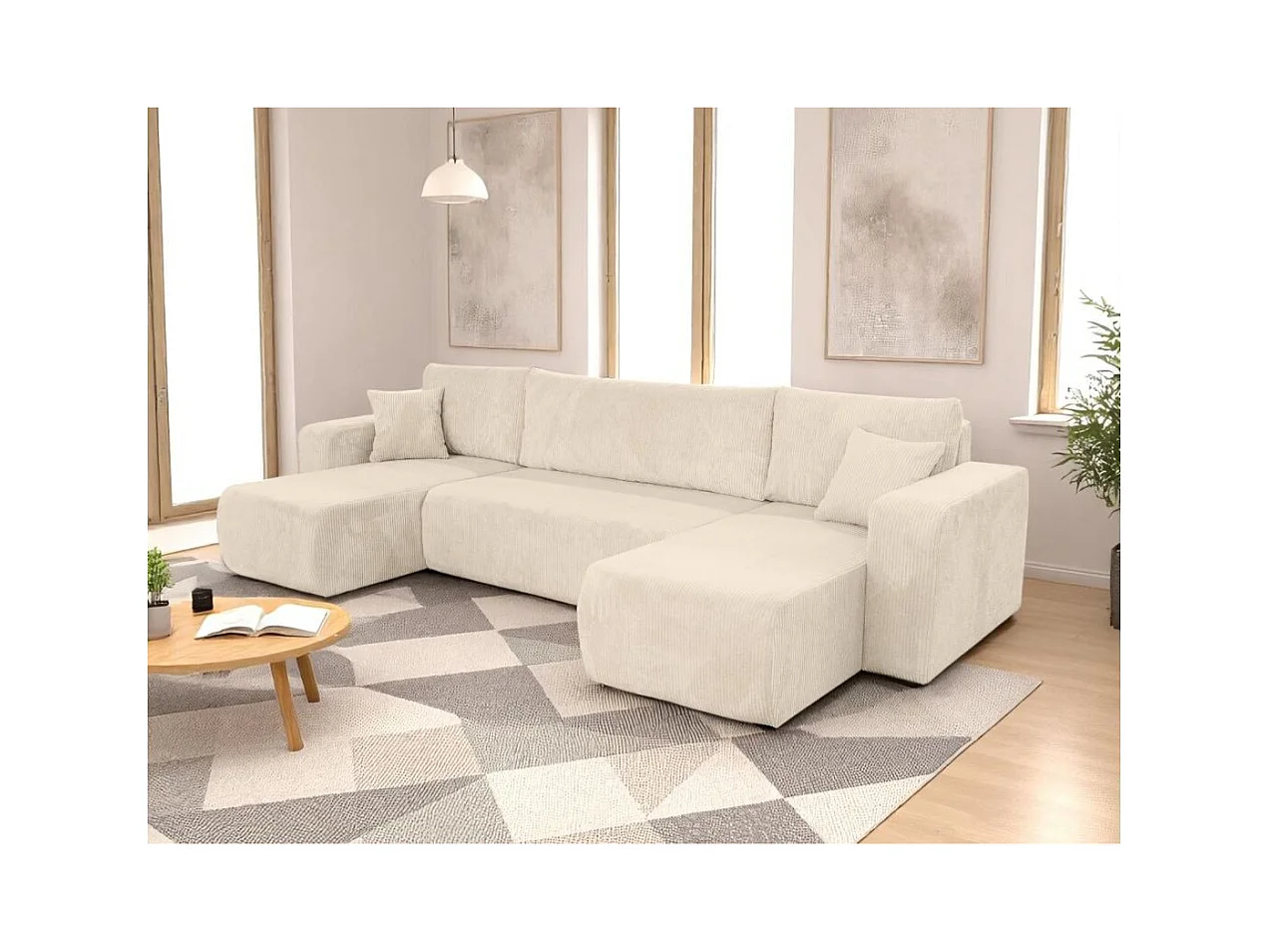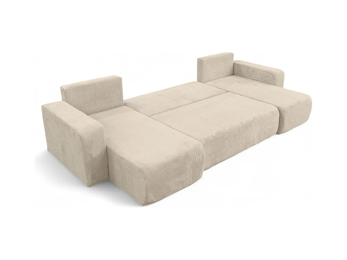 Canapé d'angle ALYA panoramique convertible 6 places en velours cotelé - Beige