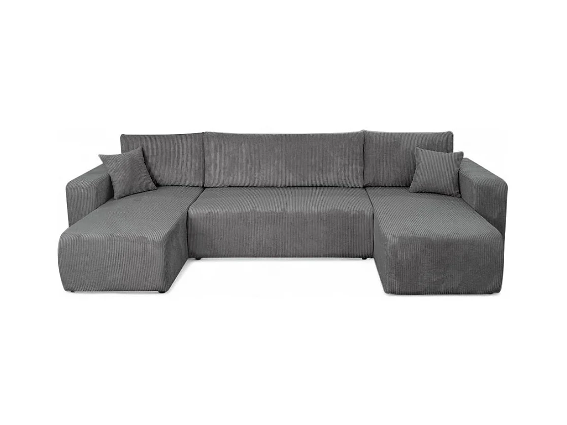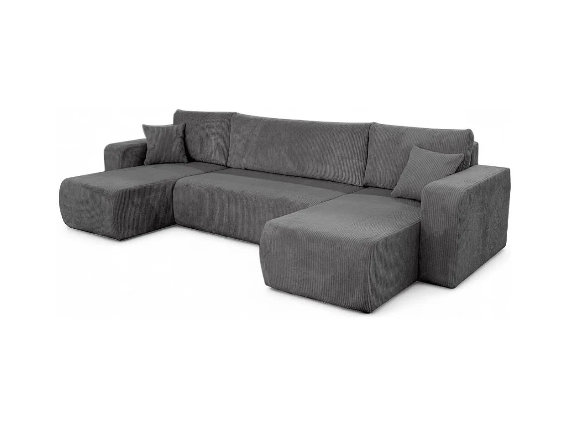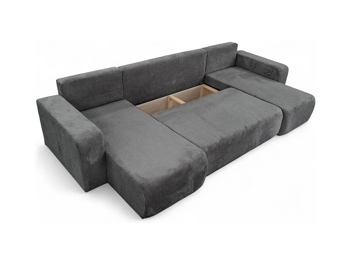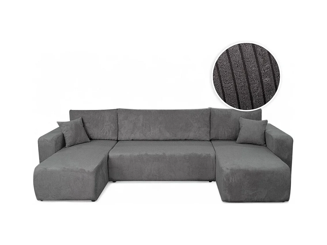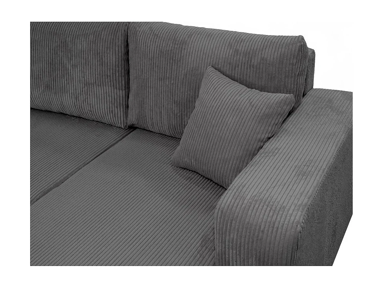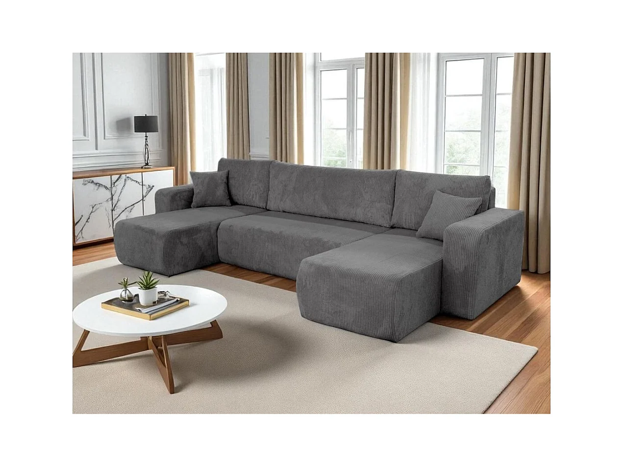 Canapé d'angle ALYA panoramique convertible 6 places en velours cotelé - Gris