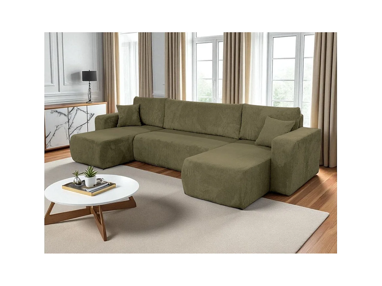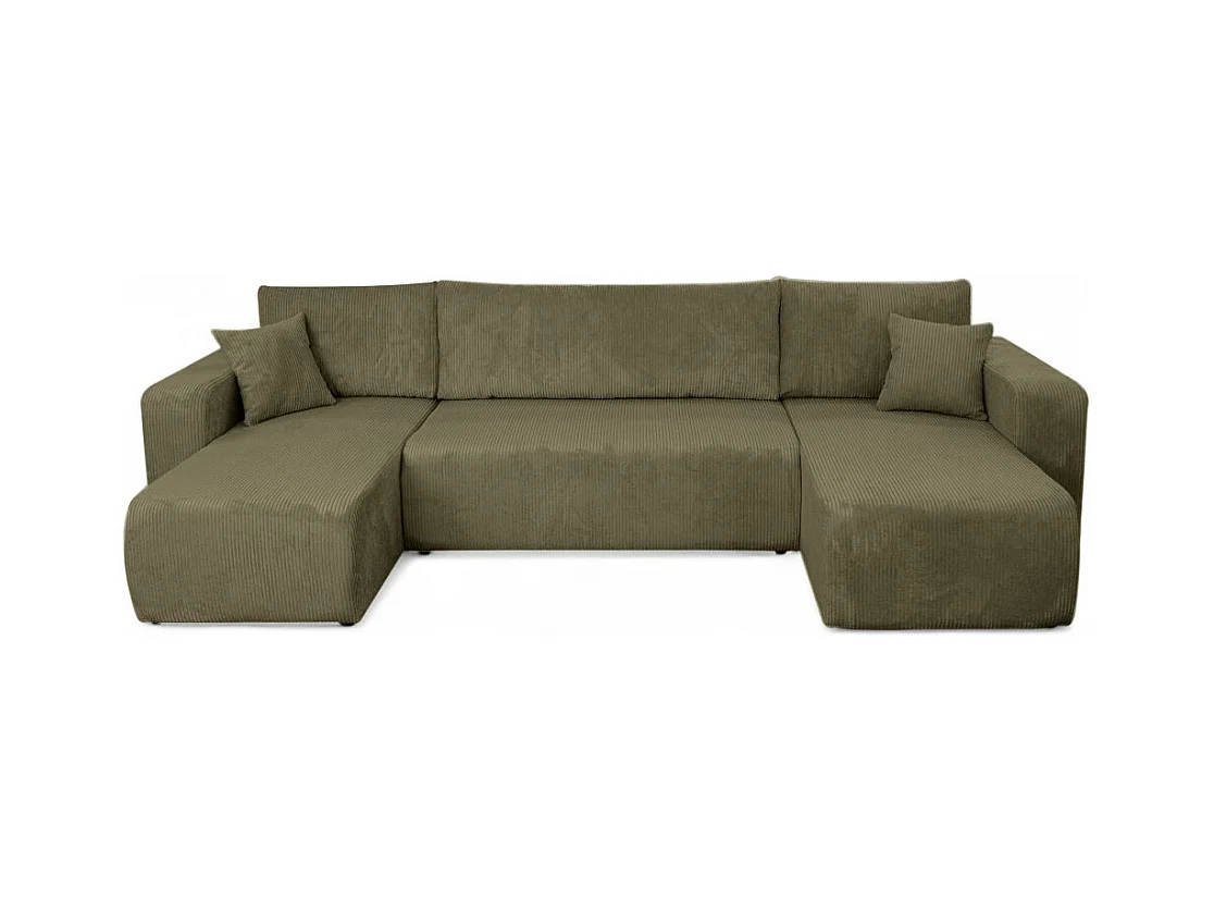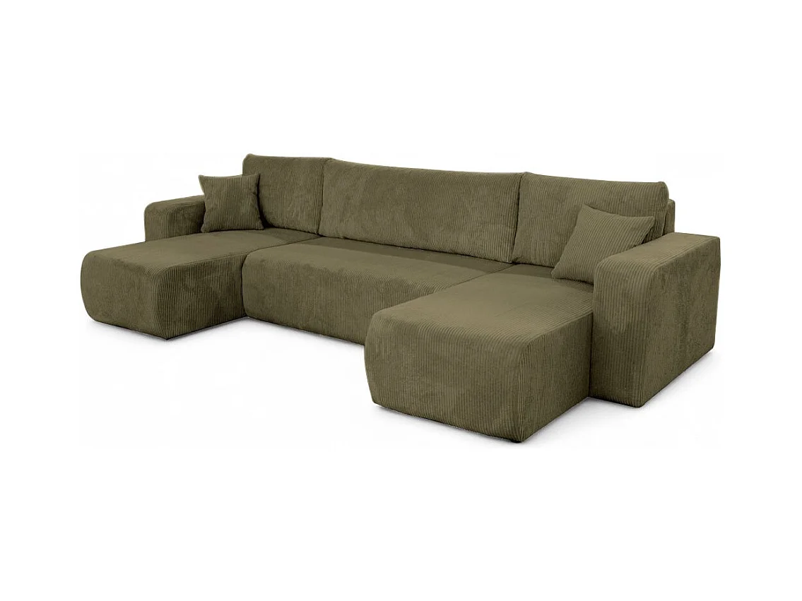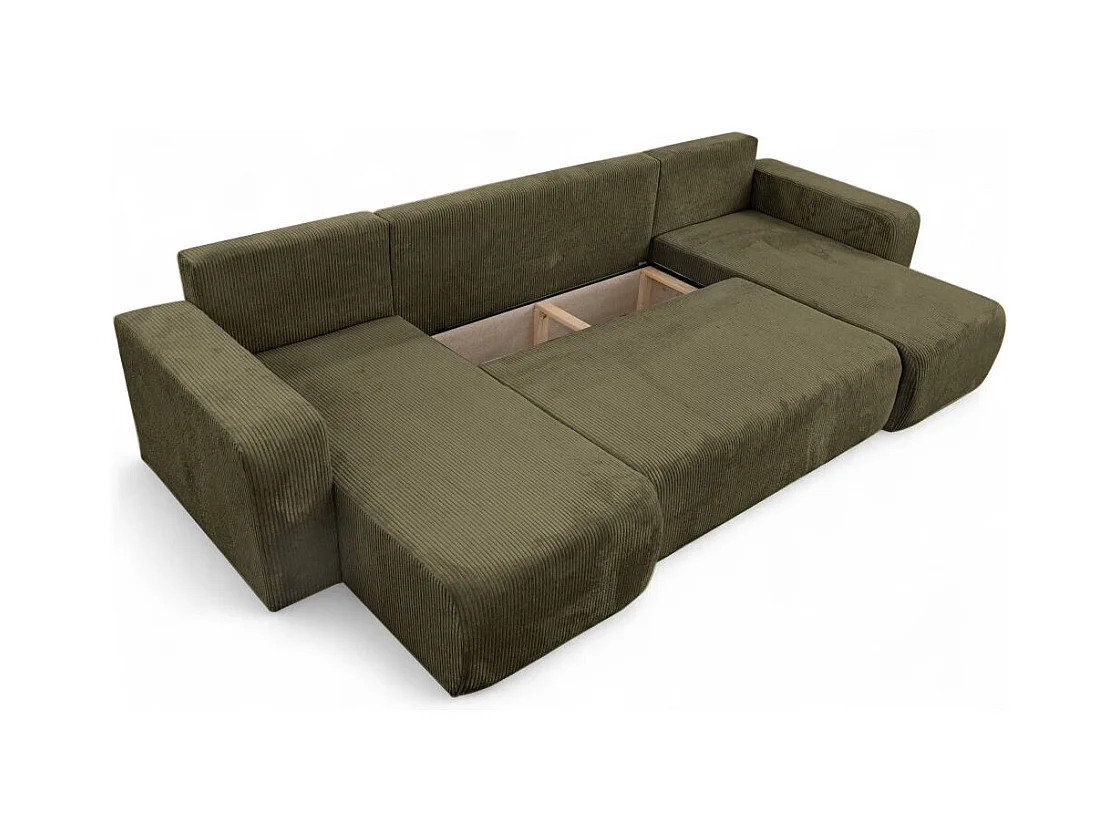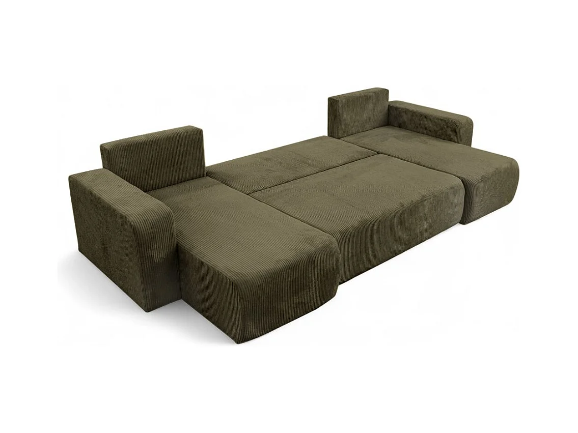 Canapé d'angle ALYA panoramique convertible 6 places en velours cotelé - Vert