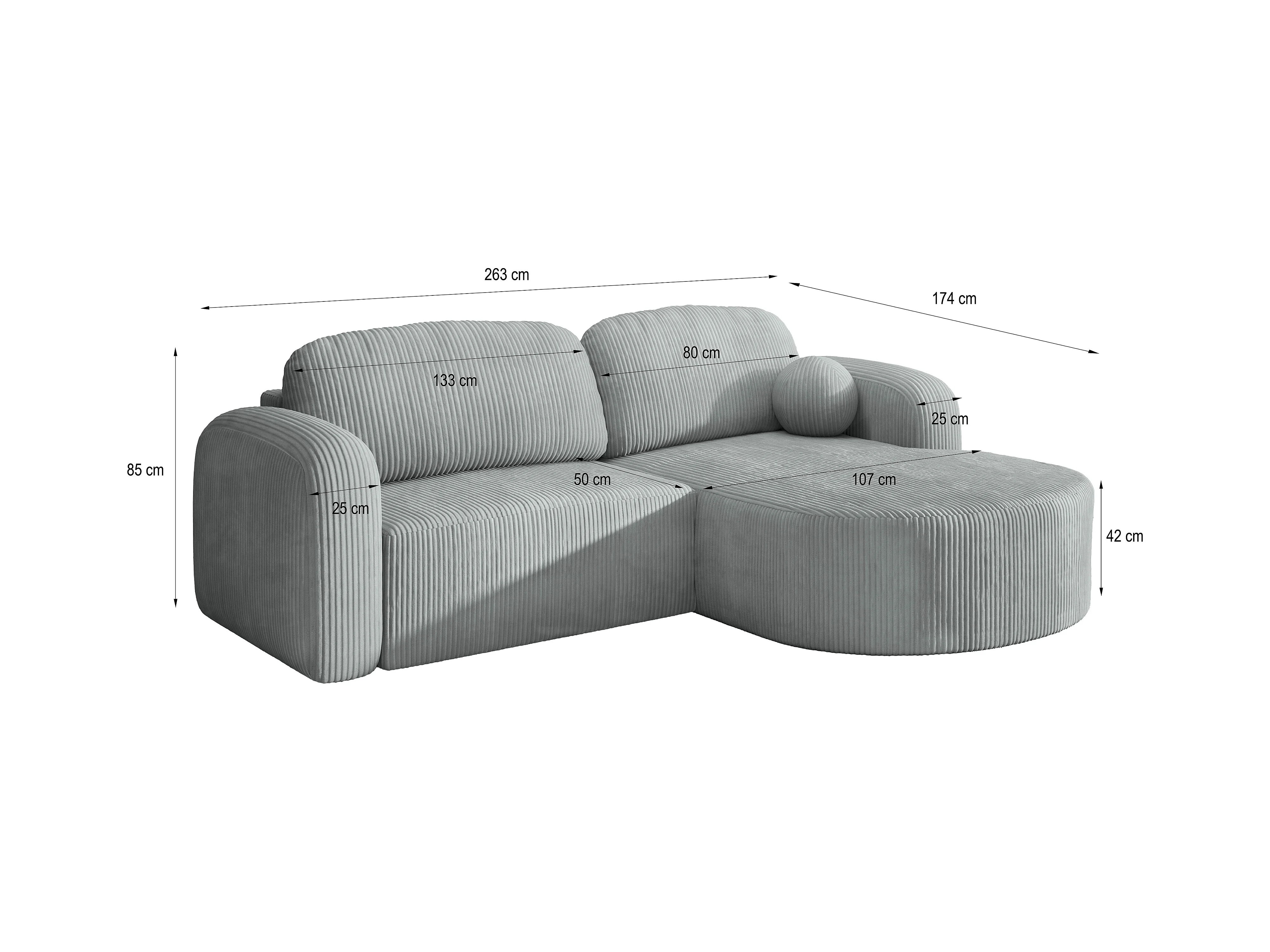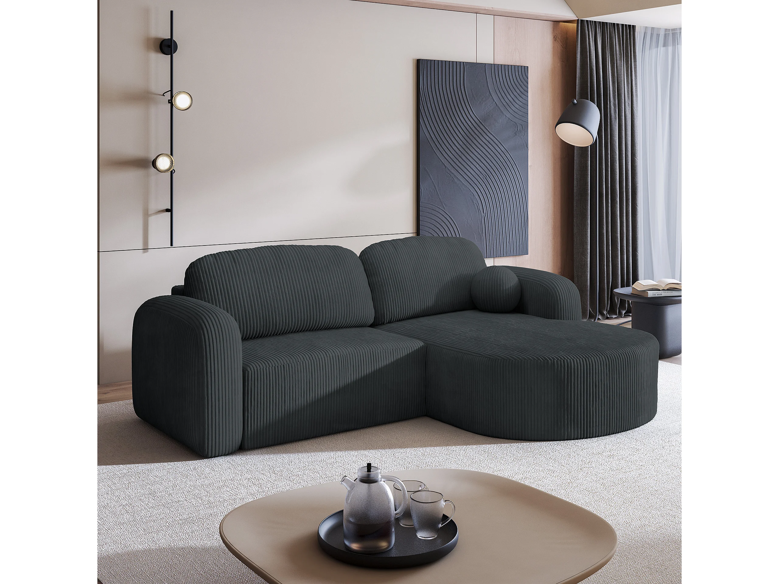 Canapé d'angle AMILIA Gris anthracite en velours côtelé avec fonction de couchage