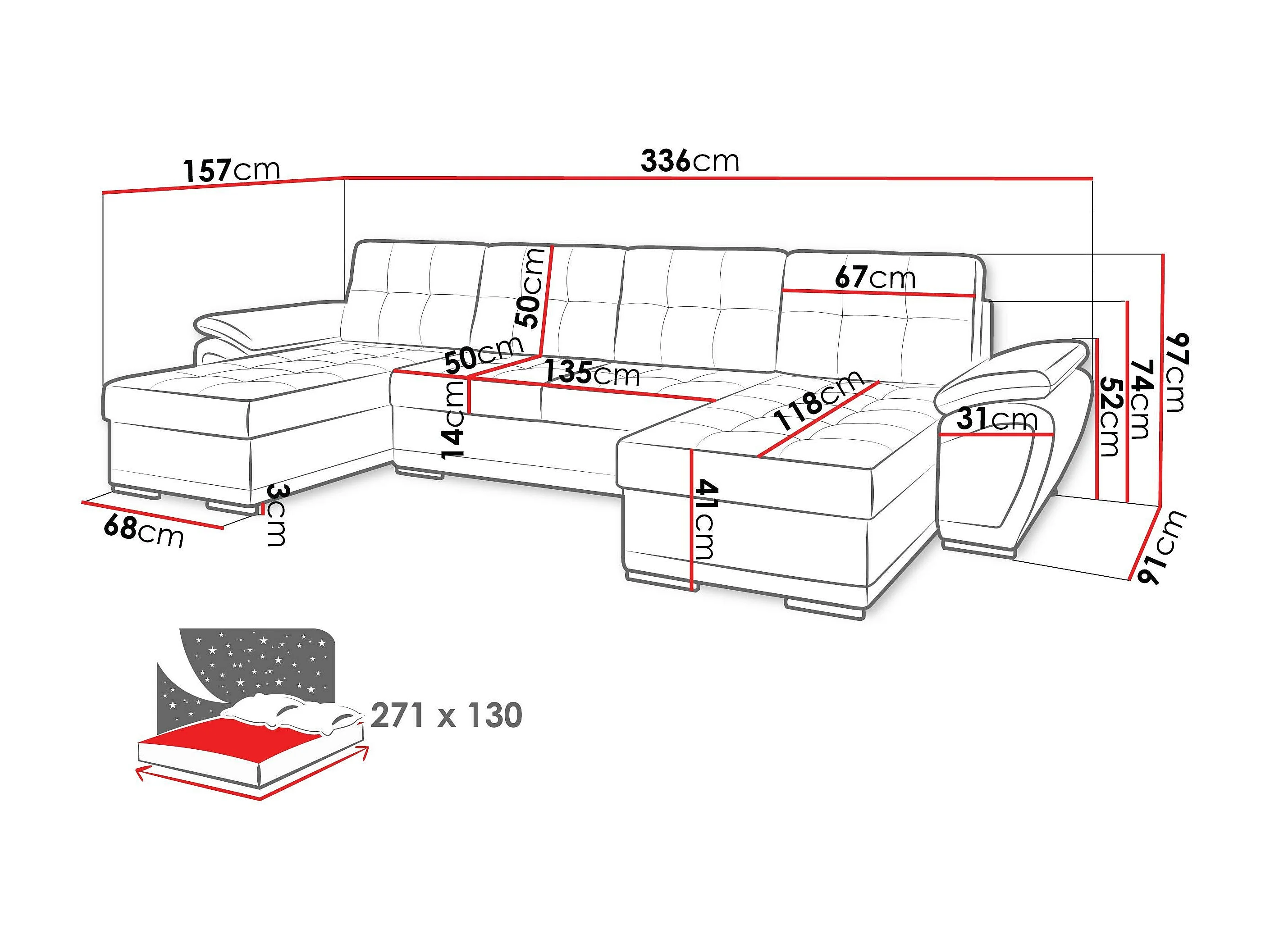 Canapé d'angle Arvada 115, Gris, Fonction de couchage, Boîte de literie, 336x157x97cm