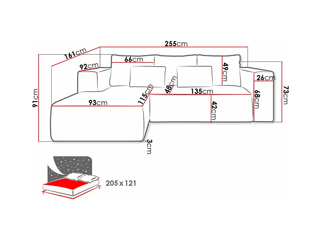 Canapé d'angle Arvada 116, Gris, Fonction de couchage, Boîte de literie, 255x161x91cm